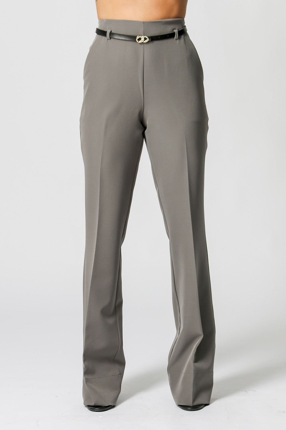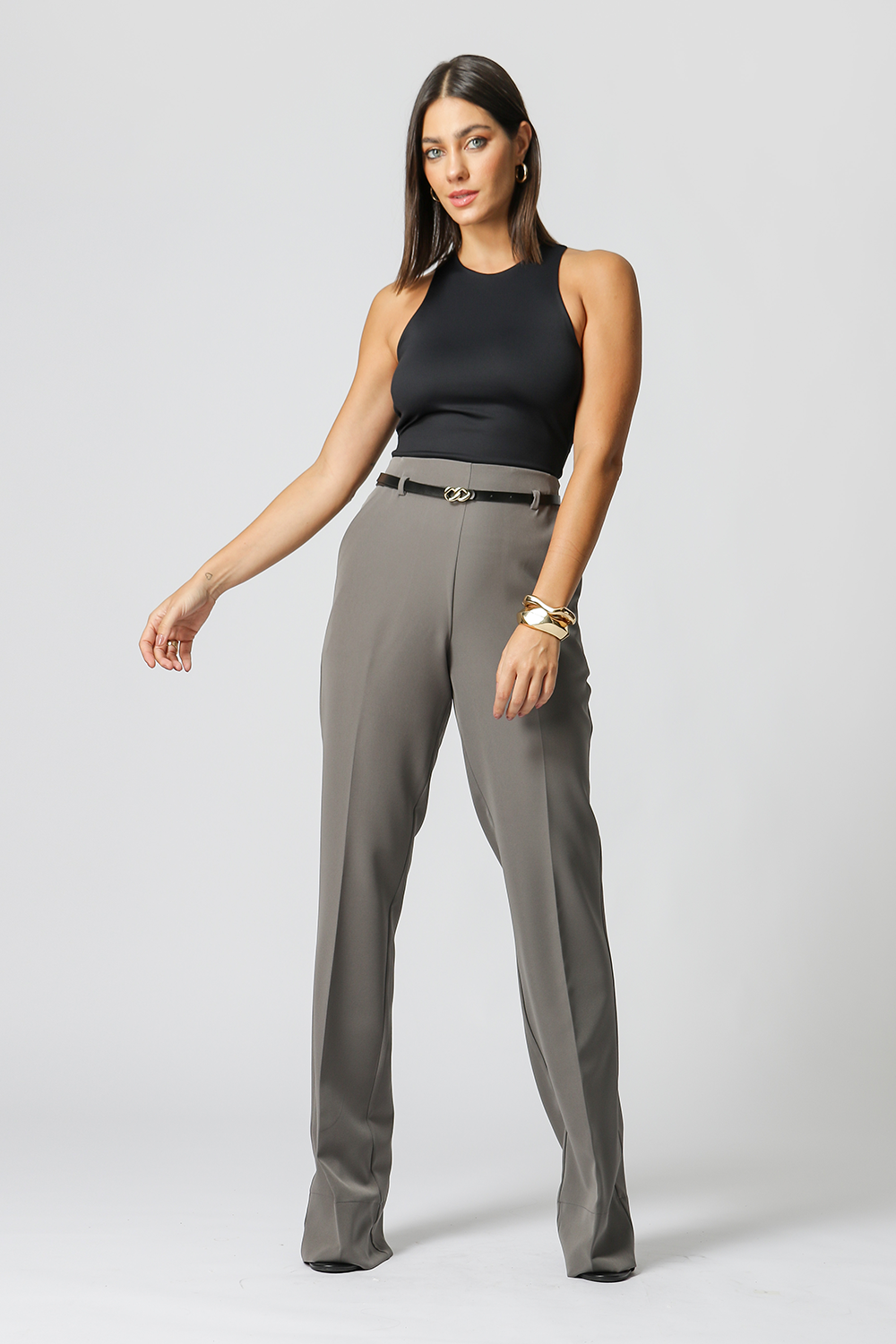 Pantalón recto de sastre con cinturón fino de piel y hebilla dorada. ¡El pantalón ideal para tu look de oficina!