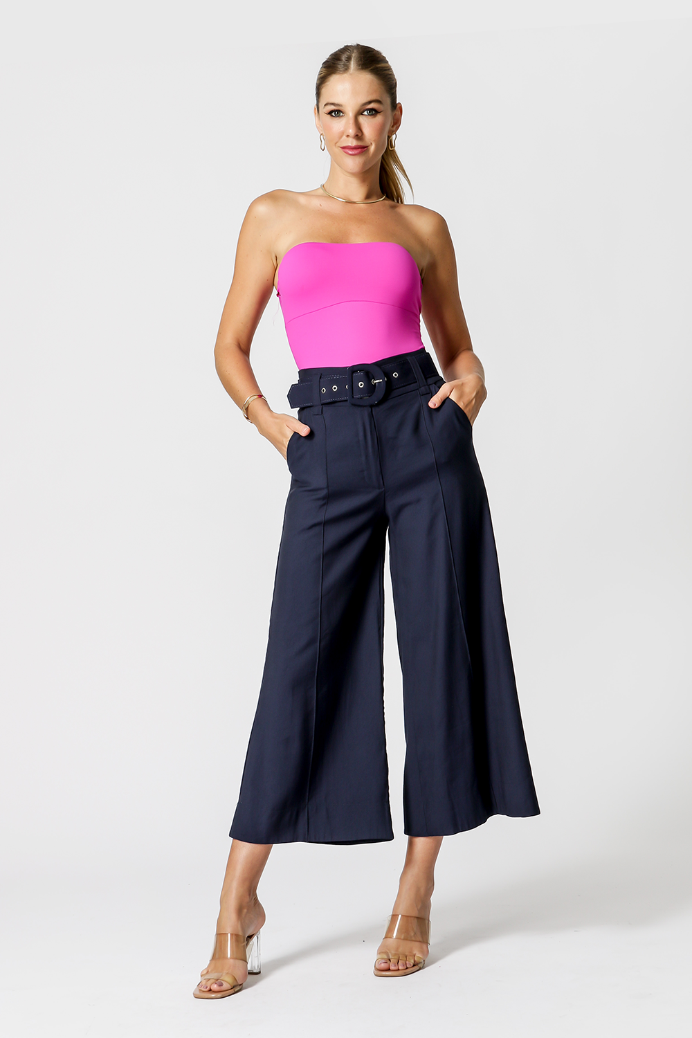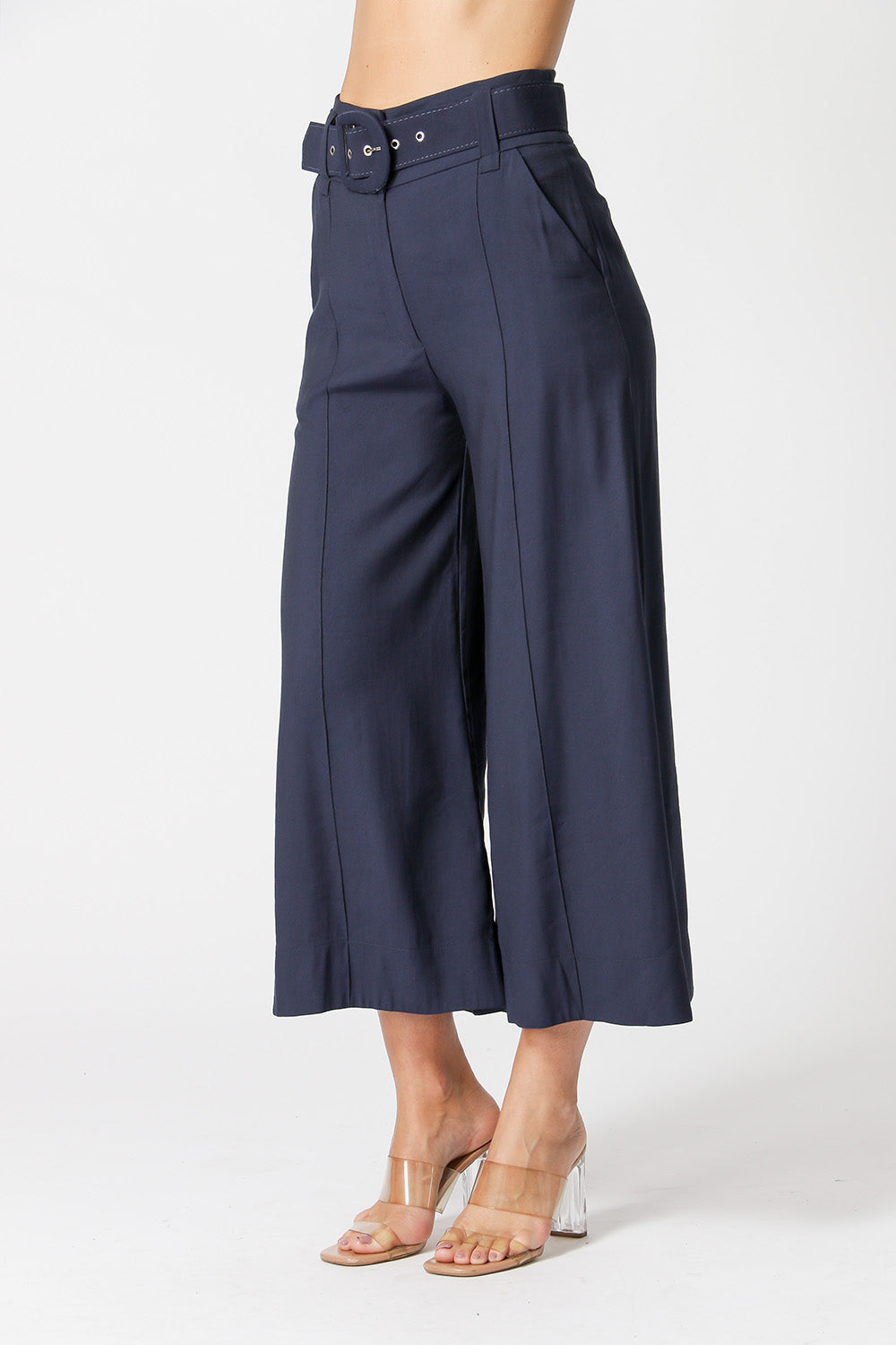 Pantalones con forma más ancha. Tiene detalle de canalé y cinturón forrado. Una pieza elegante para que apuestes sin miedo.