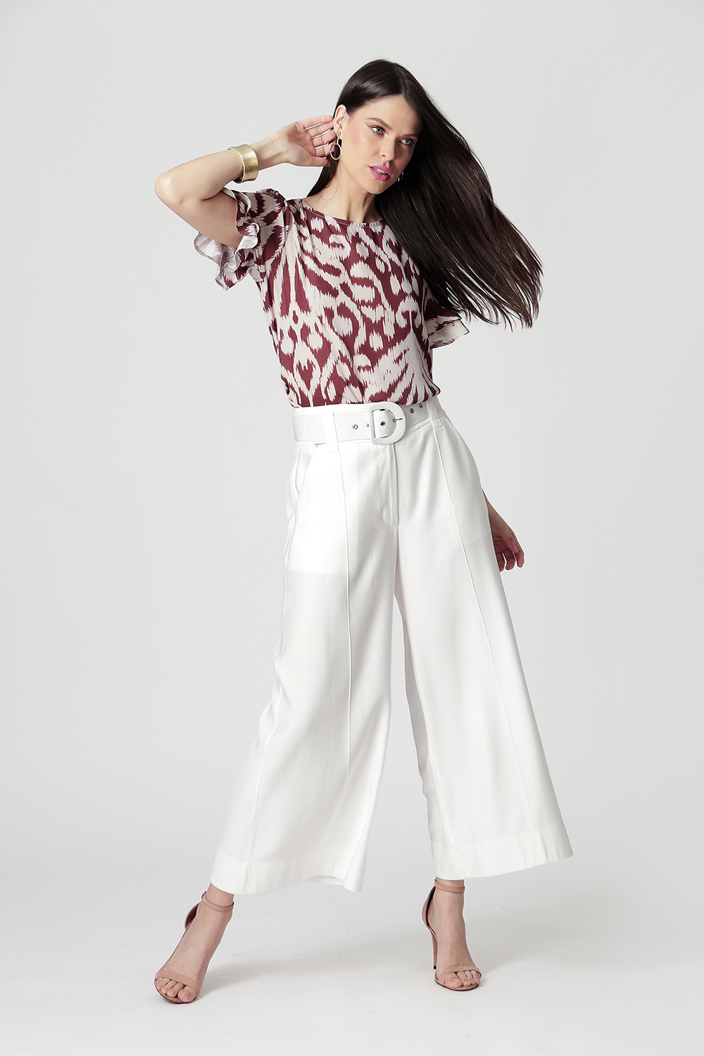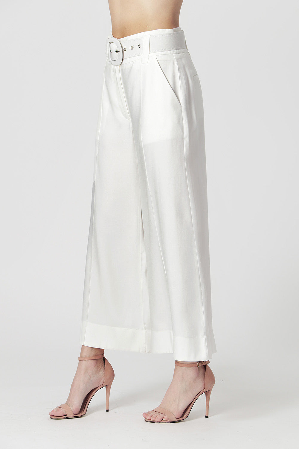 Pantalones con forma más ancha. Tiene detalle de canalé y cinturón forrado. Una pieza elegante para que apuestes sin miedo.