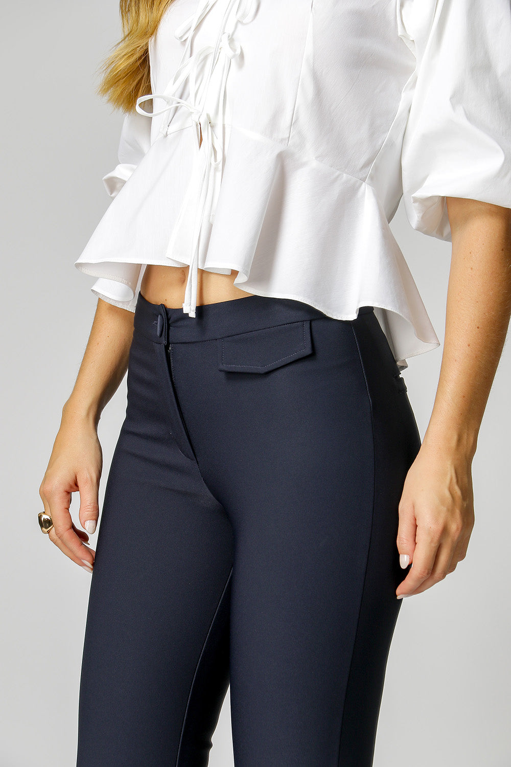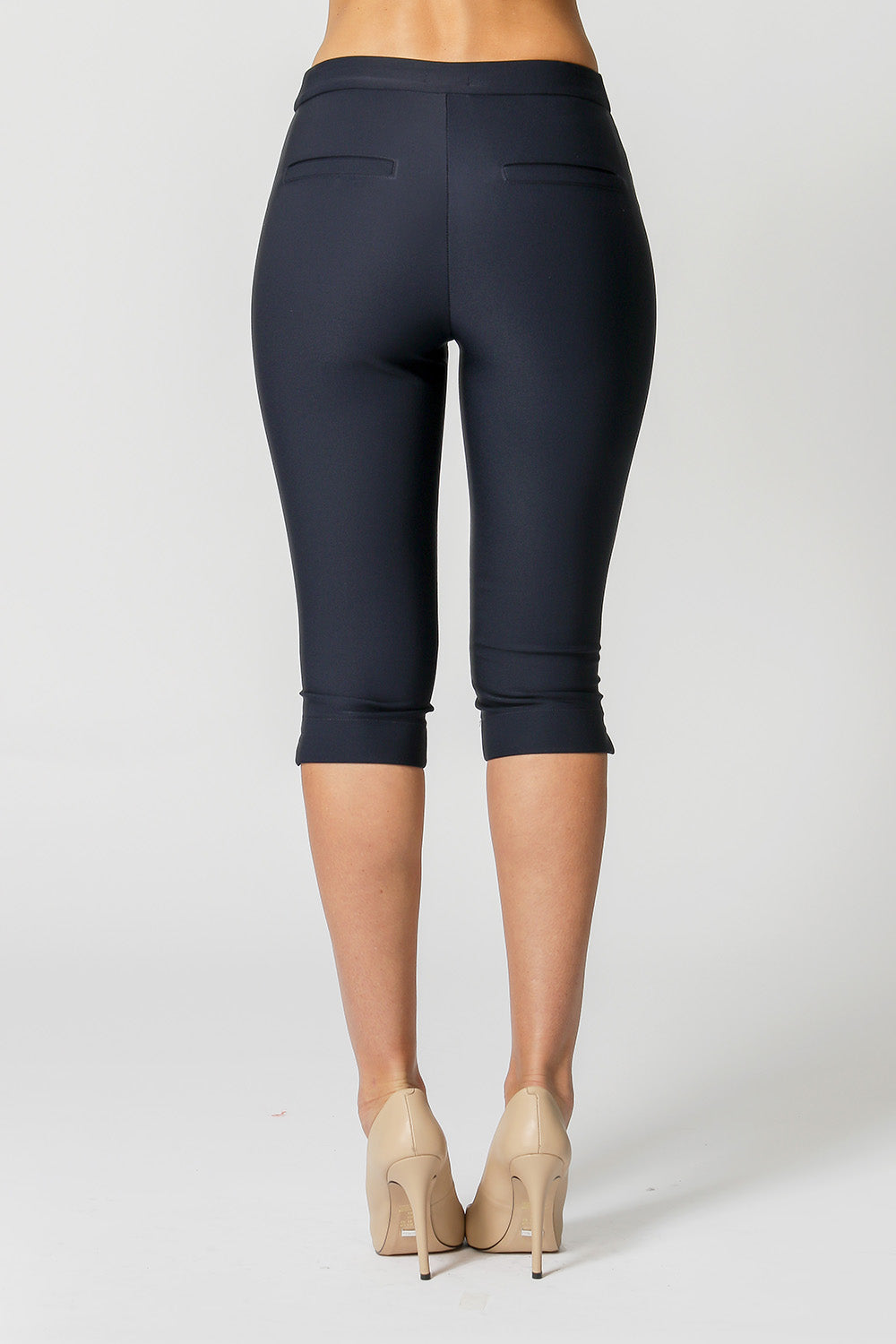 Pantalón capri con solapa. Modelo confeccionado en tejido de sastrería de algodón. Modelo con una buena propuesta para componer looks casuales.