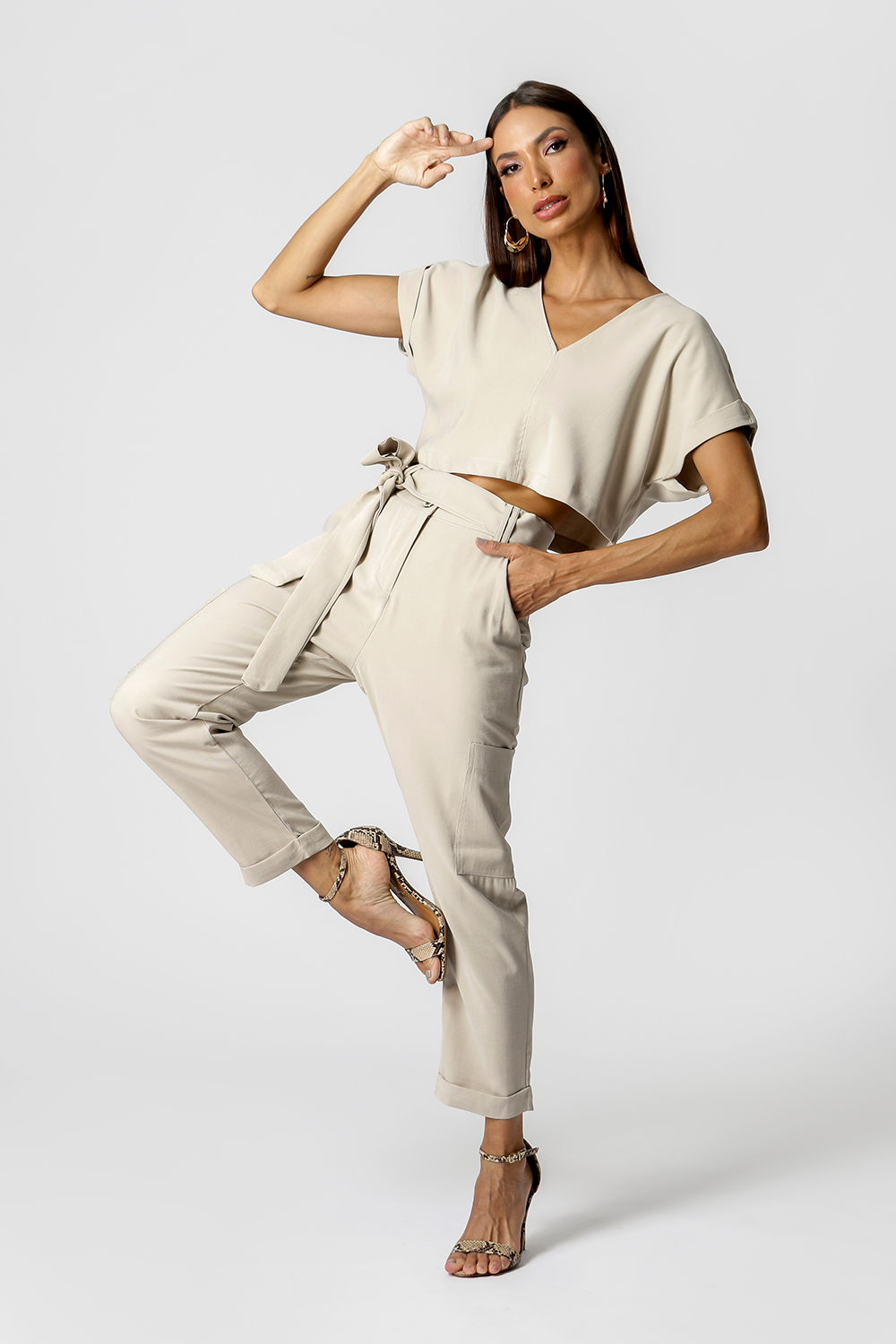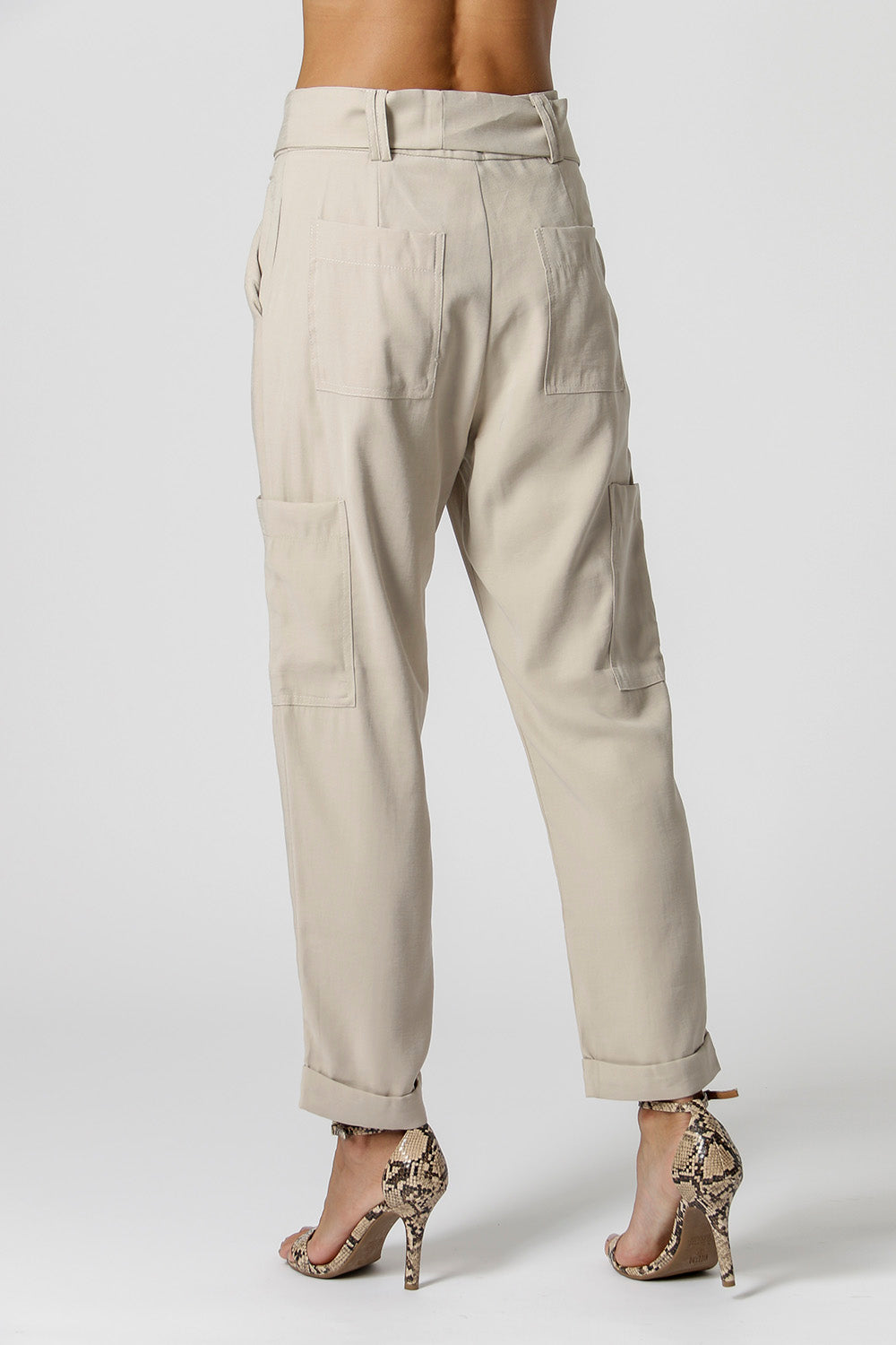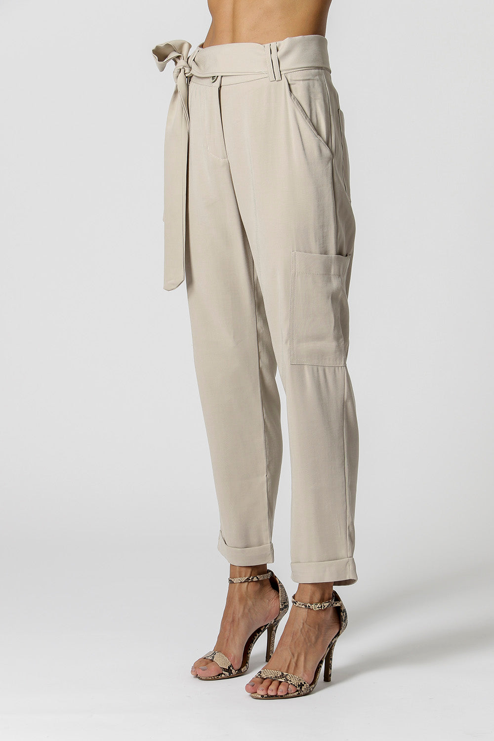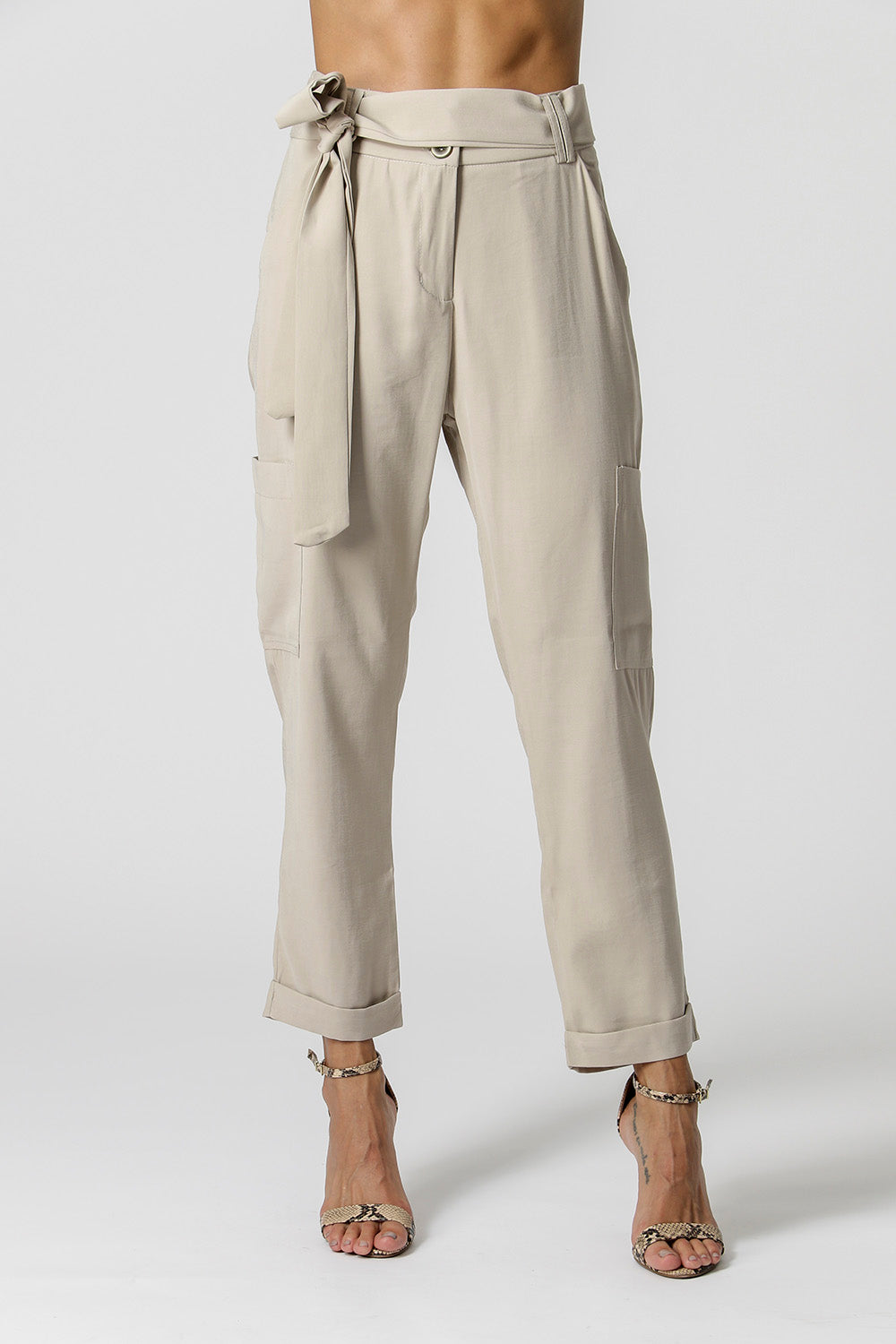 Pantalón estilo zanahoria con bolsillos cargo y cinturón para atar en la cintura. Una pieza de tendencia que no puede faltar en tu armario.