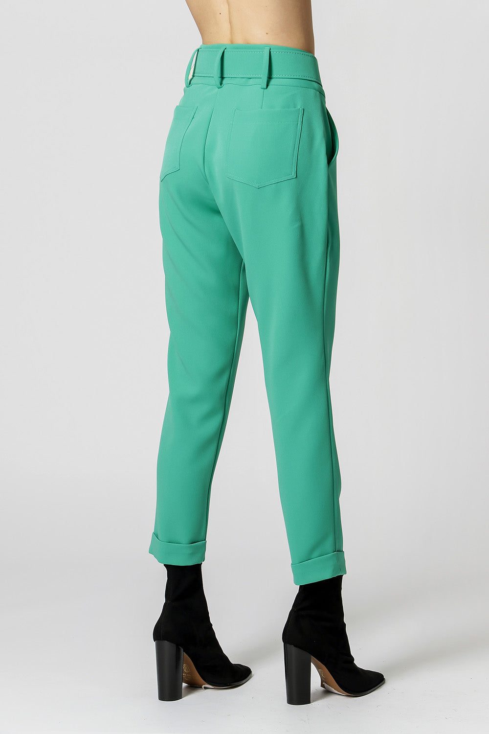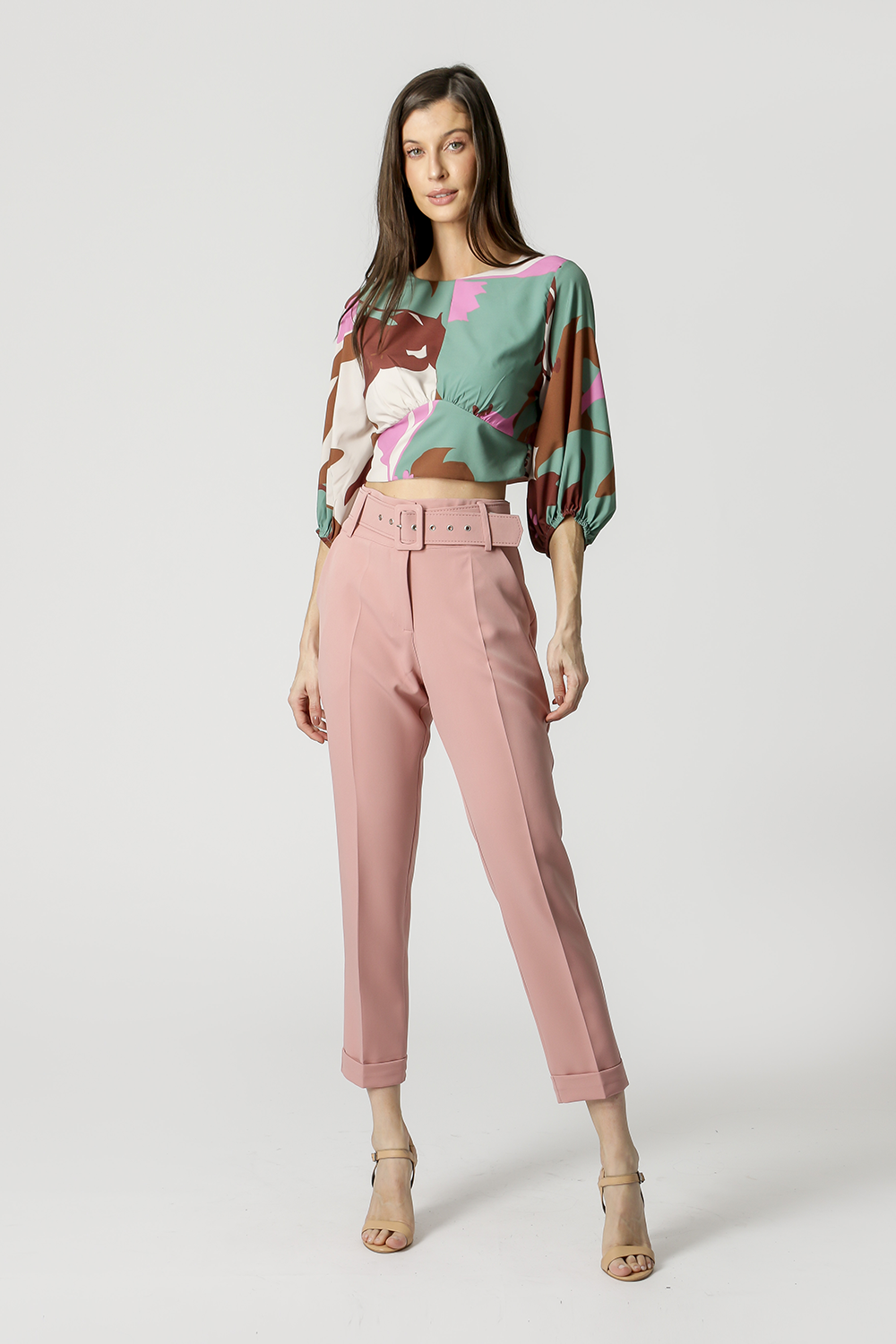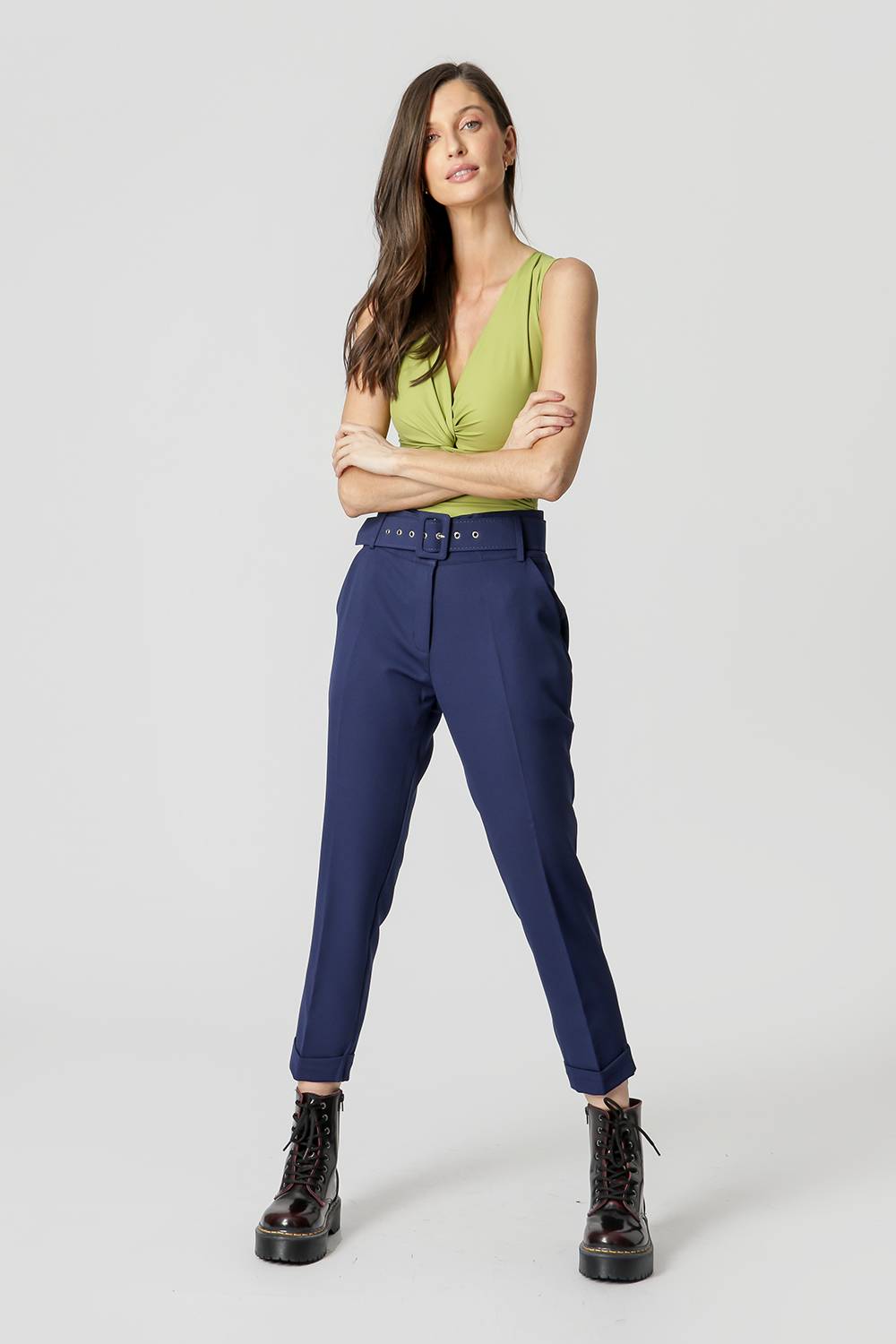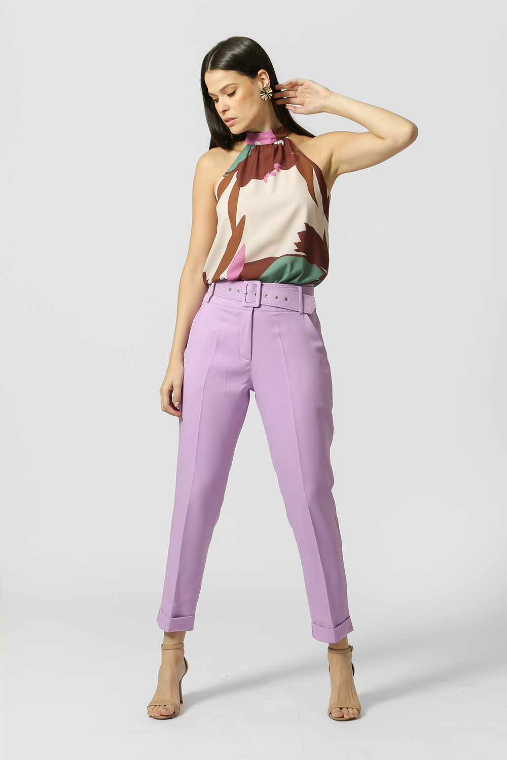 Calça feita em alfaiataria, com um shape levemente carrot, com um detalhe de barra italiana acompanha um lindo cinto forrado do próprio tecido, uma peça super versátil para diversos looks.