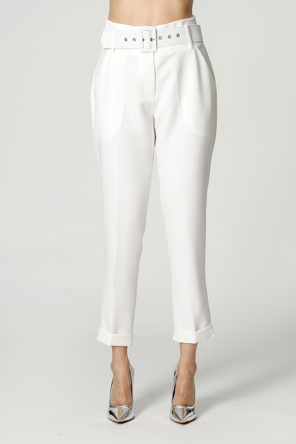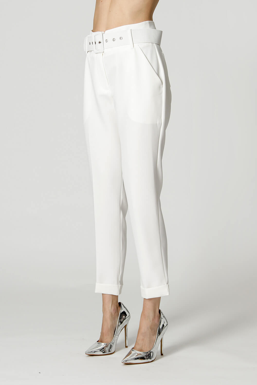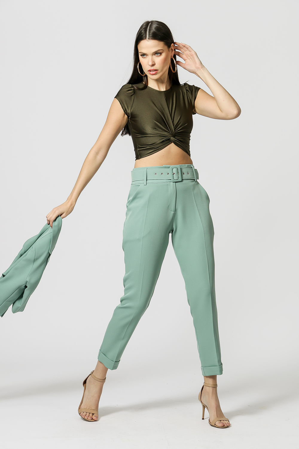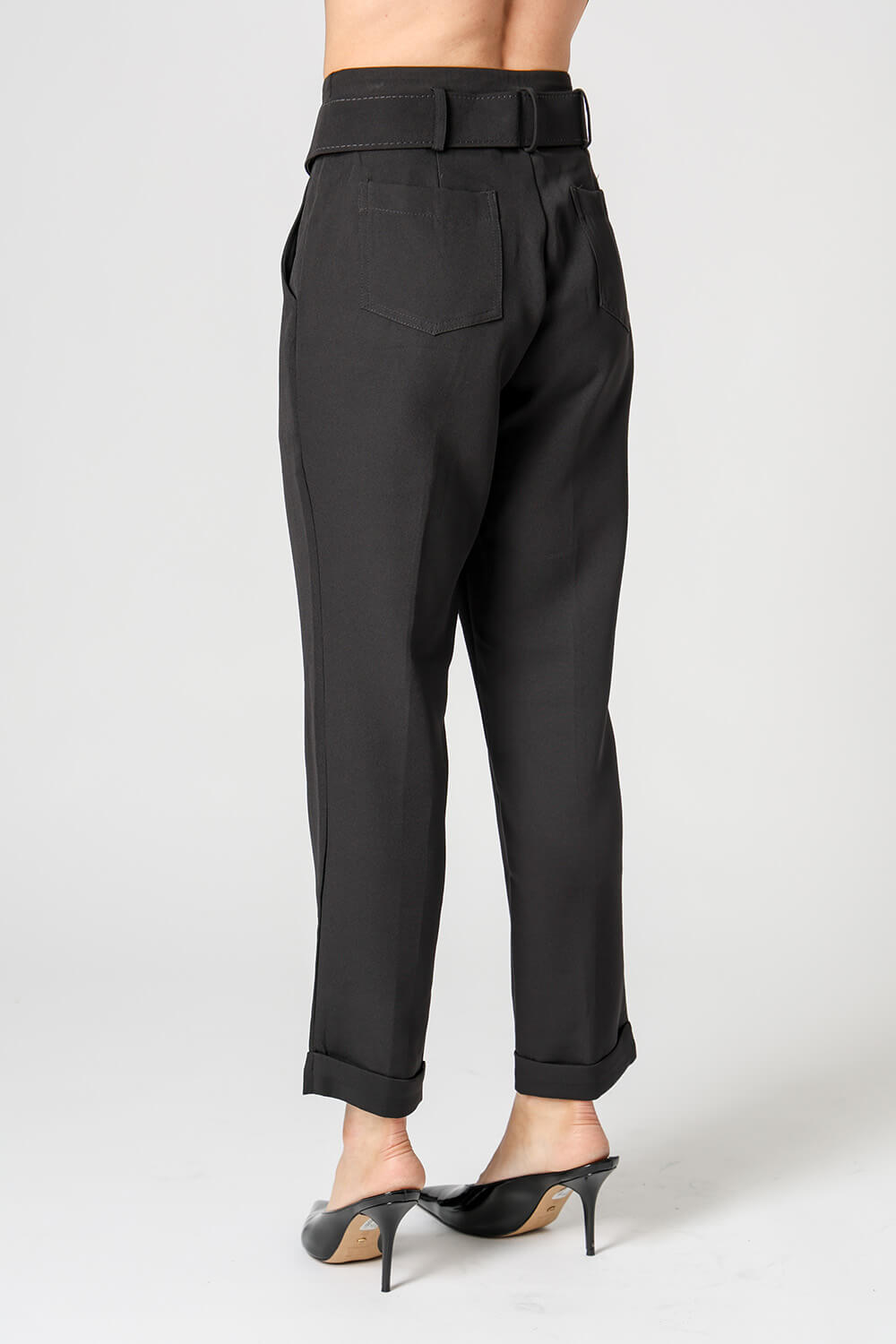 Calça feita em alfaiataria, com um shape levemente carrot, com um detalhe de barra italiana acompanha um lindo cinto forrado do próprio tecido, uma peça super versátil para diversos looks.