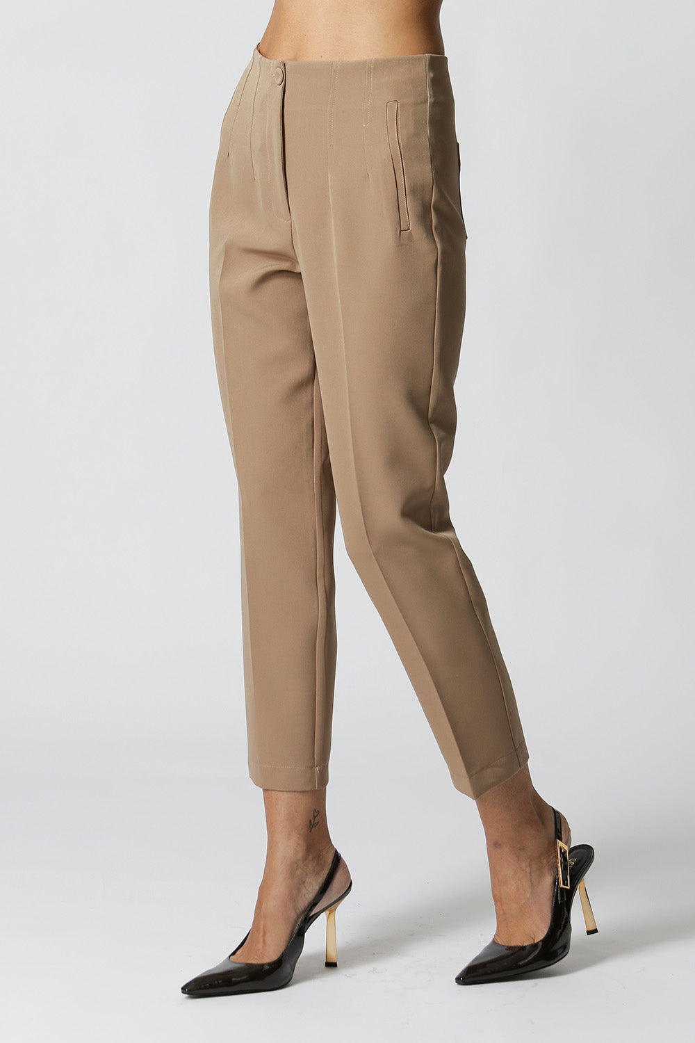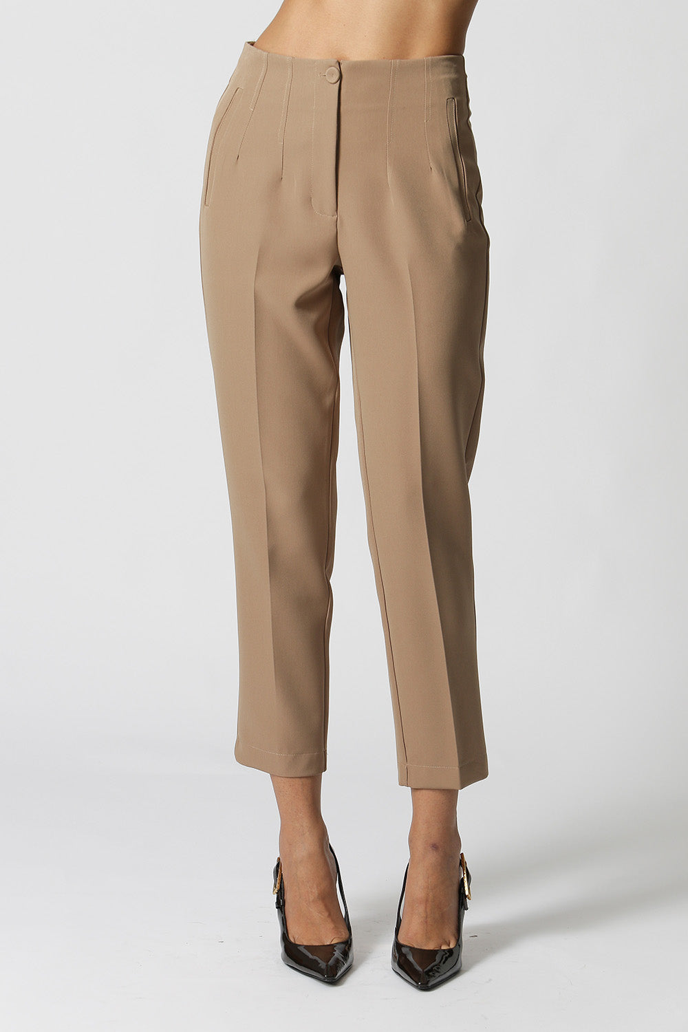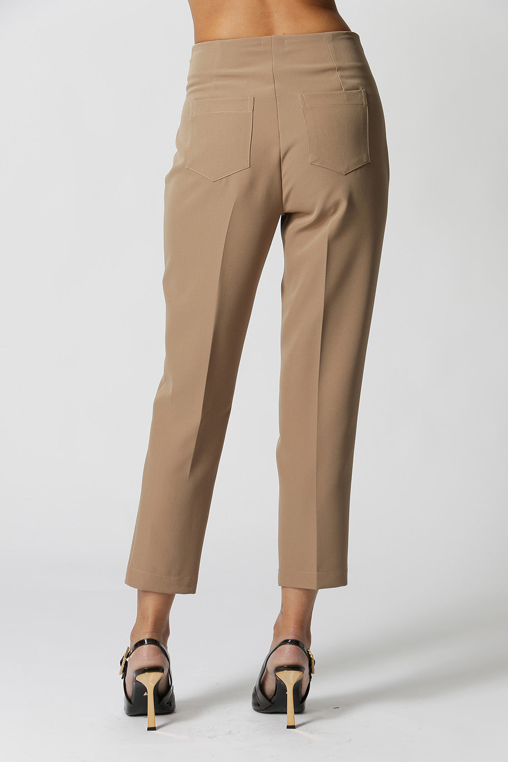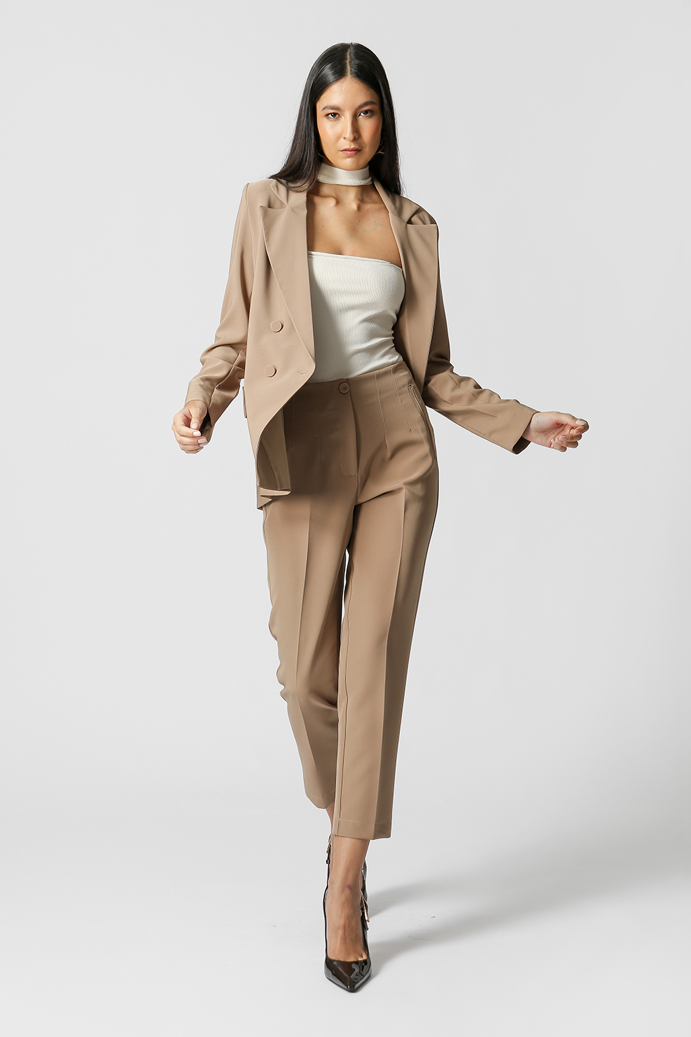 Pantalón de vestir color zanahoria con detalles de pinzas en la parte delantera. Fabricado con tejido a medida. Una pieza perfecta para un ambiente moderno, versátil y un imprescindible en tu armario.