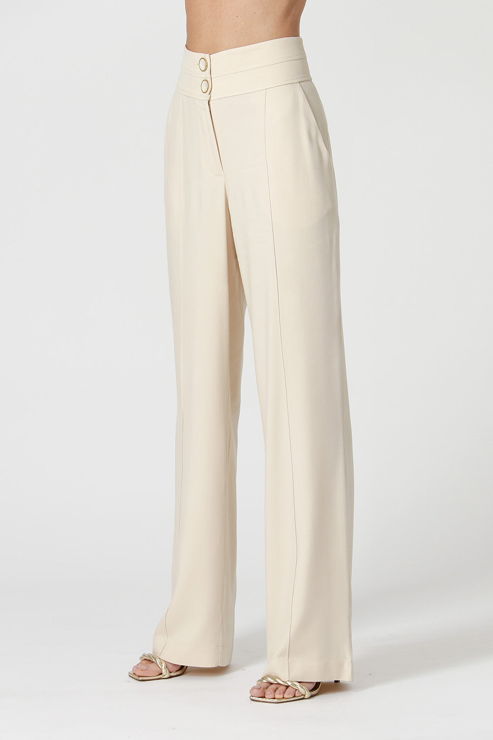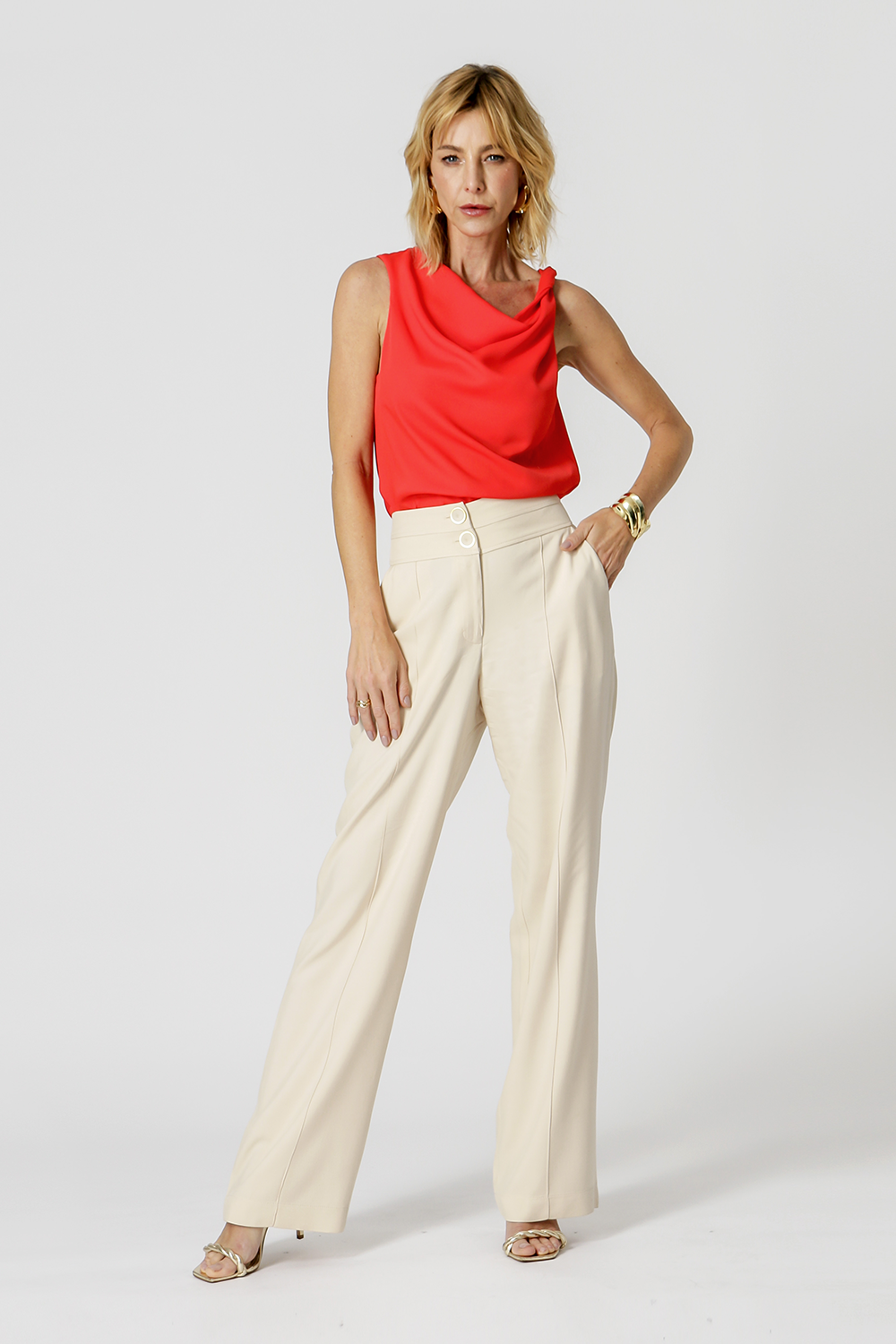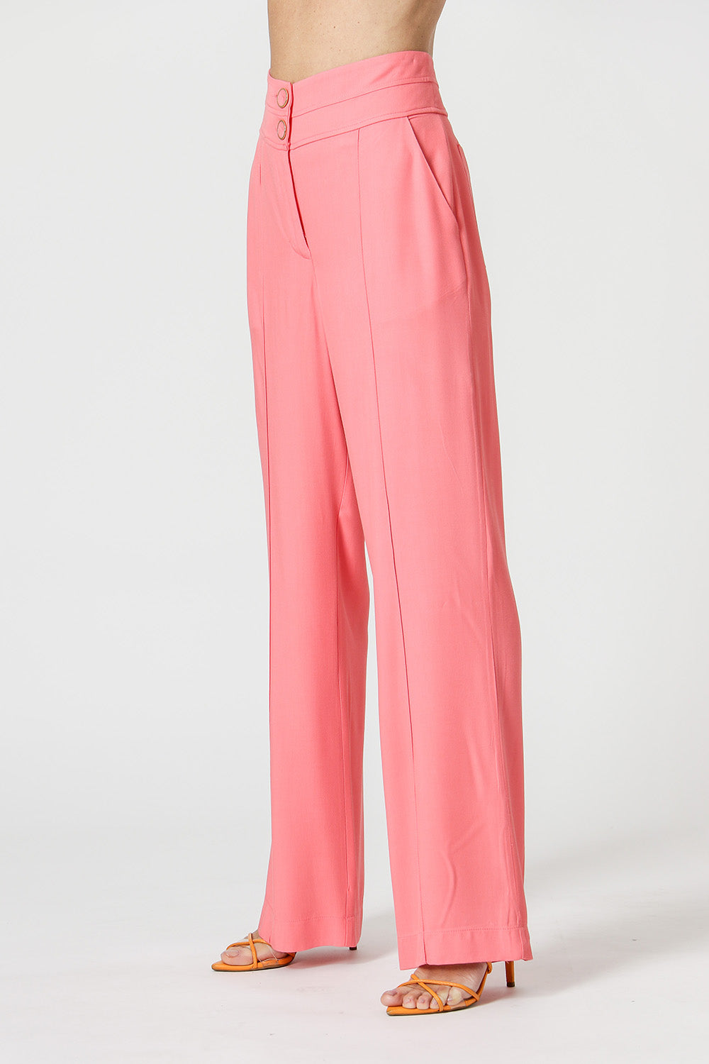 Calça com cós duplo e bolsos laterais. Uma peças confeccionada em tecido viscose texturizado. Peça com caimento soltinho e modelagem reta trazendo uma elegancia e conforto para mood mais casual.