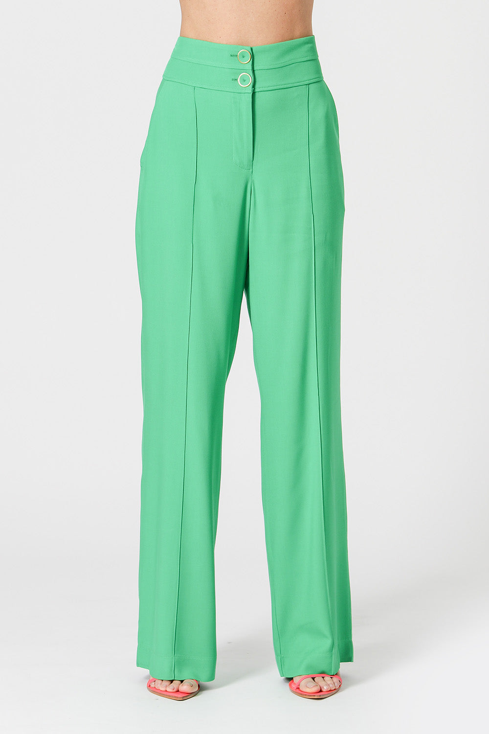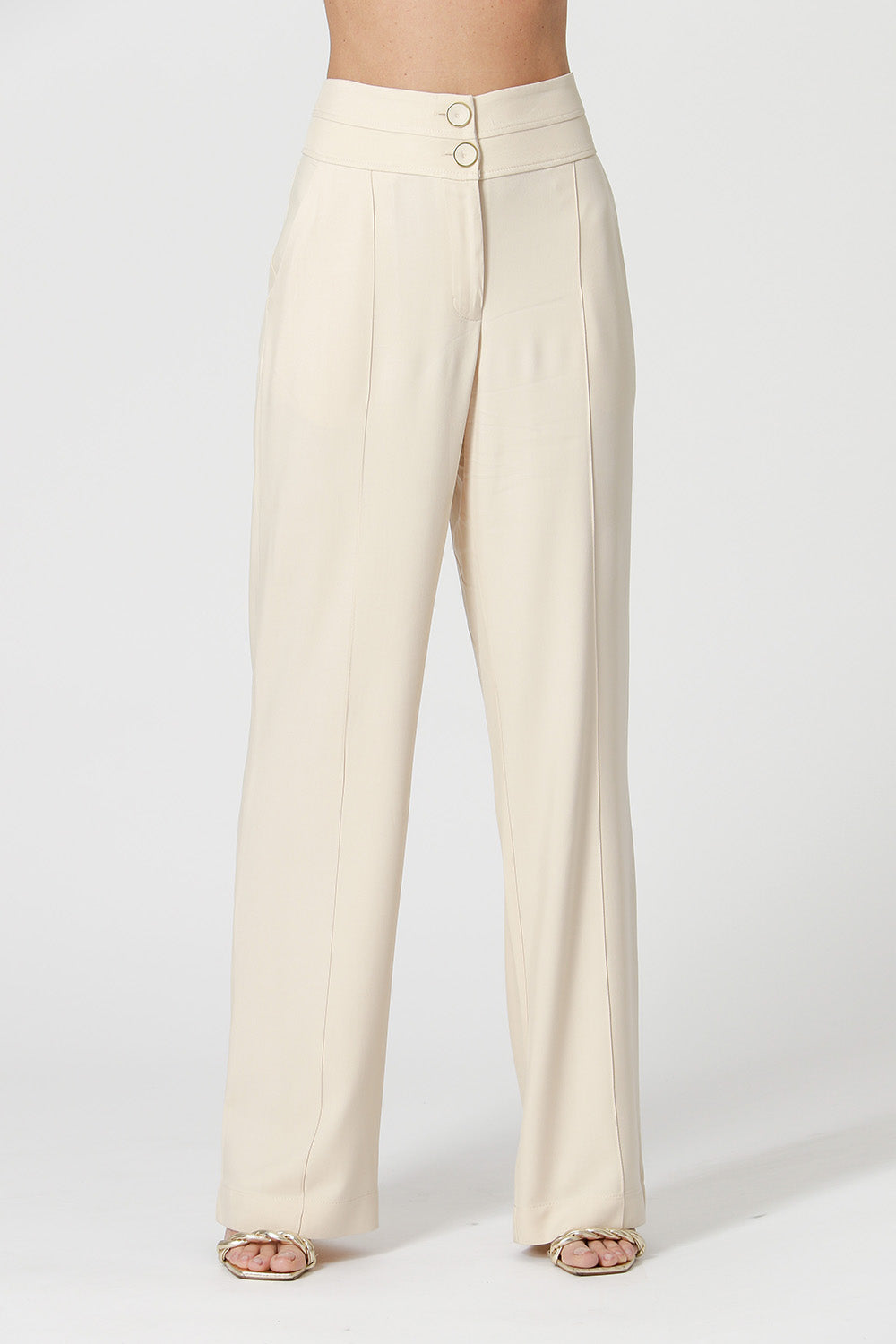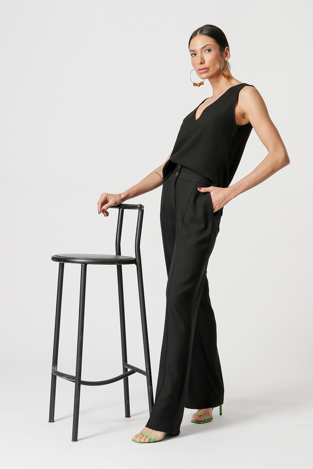 Calça com cós duplo e bolsos laterais. Uma peças confeccionada em tecido viscose texturizado. Peça com caimento soltinho e modelagem reta trazendo uma elegancia e conforto para mood mais casual.
