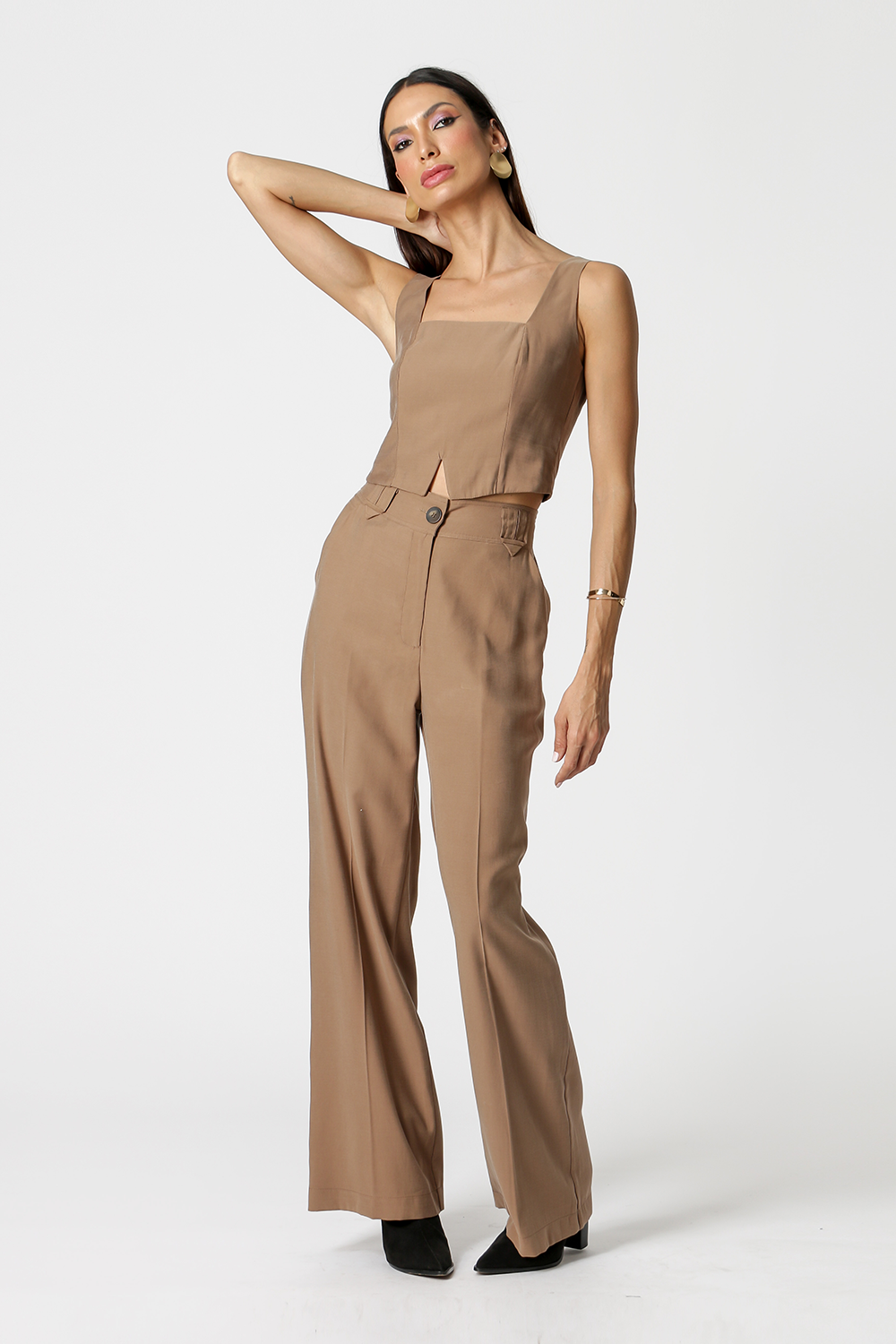 Pantalón con detalle de cinturilla elástica. Fabricado en tejido Tencel. Una pieza ideal para crear looks de trabajo con estilo y darle vida a tu día a día.
