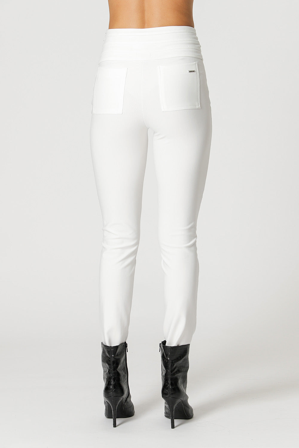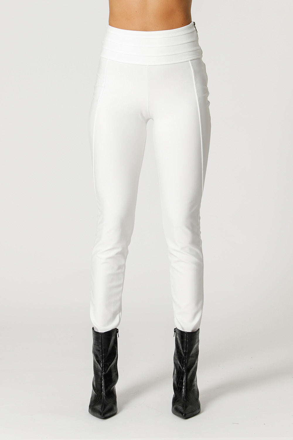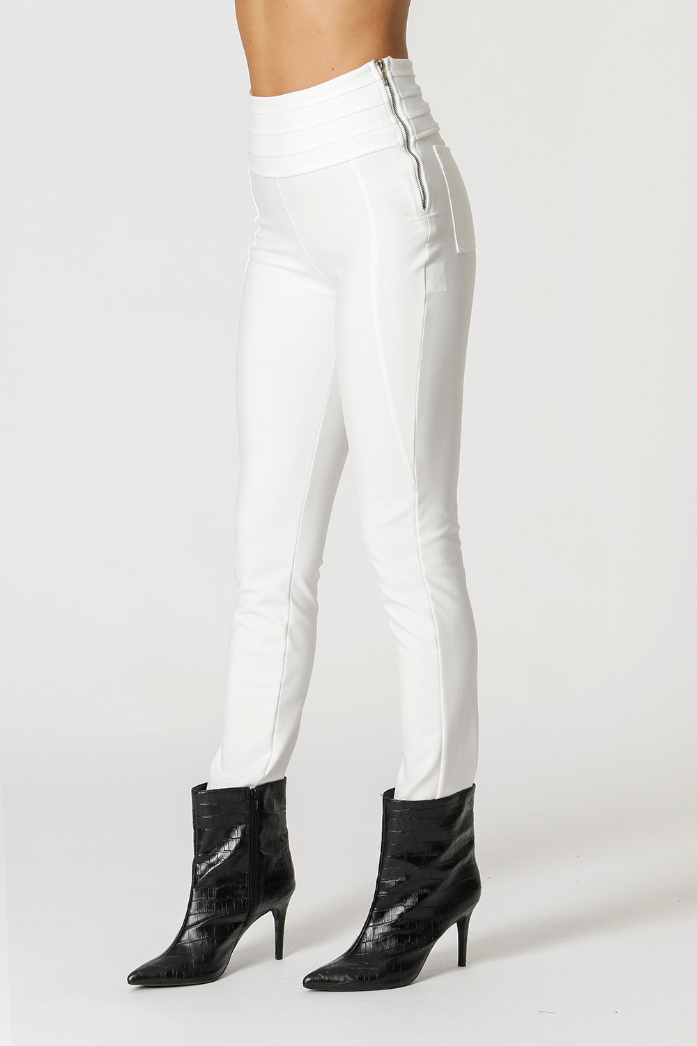 Pantalón de montar con cinturilla ancha cosida y aberturas laterales. Una pieza versátil para looks casuales o incluso para una salida nocturna.