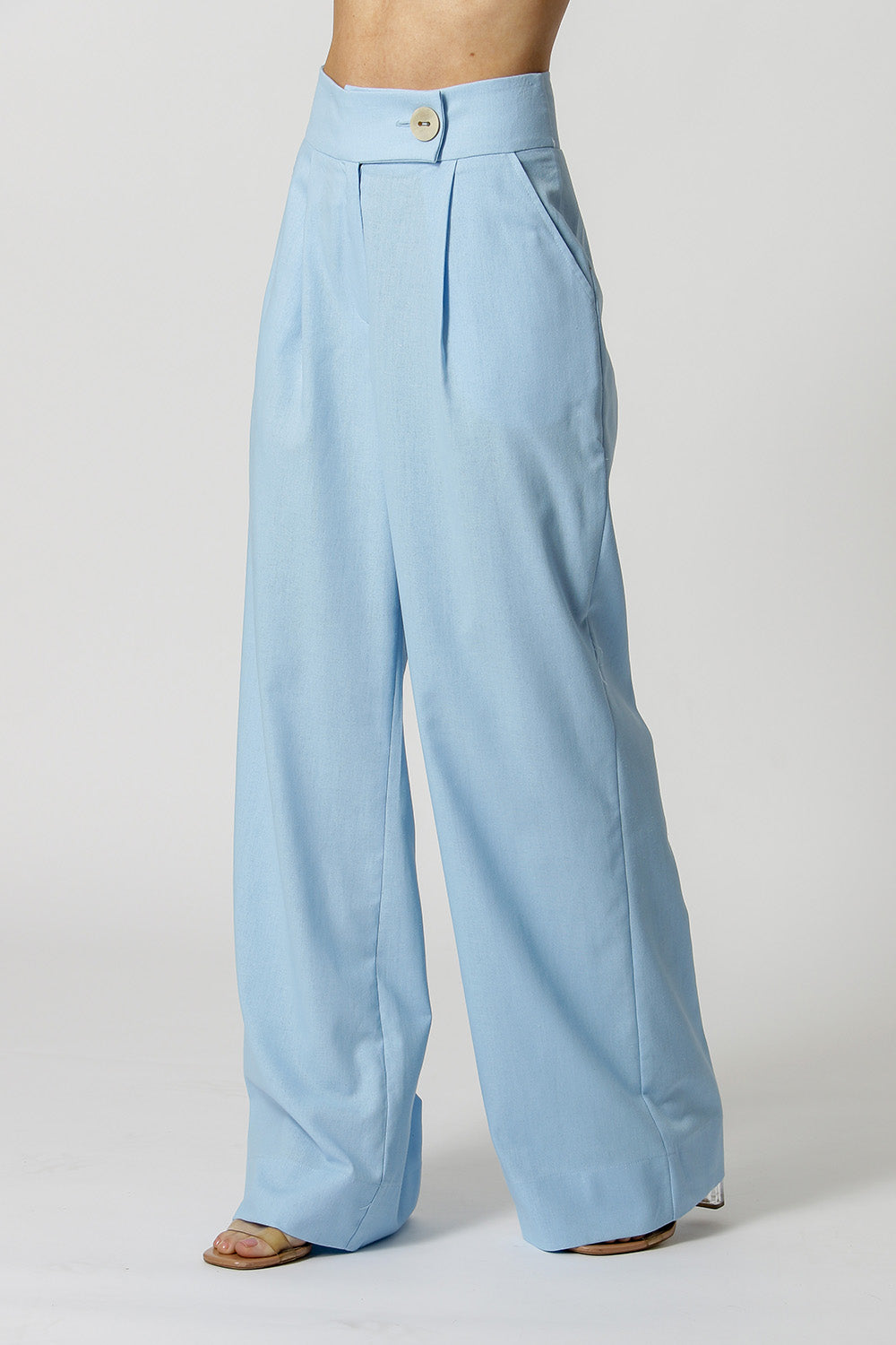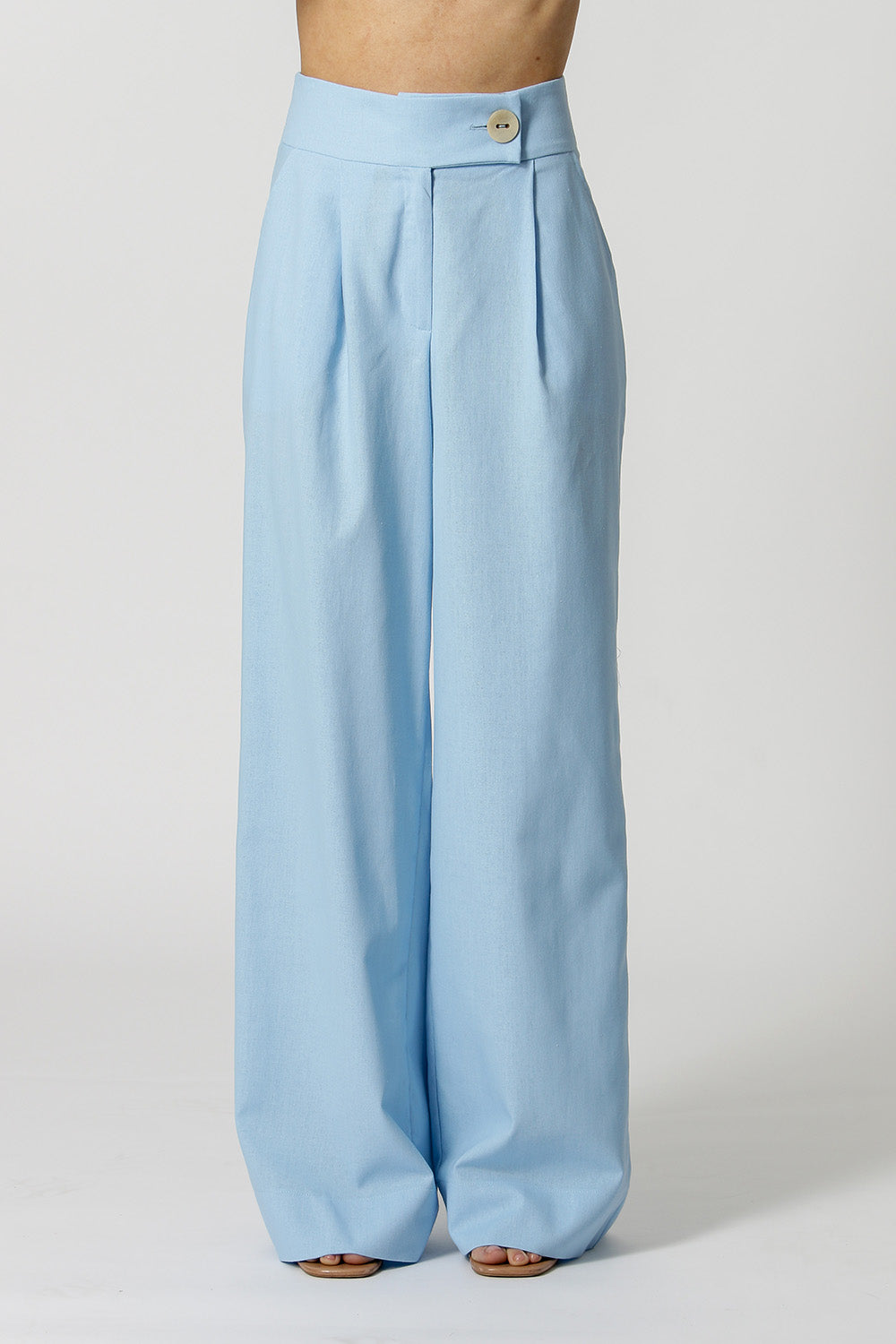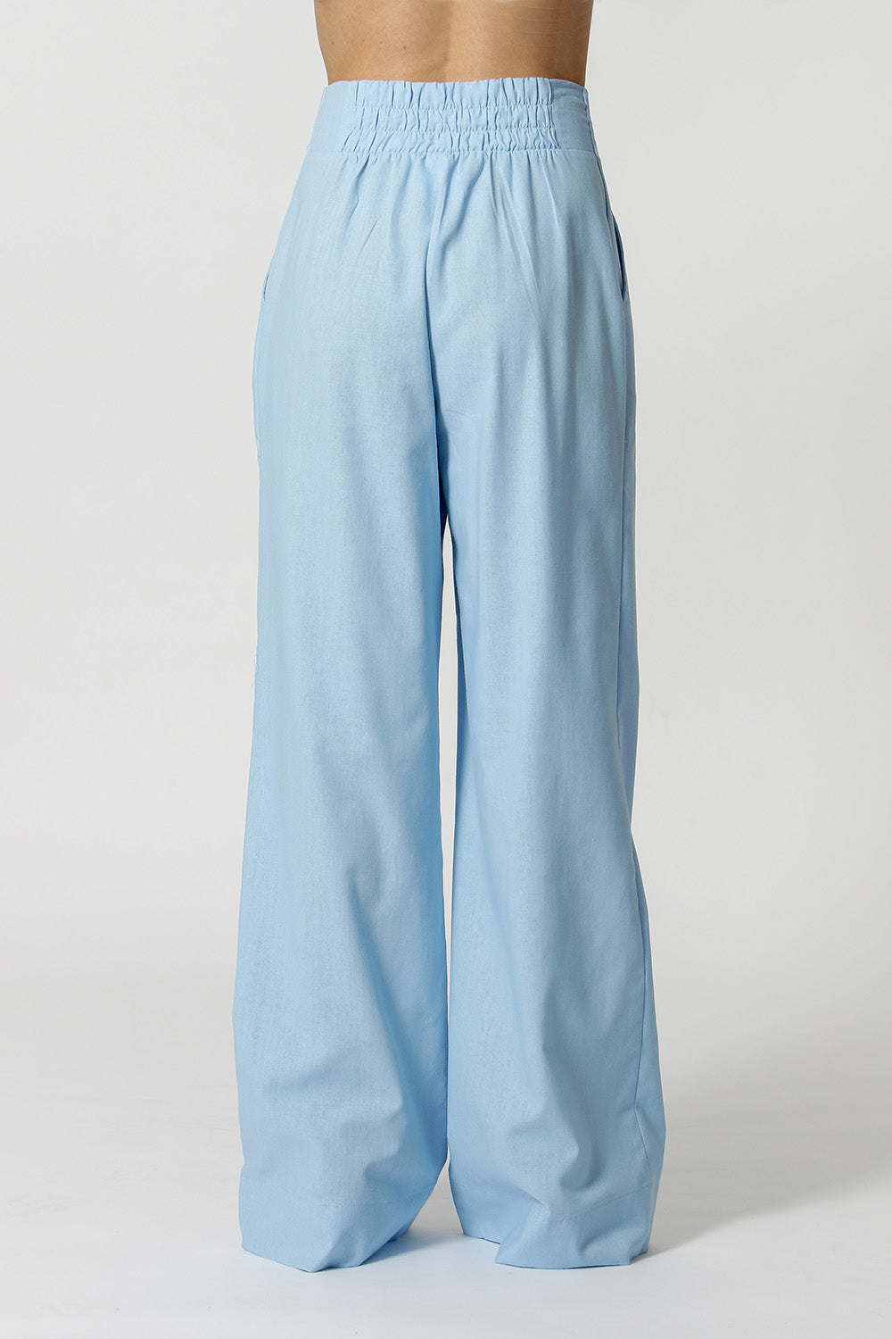 Pantalón con cinturilla elástica envolvente. Pieza confeccionada en tejido de lino y viscosa. Un modelo de forma suelta y elegante, ideal para crear diferentes looks casual.