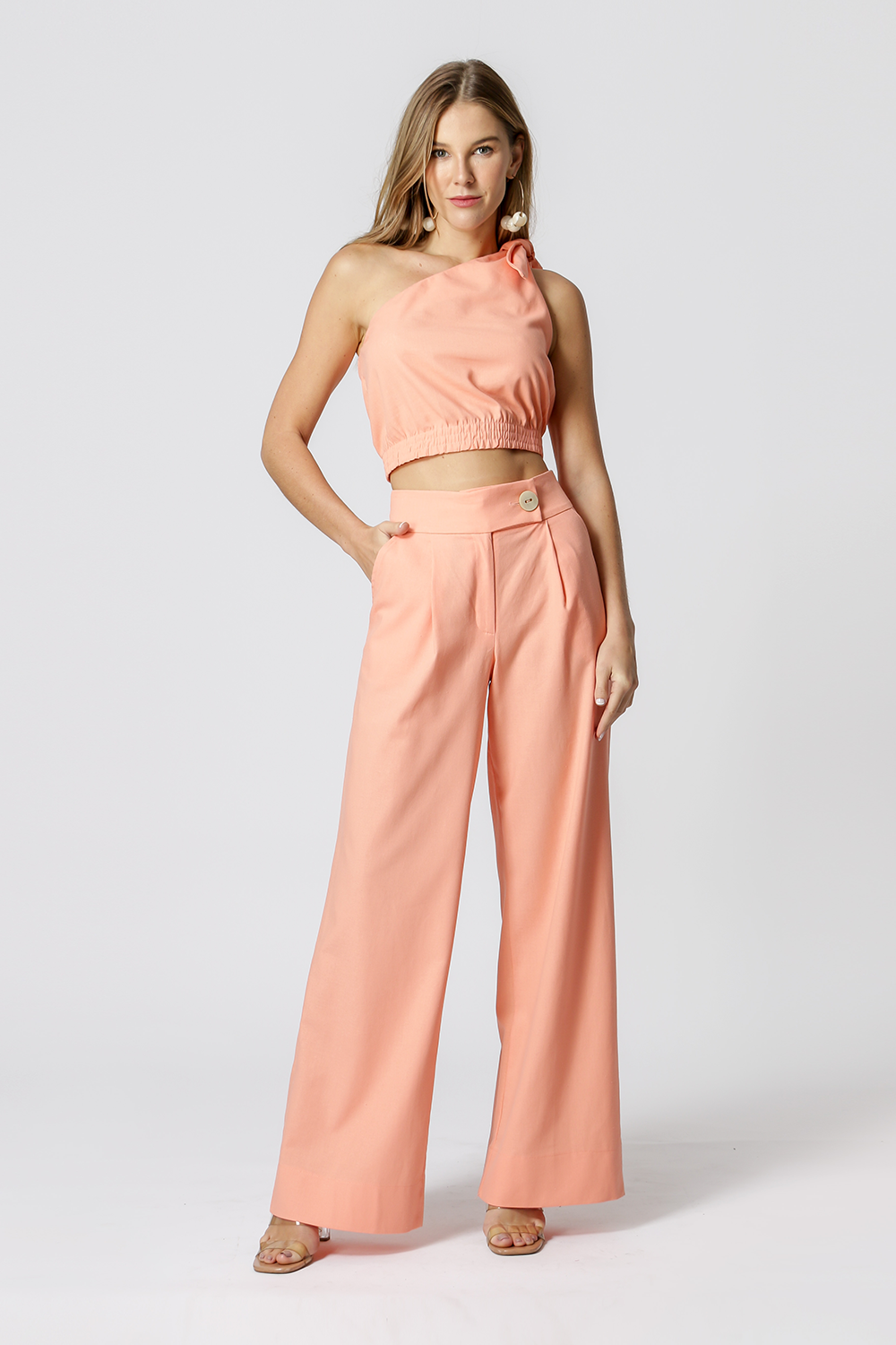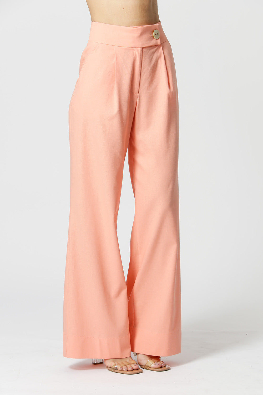 Pantalón con cinturilla elástica envolvente. Pieza confeccionada en tejido de lino y viscosa. Un modelo de forma suelta y elegante, ideal para crear diferentes looks casual.