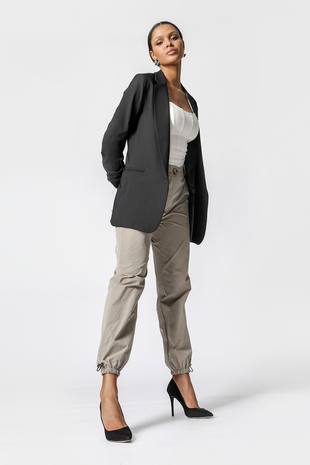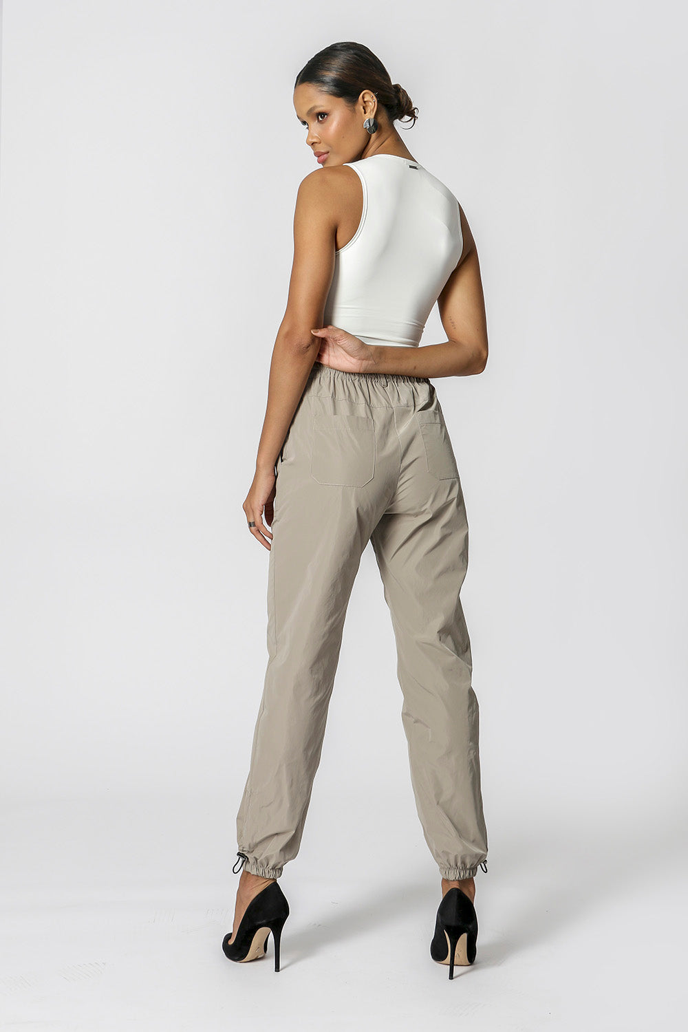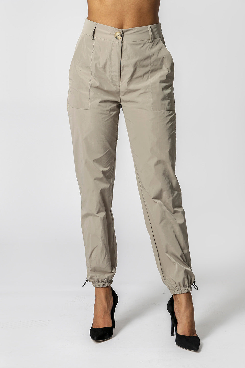 Pantalón con forma de jogger, confeccionado en tejido deportivo. Tiene un detalle de metal regular en el dobladillo. ¡Son los básicos únicos que estabas buscando!