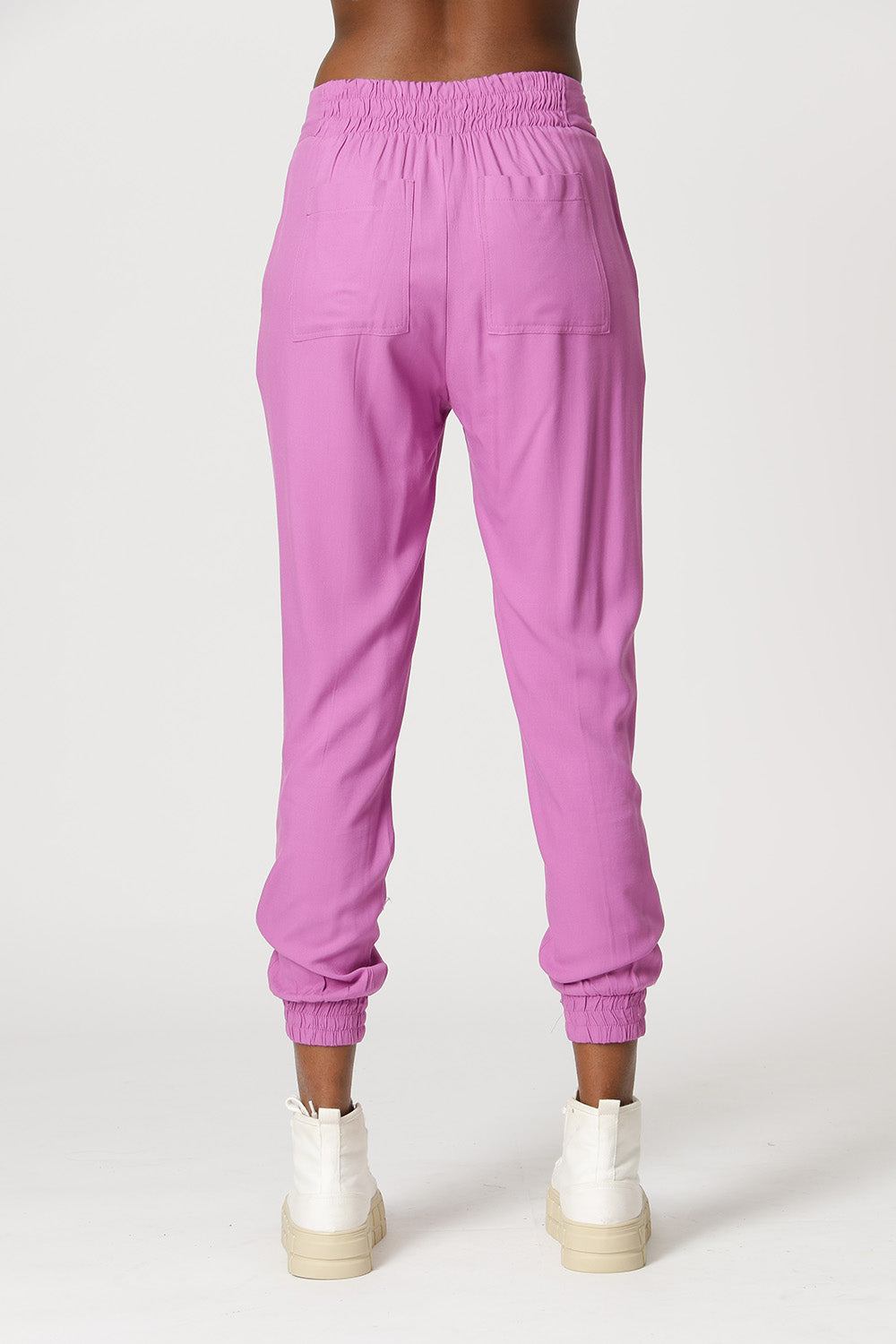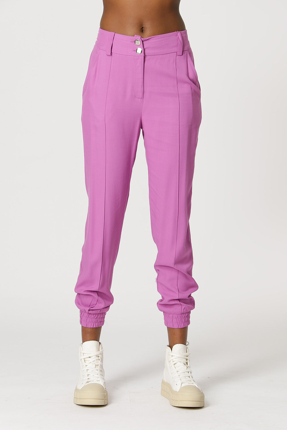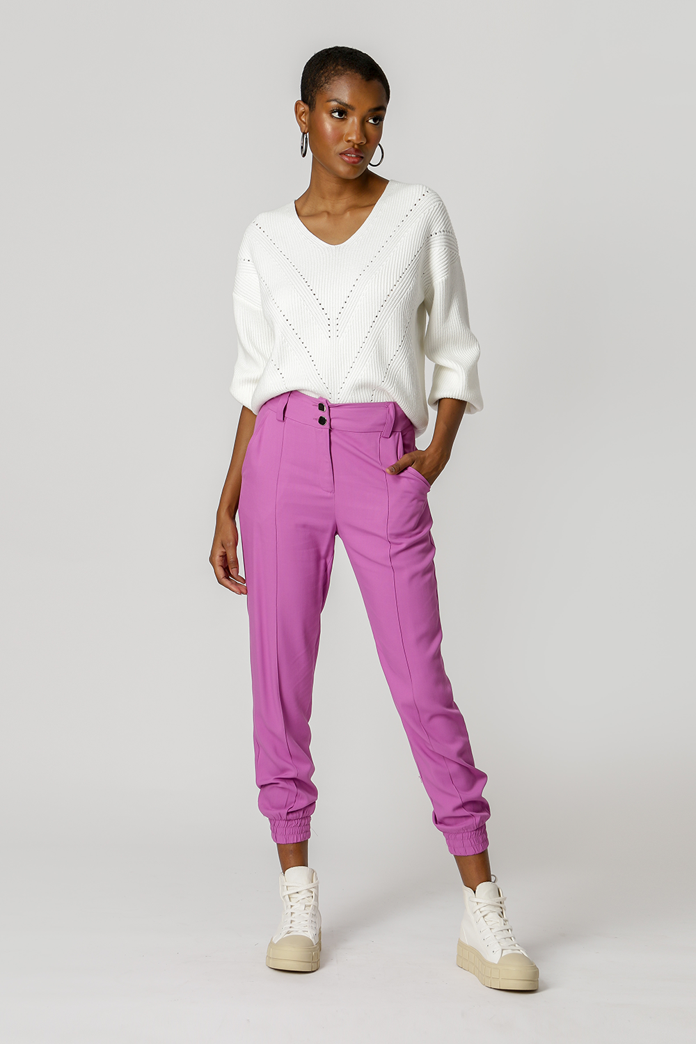 Pantalón jogger con cinturilla elástica en la espalda. Fabricado en viscosa. Pieza perfecta para trabajar en tu look de verano.