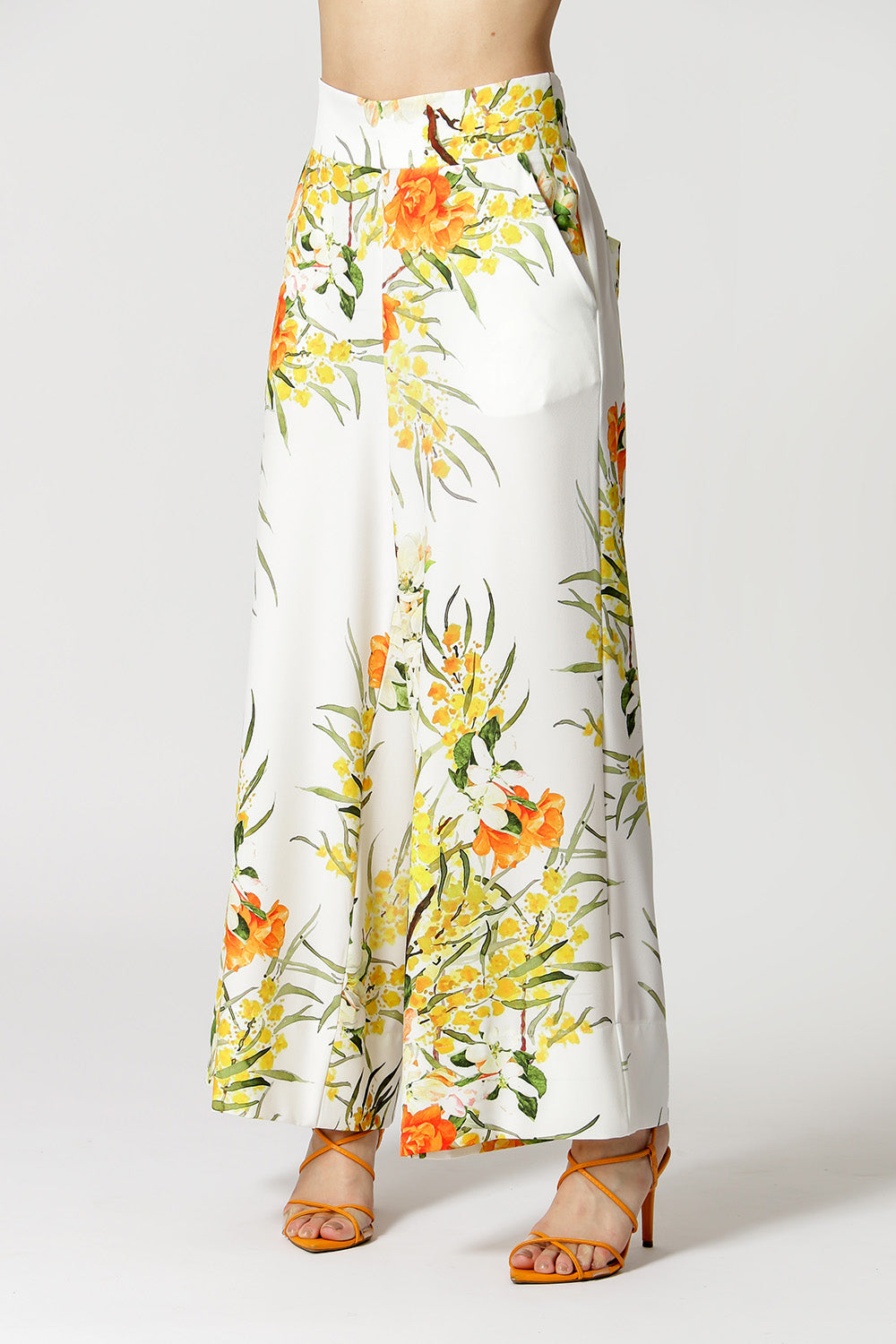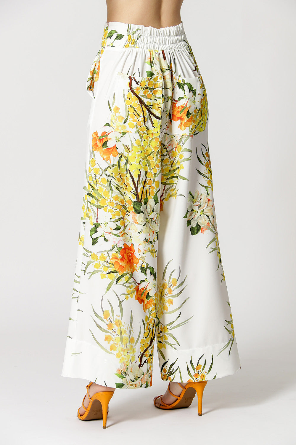 Pantalón pantacourt con bolsillos, cinturilla elástica incorporada en la espalda. Pieza confeccionada en tejido Crepe estampado. Un modelo holgado que aporta comodidad a tus looks y es un imprescindible en tu armario, perfecto para el día a día.