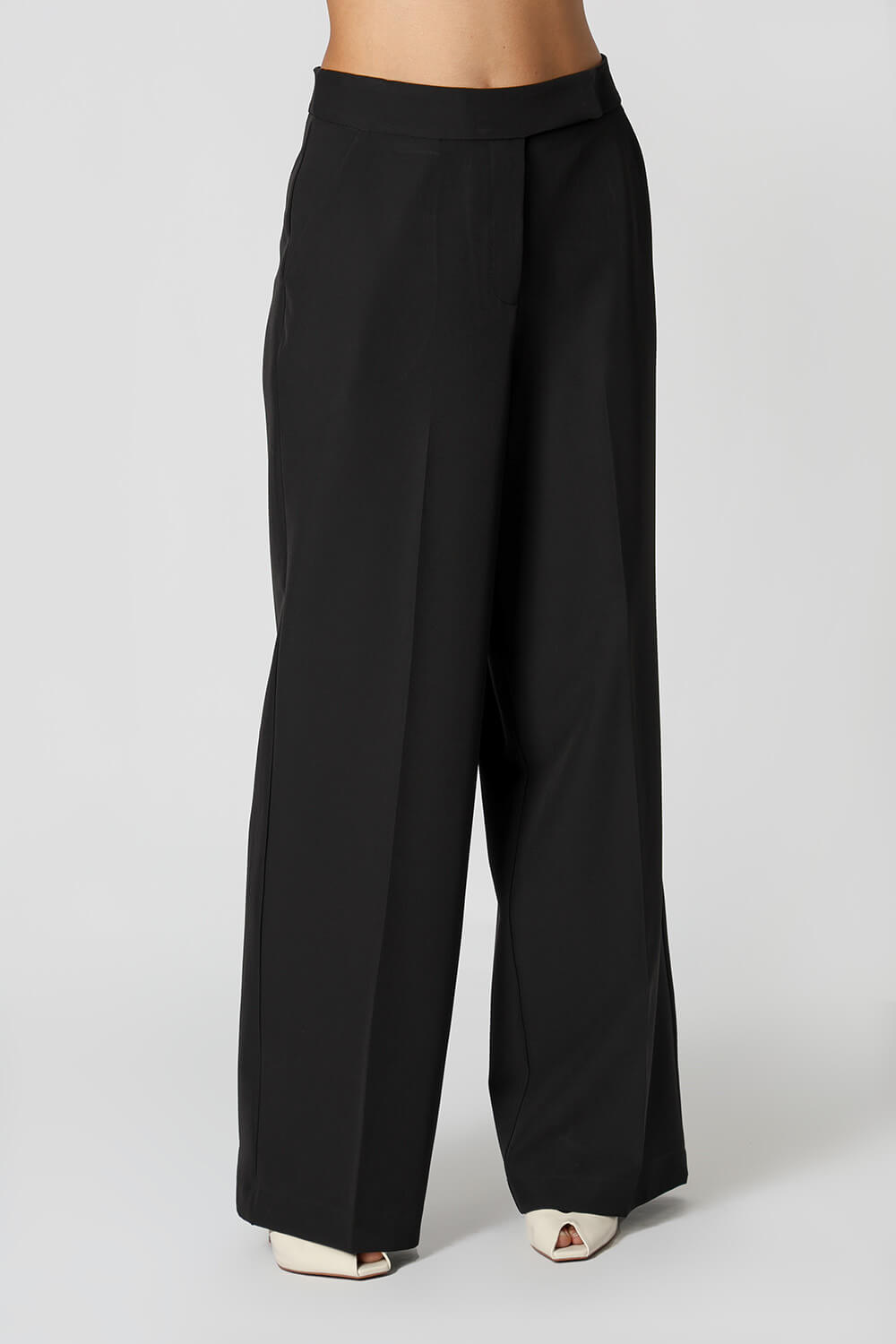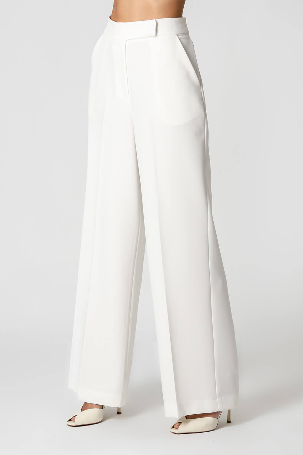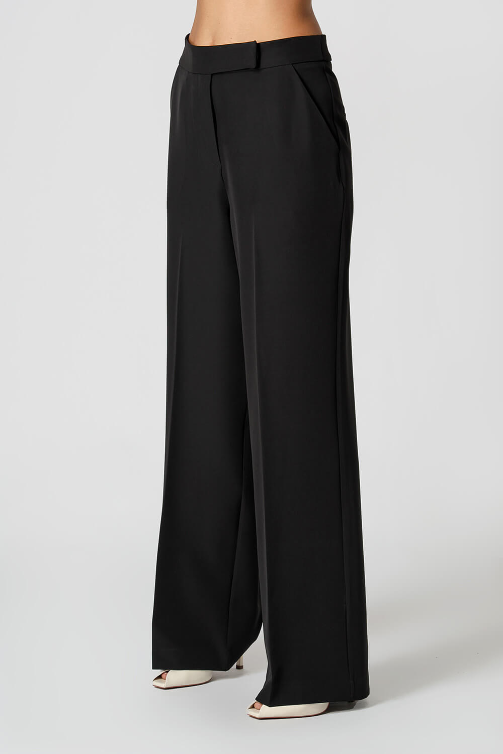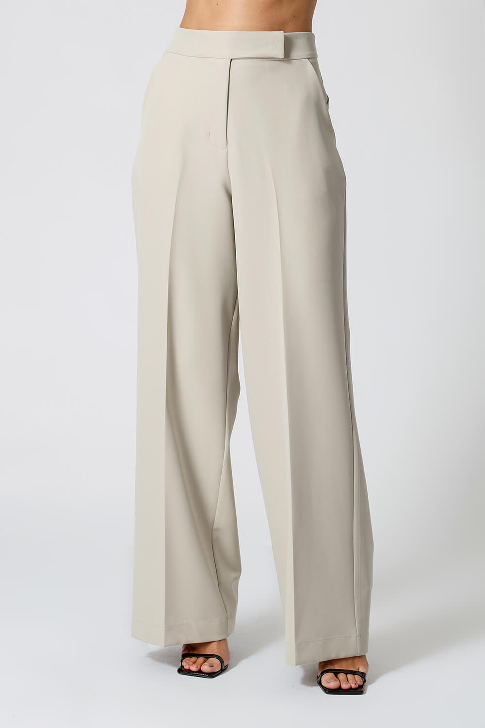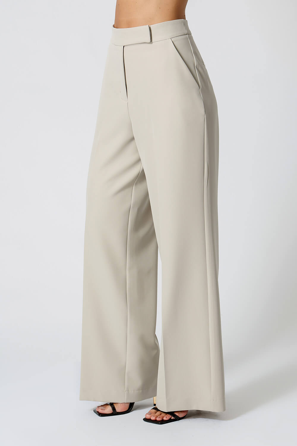Confeccionada em tecido de alfaiataria, possui vinco frente e costas, bolsos funcionais e modelagem pantalona. Cós transpassado que garante sofisticação ao look.