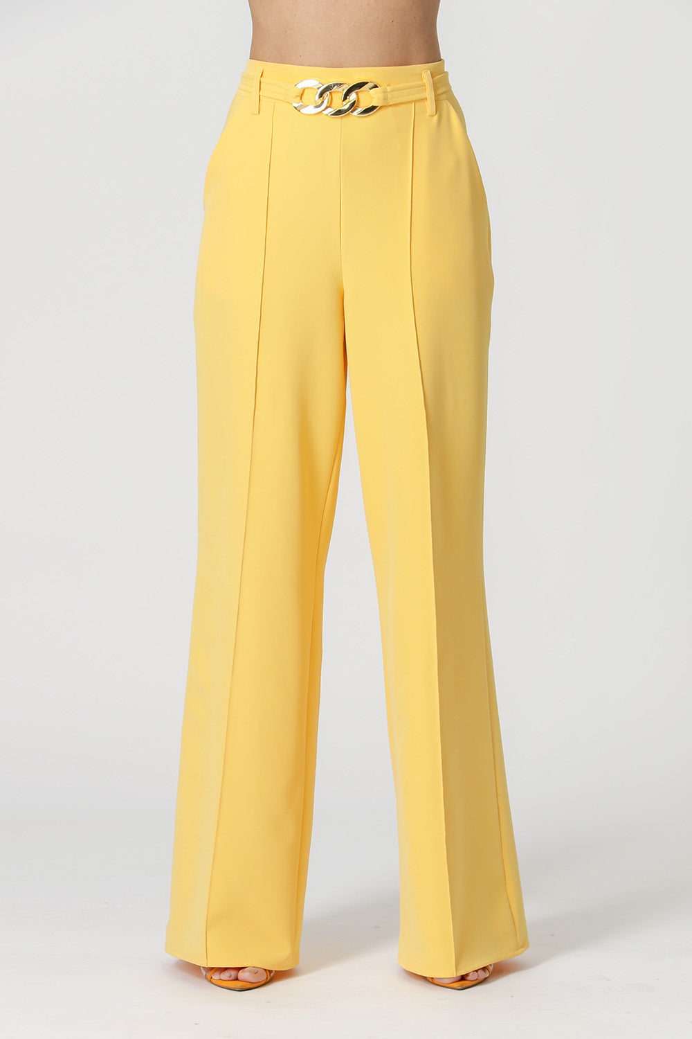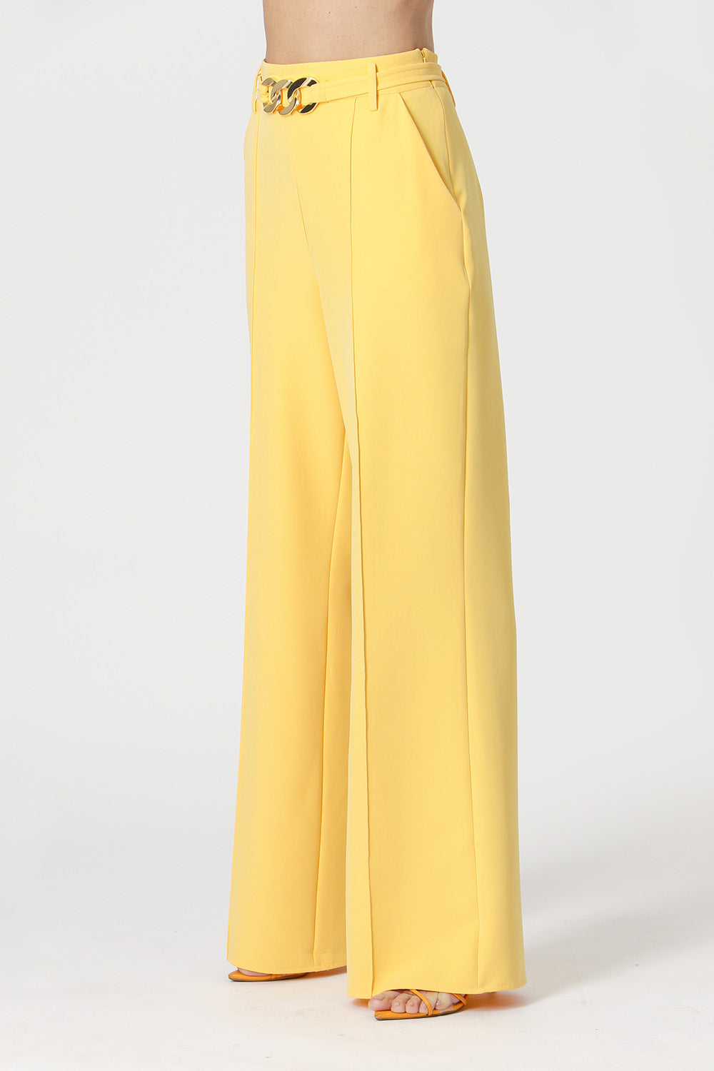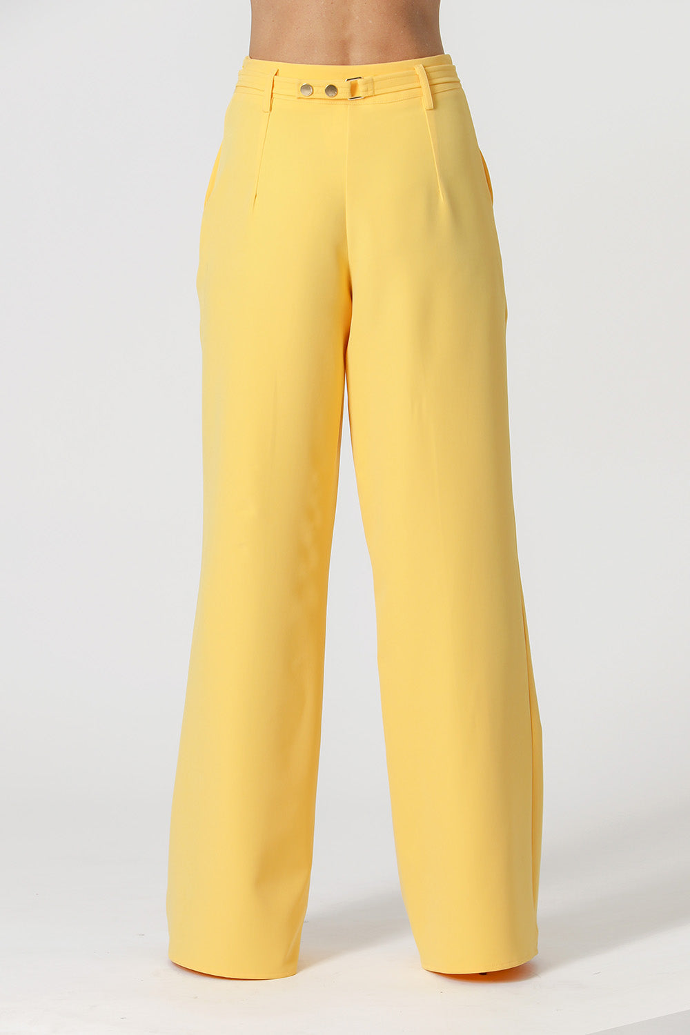 Pantalones anchos entallados con detalle de cinturón y herrajes metálicos como botones a presión, hebillas y anillas. Pieza confeccionada en tejido de sastrería. Un modelo elegante, una gran opción para un ambiente de trabajo.