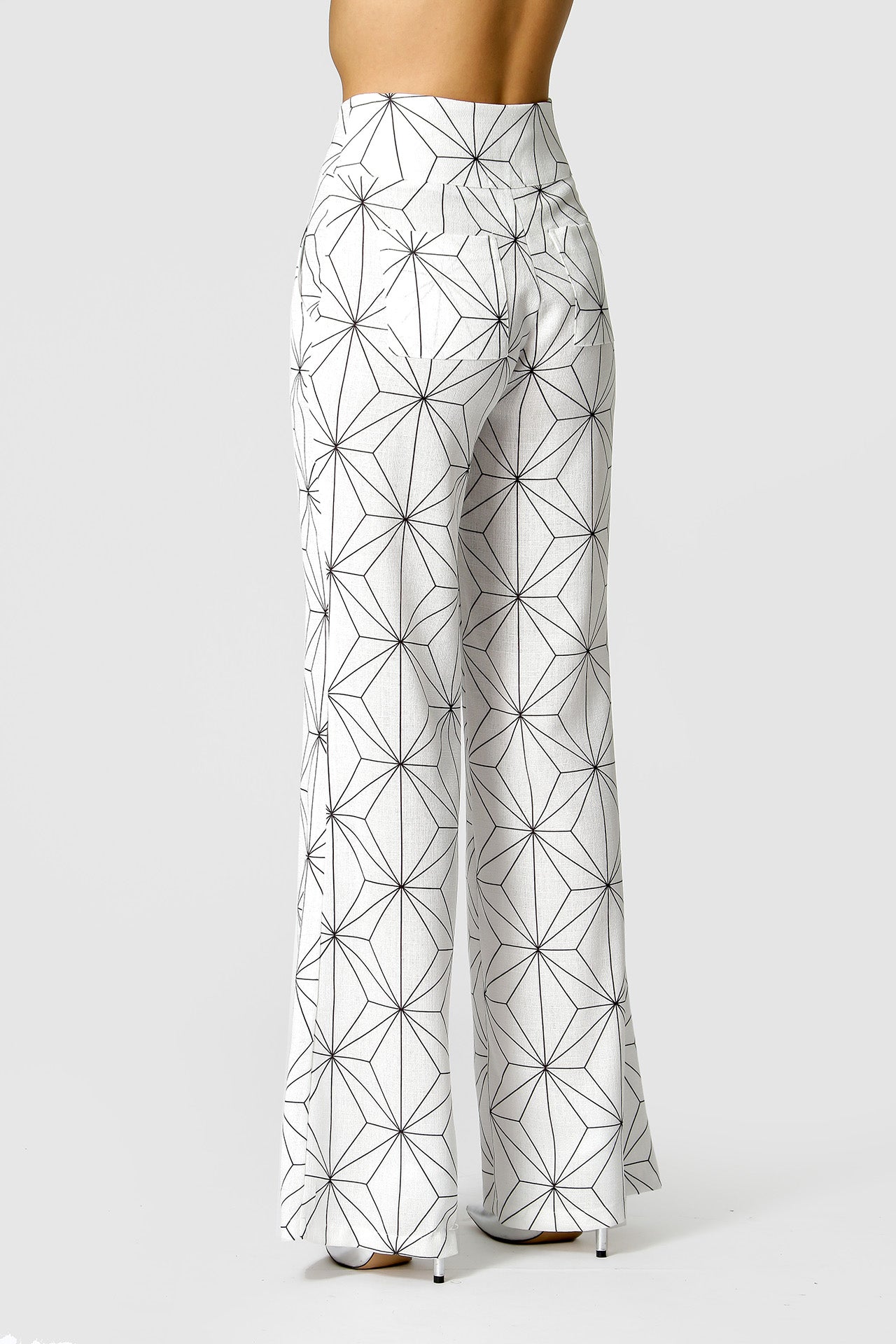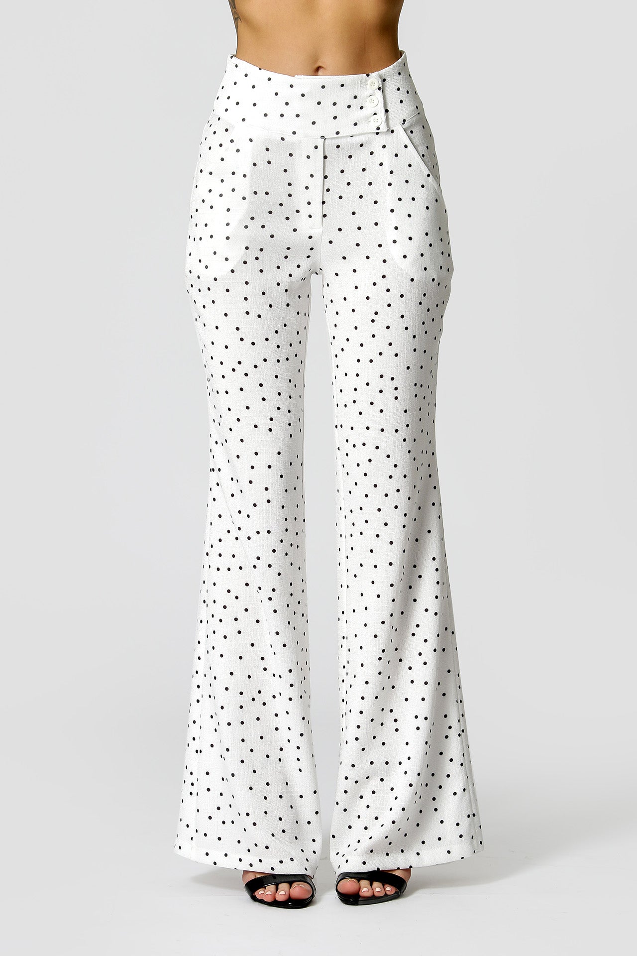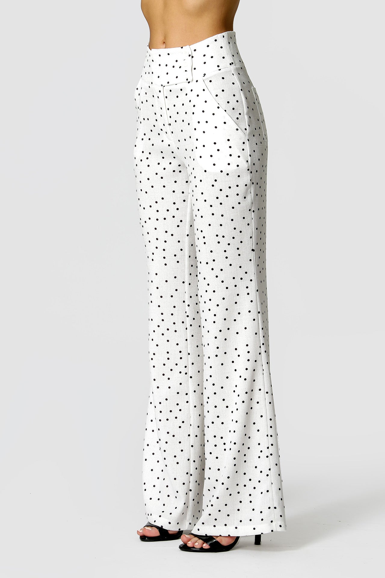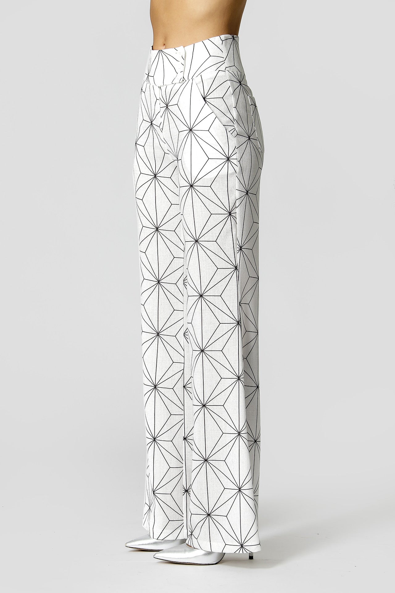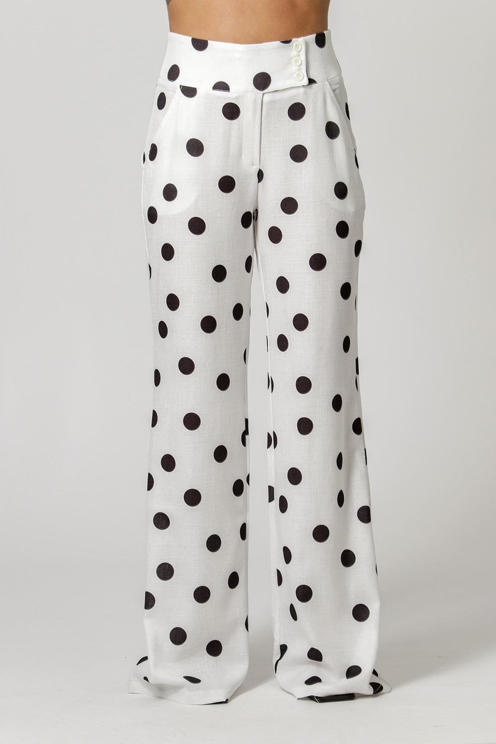 Calça com shape pantalona, com cós largo com 3 botões externos e um interno, um bolso faca, uma peça elegante para diversos looks.