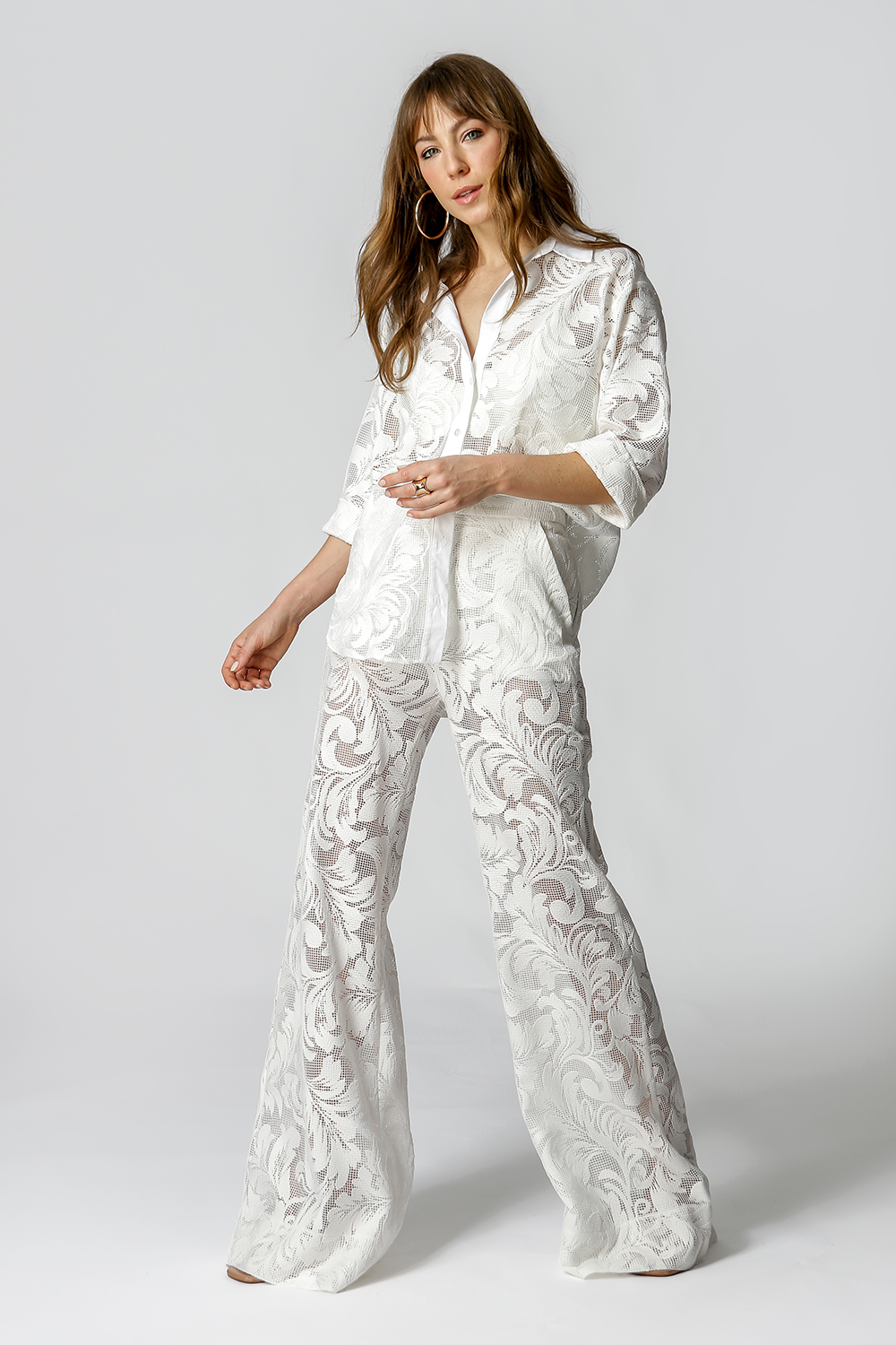 Pantalones palazzo bordados. Pieza ideal para lucir en ocasiones casuales.