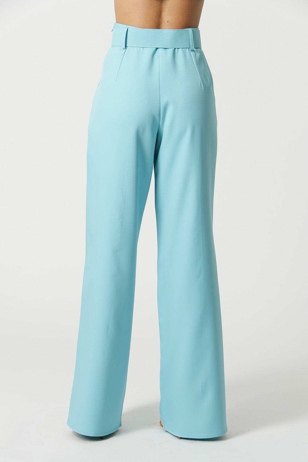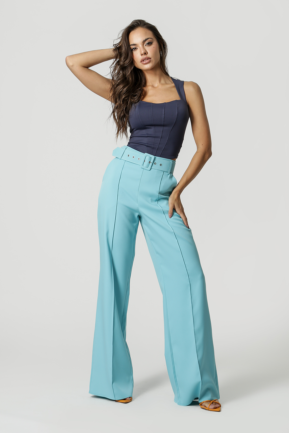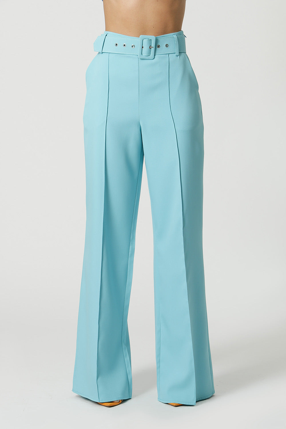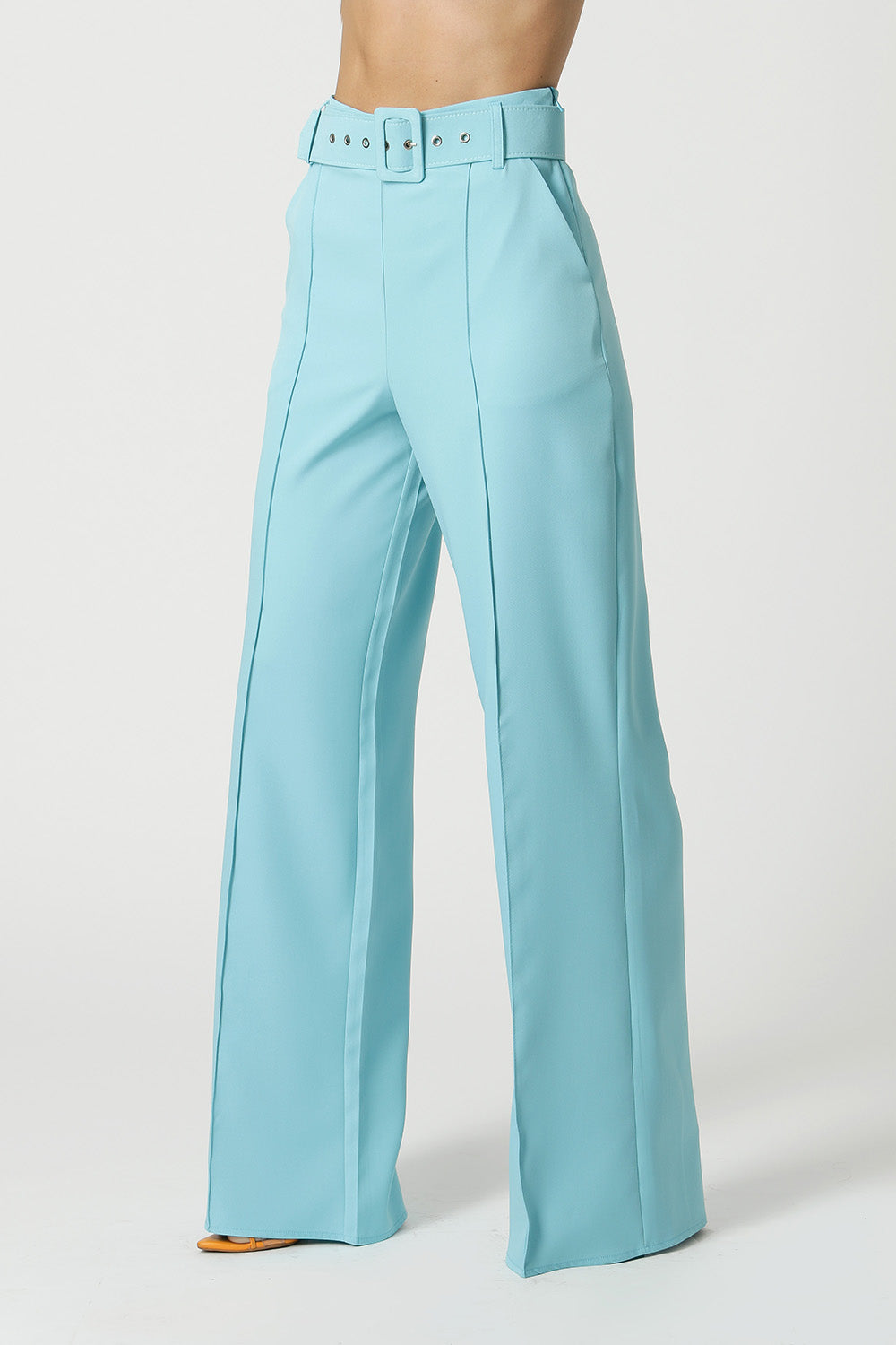 Pantalón palazzo de cintura alta con cinturón forrado y hebilla. Hermosa pieza para muchas ocasiones, tanto laborales como casuales.