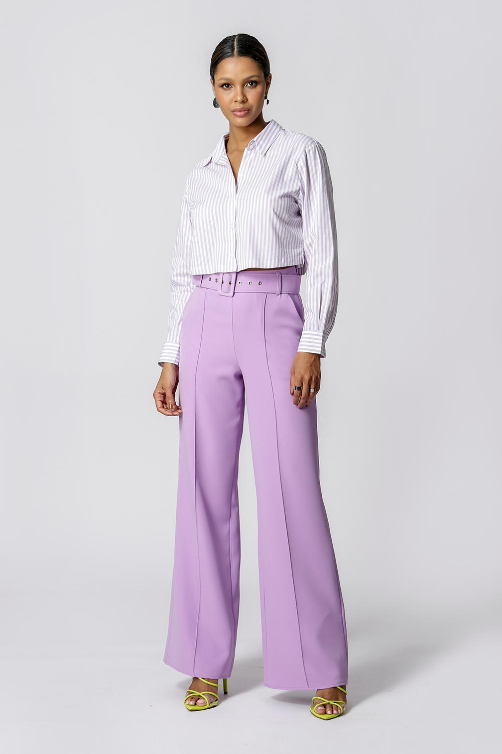Pantalones Palazzo de cintura alta - MORADO CLARO