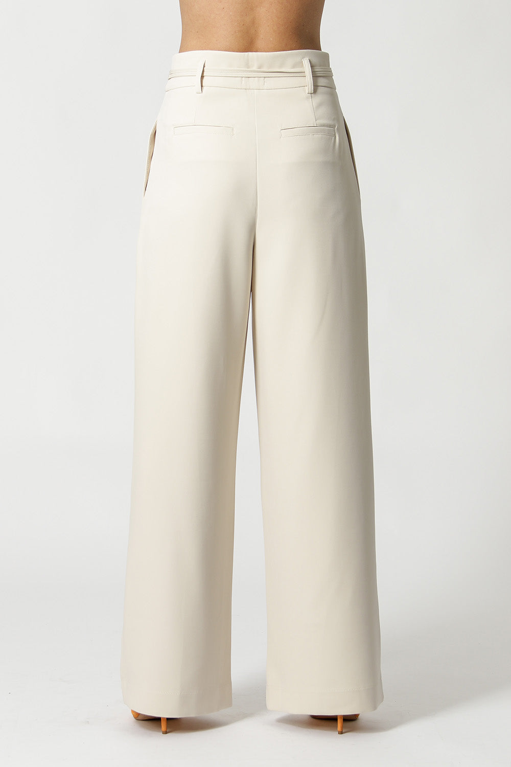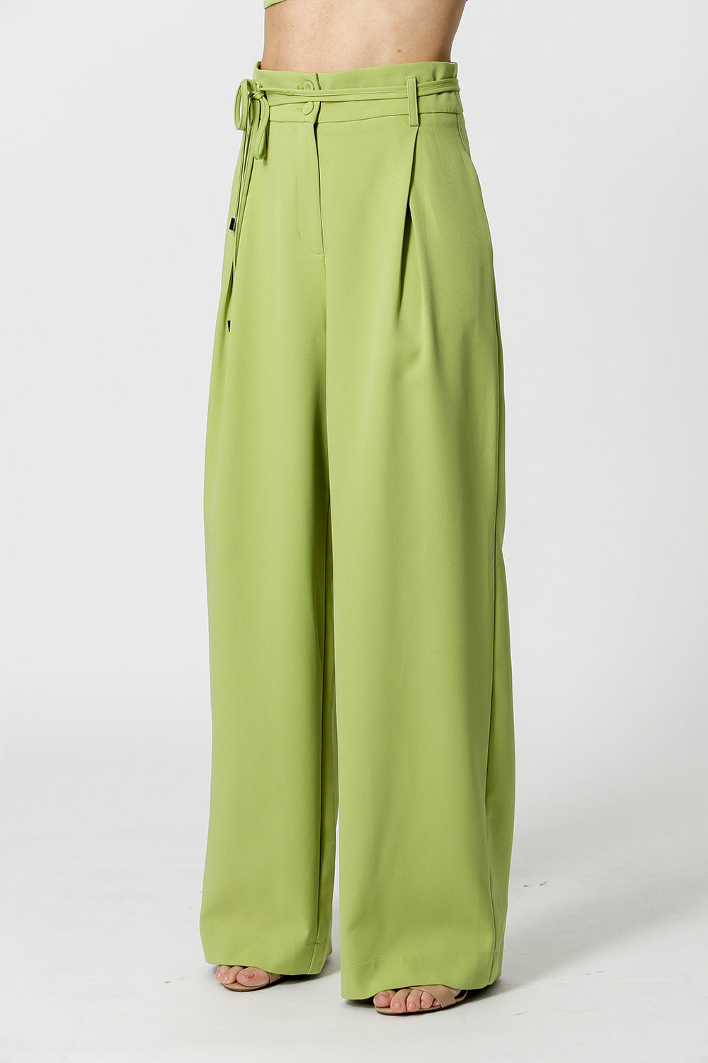 Calça pantalona com cós largo e cinto fino de tira. Possui detalhe de pregas e bolso. Peça feita em alfaiataria, clássica e atemporal, que pode ser coordenada com todo o seu guarda-roupa.
