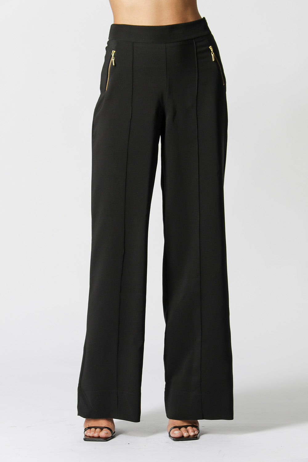 Pantalón palazzo con detalle de cremallera. Fabricado con tejido a medida. Un modelo elegante pero moderno que aporta comodidad a tu vida diaria y es perfecto para un ambiente de trabajo.