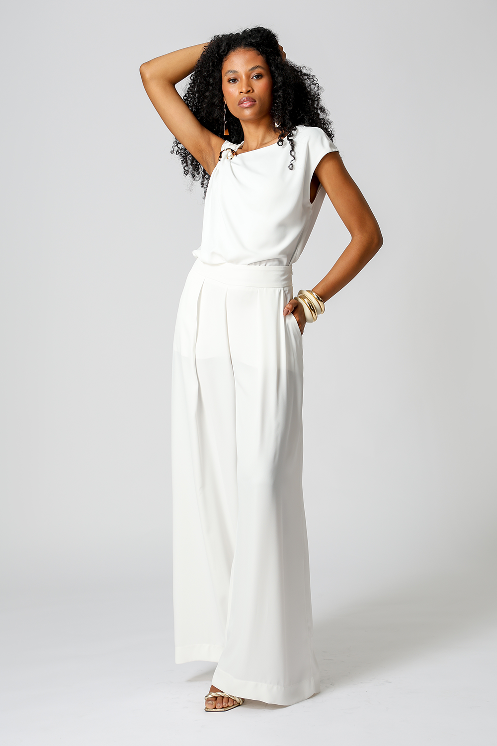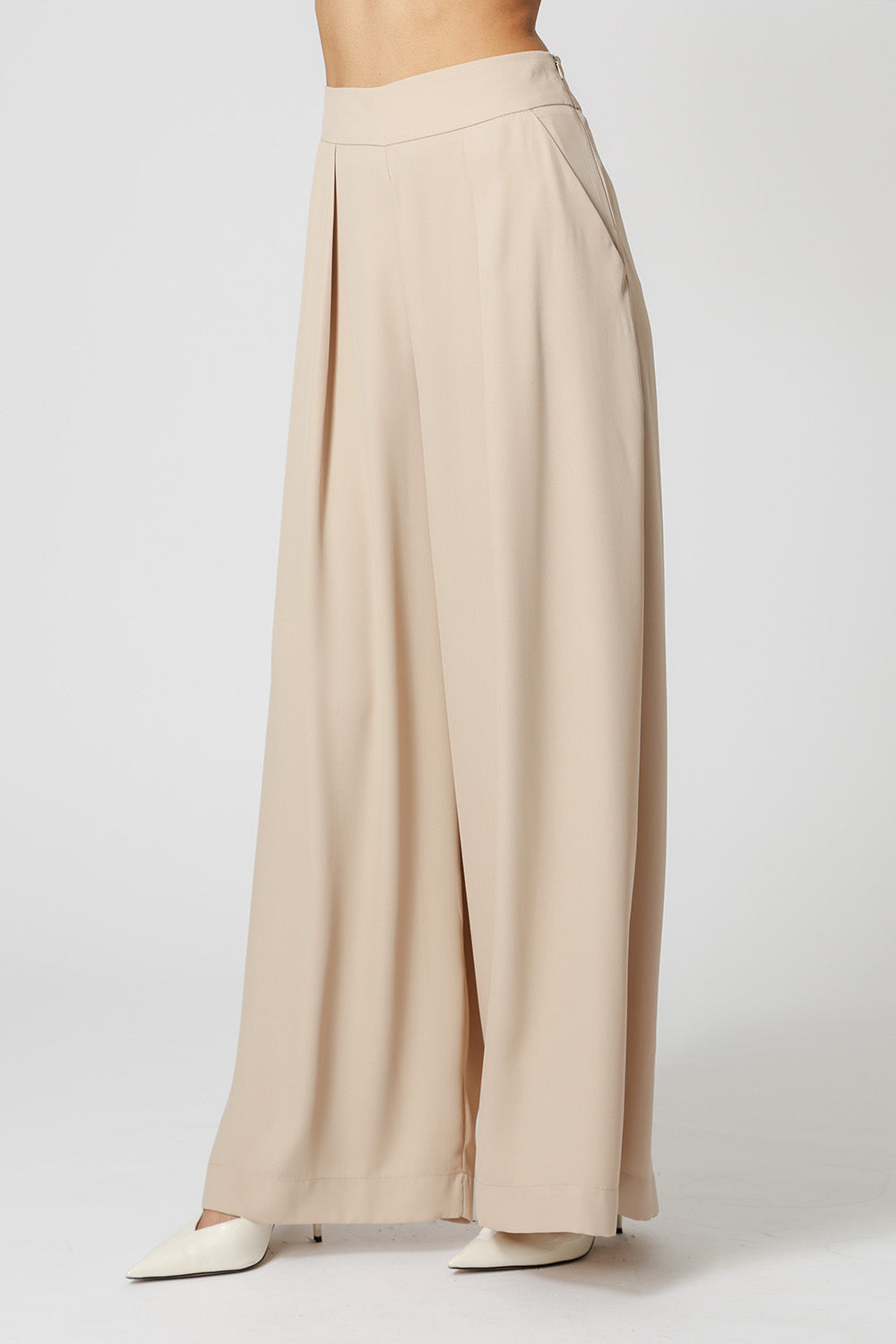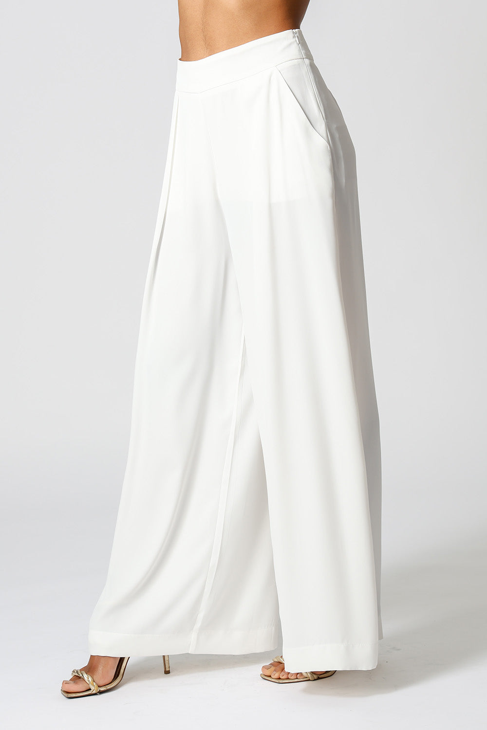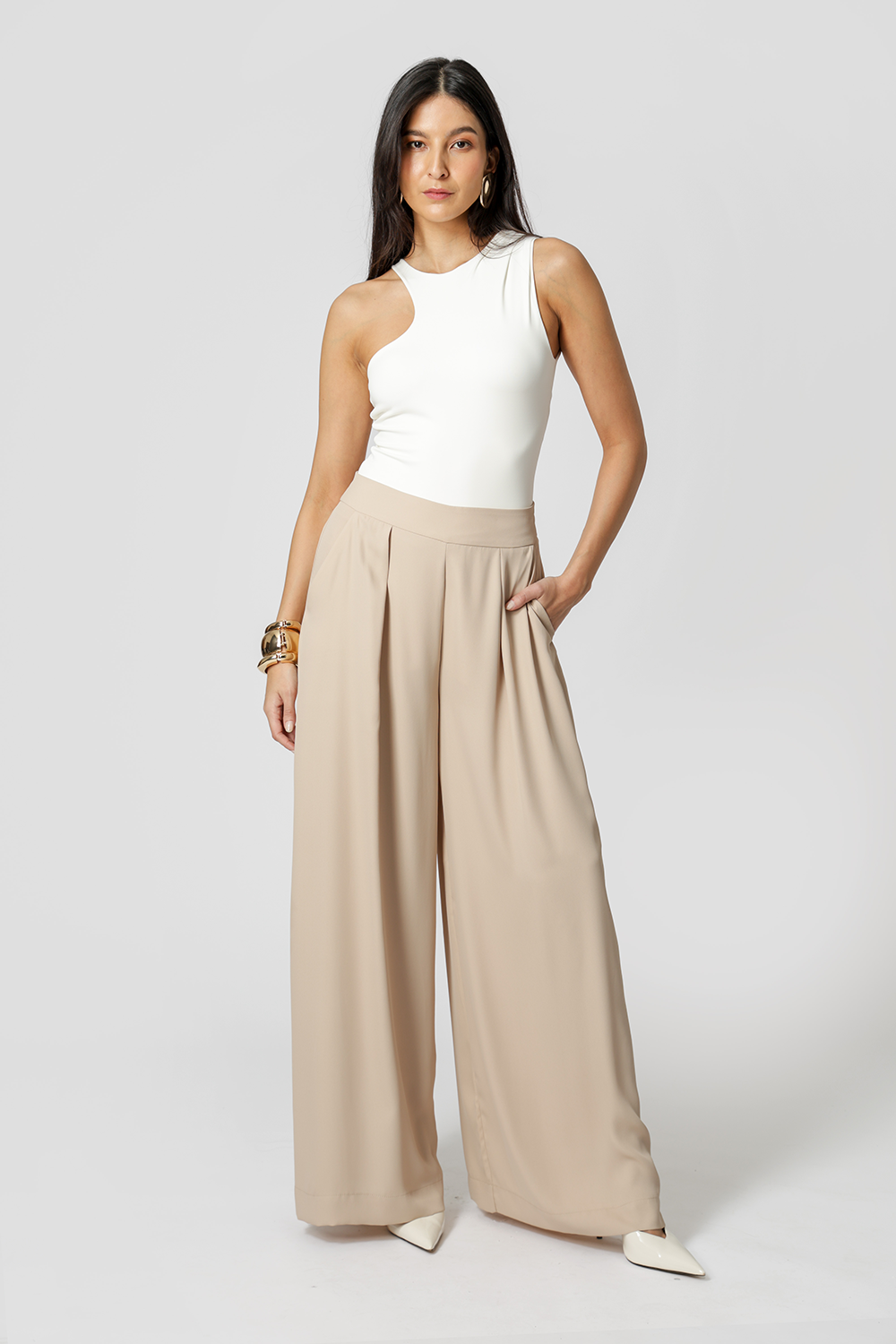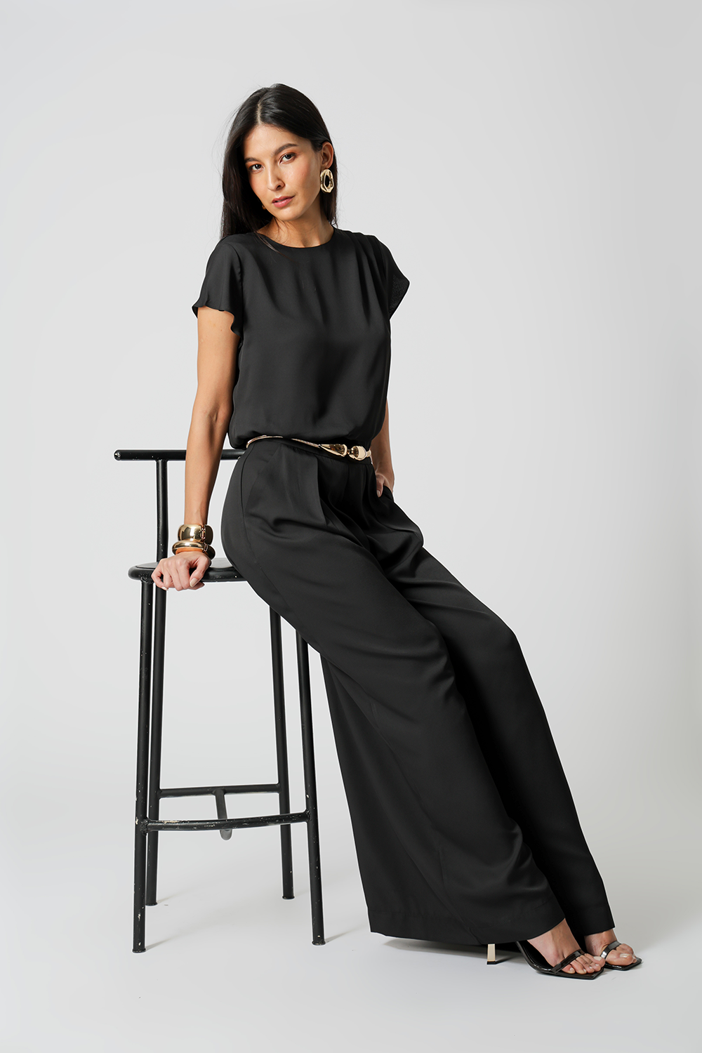 Com caimento leve e elegante, a calça pantalona em crepe Segall apresenta prega frontal que cria volume sutil na barra, trazendo movimento e sofisticação ao look.