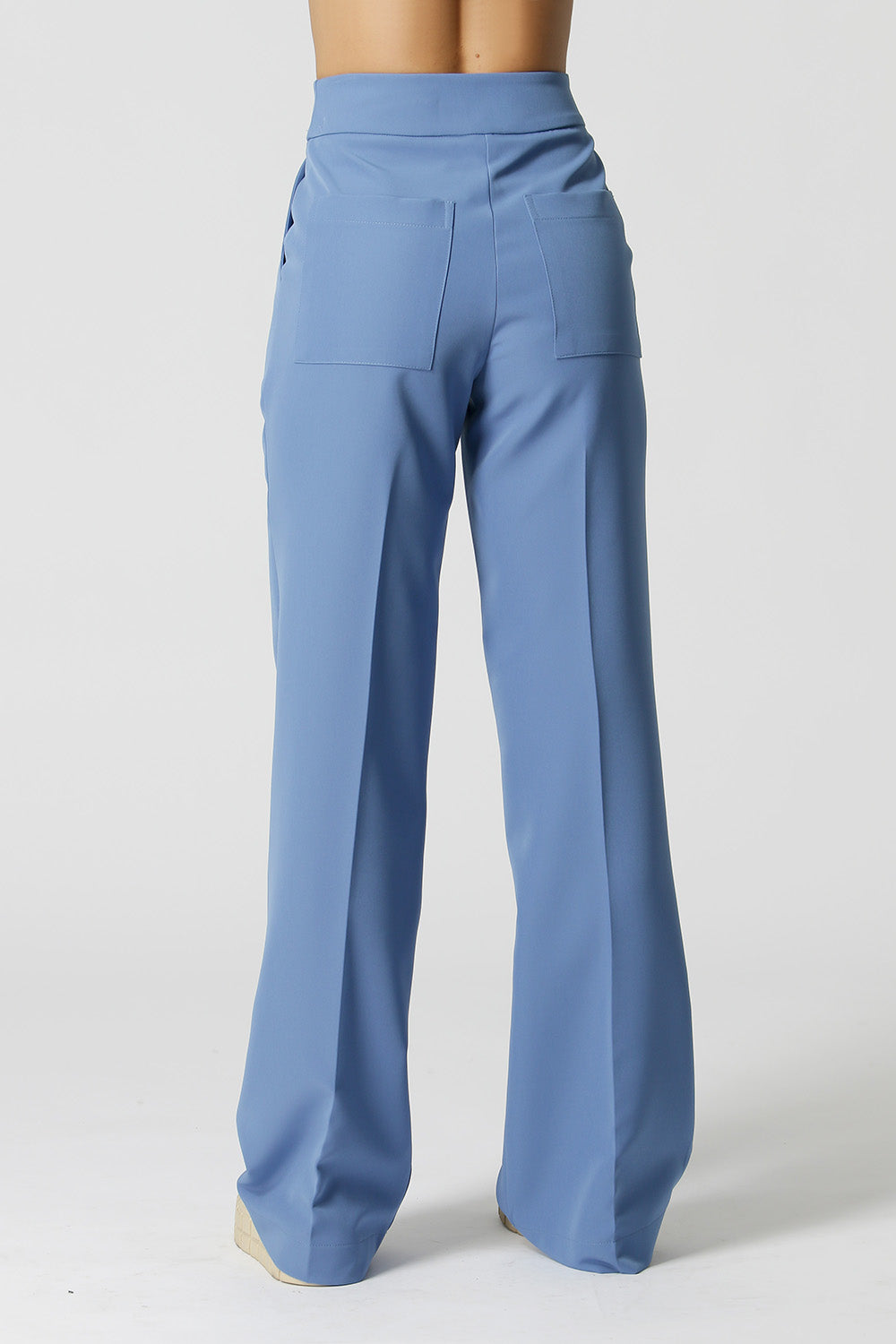 Pantalón de corte palazzo con pliegues realizados en el planchado. Bolsillo para cuchillo en el lateral. Una pieza atemporal elaborada con fina sastrería, ideal para un look de trabajo diario.