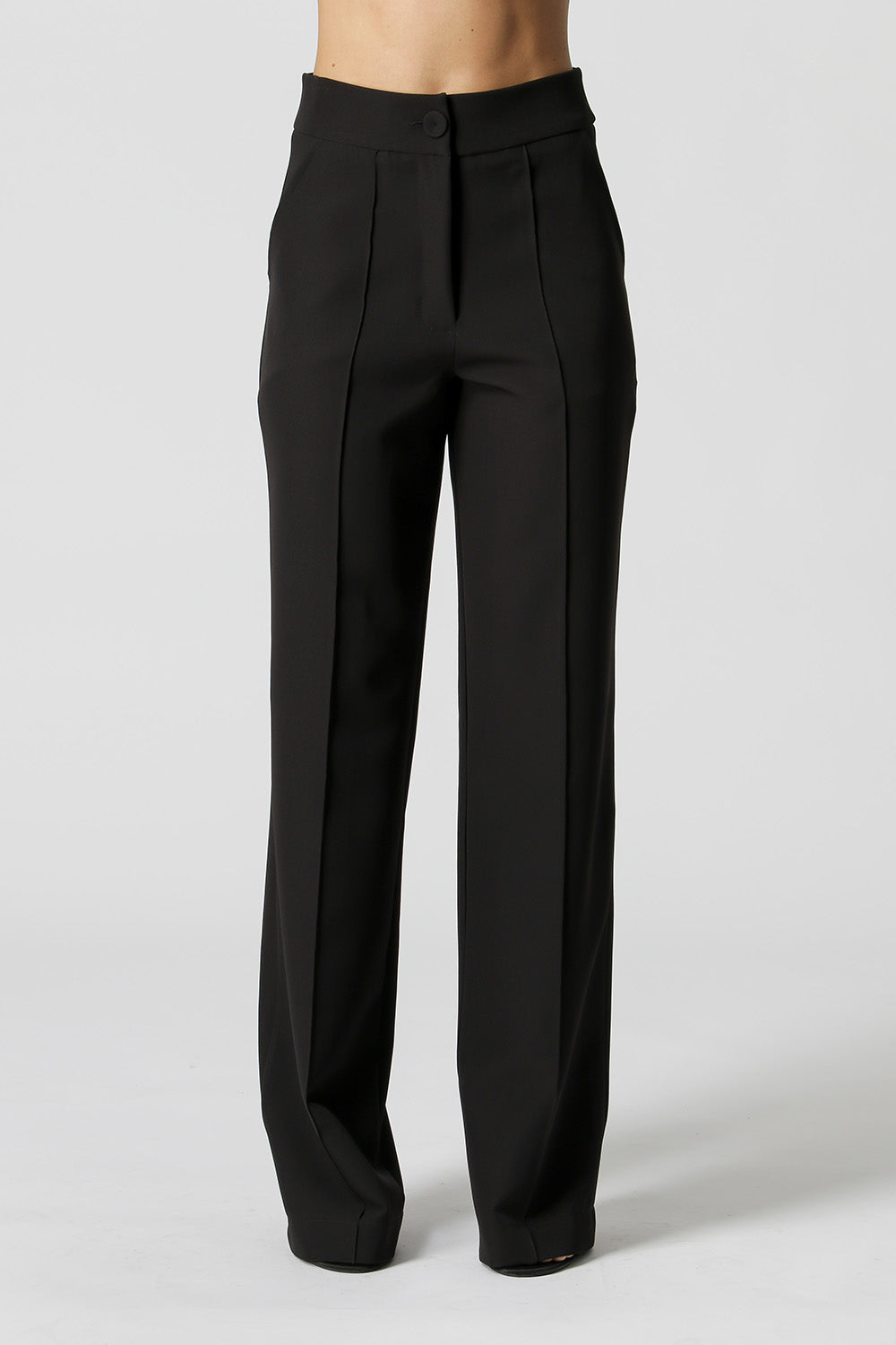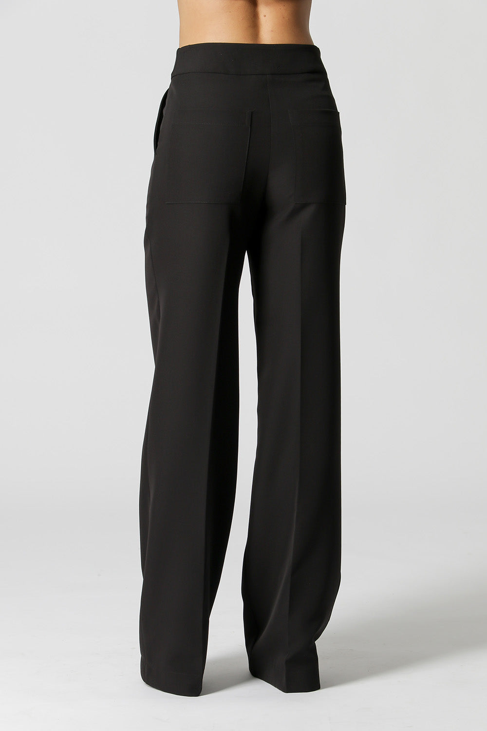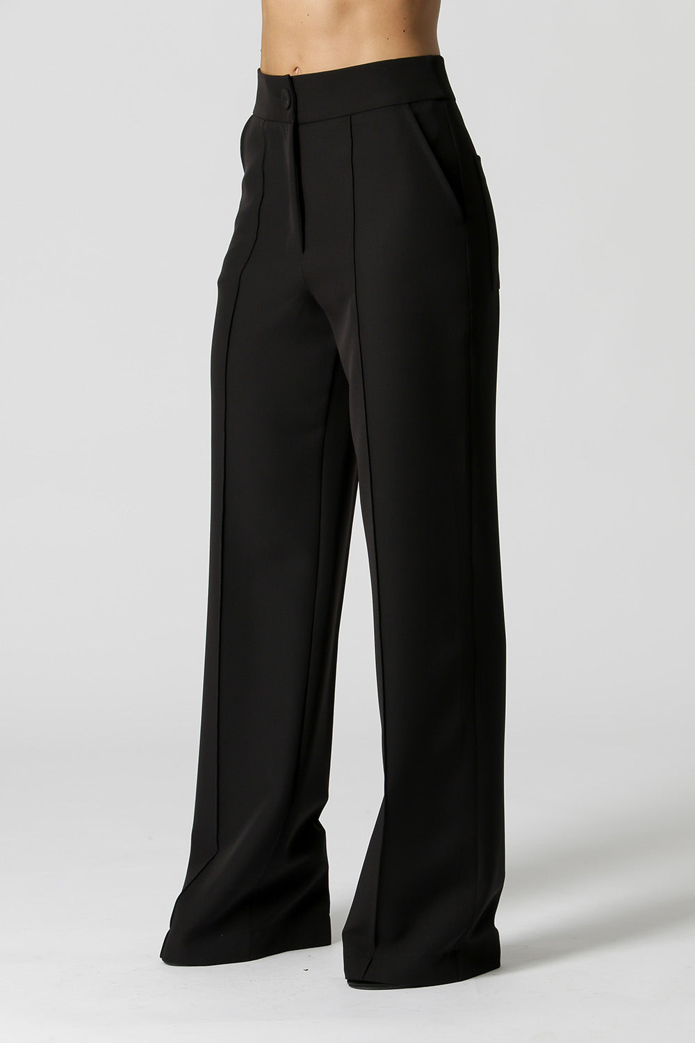 Pantalón de corte palazzo con pliegues realizados en el planchado. Bolsillo para cuchillo en el lateral. Una pieza atemporal elaborada con fina sastrería, ideal para un look de trabajo diario.
