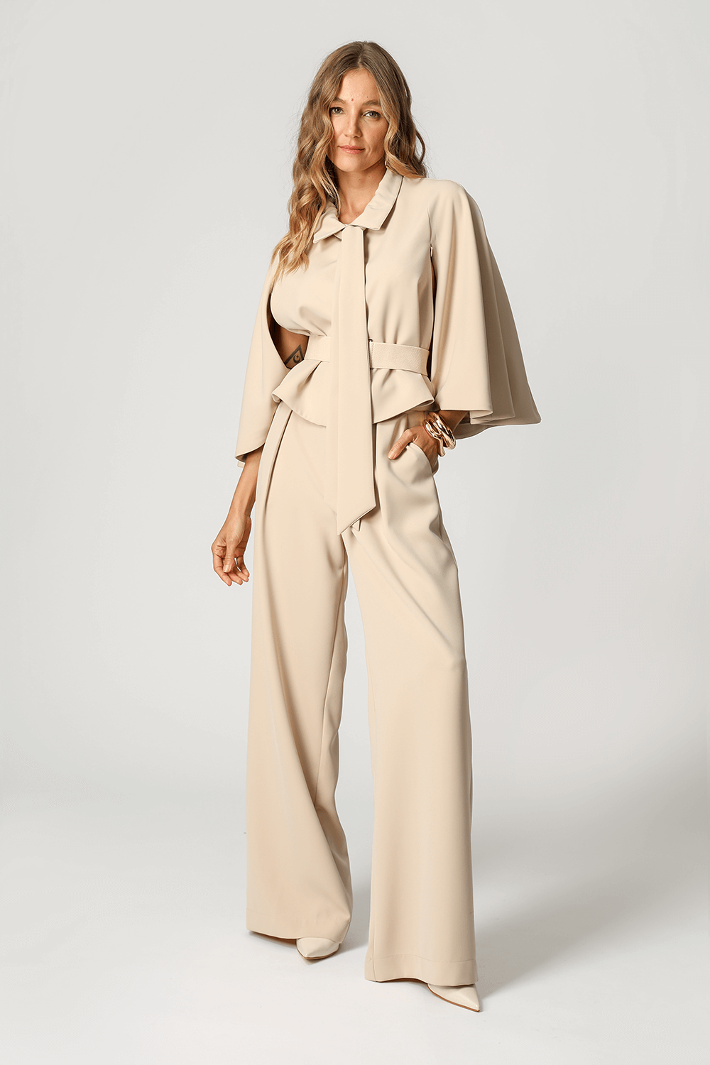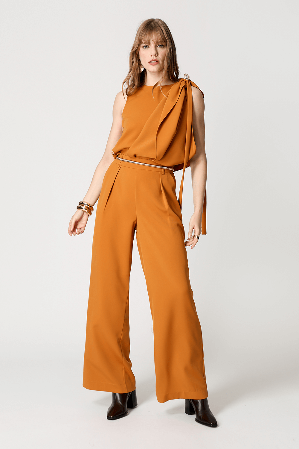 Calça Pantalona com design moderno e elegante, que apresenta cós fino e pregas frontais que garantem um caimento impecável e visual estruturado. Perfeita para looks sofisticados no trabalho, eventos especiais ou ocasiões casuais-chiques.