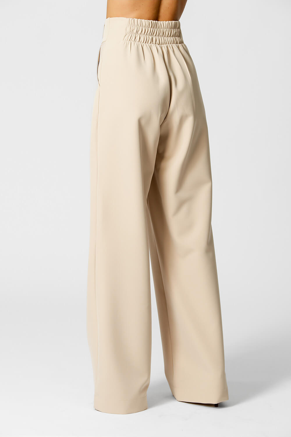 Pantalón palazzo con detalle de cinturilla elástica. Una Pieza confeccionada en tejido sastre, una pieza cómoda y elegante para crear diversos looks.