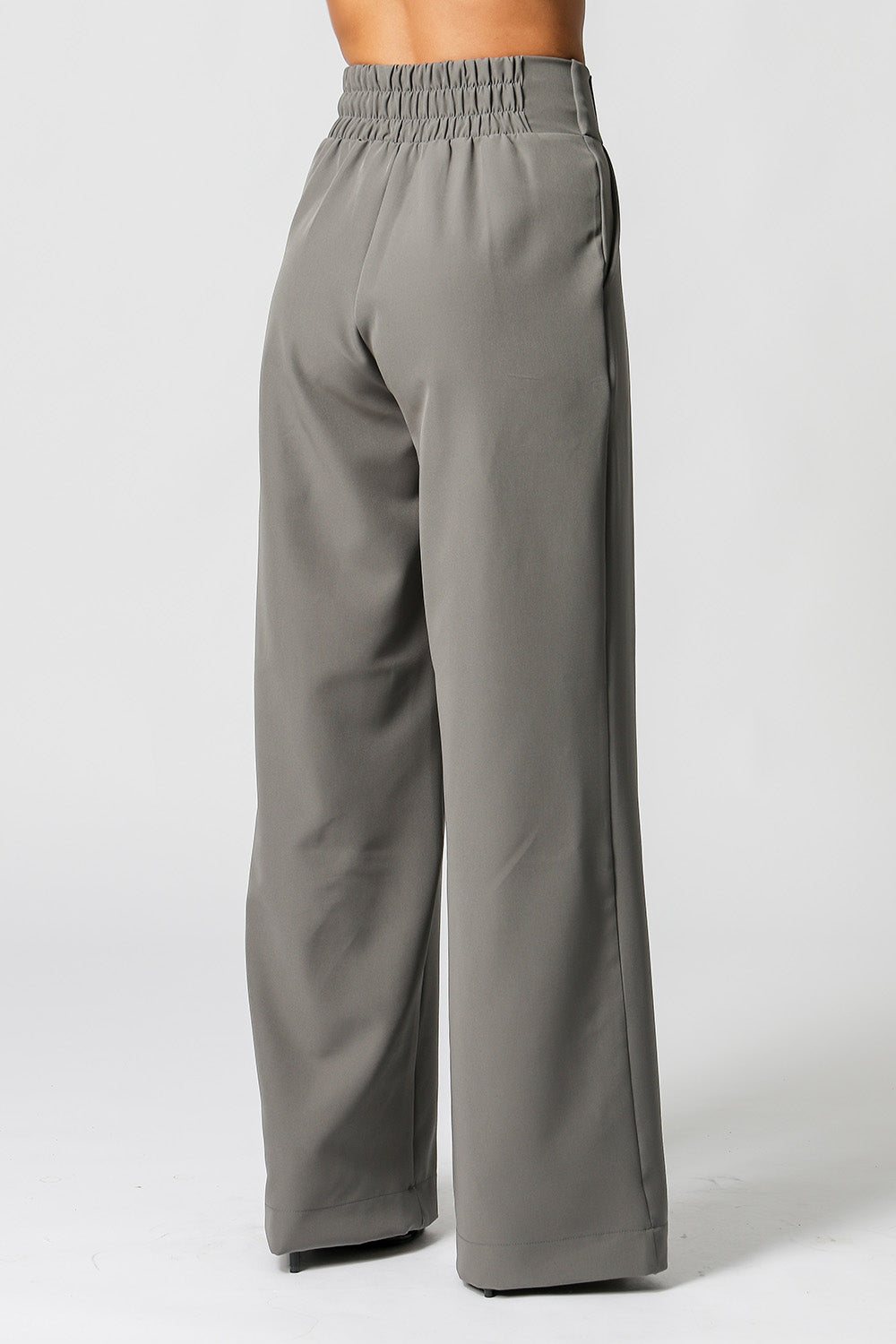 Pantalón palazzo con detalle de cinturilla elástica. Una Pieza confeccionada en tejido sastre, una pieza cómoda y elegante para crear diversos looks.