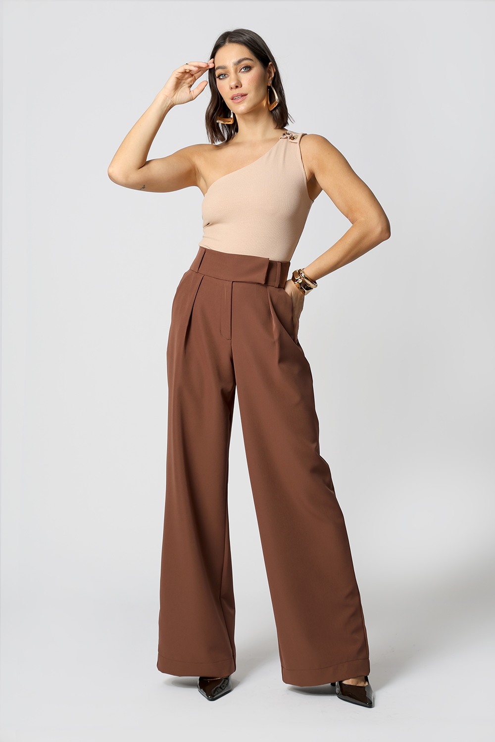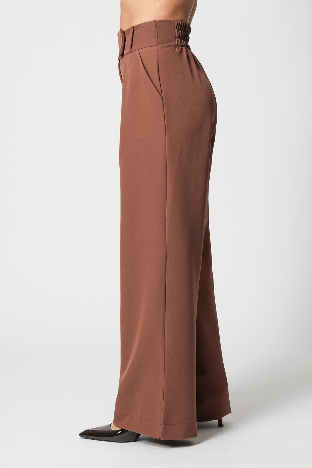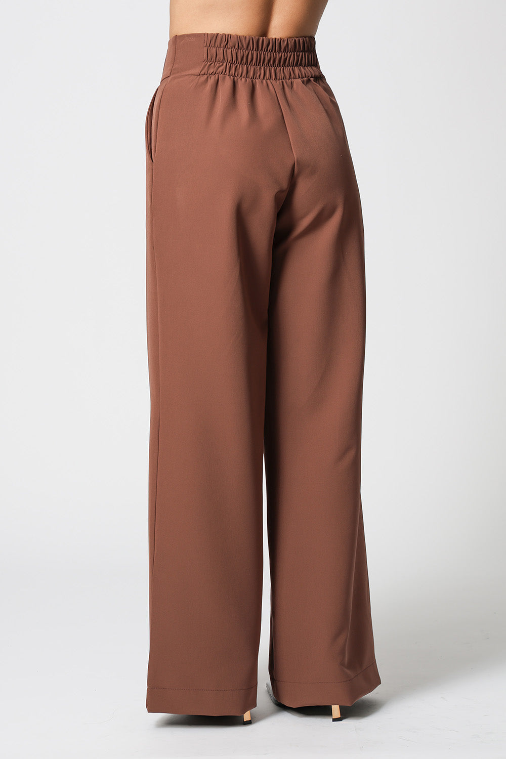 Pantalón palazzo con detalle de cinturilla elástica. Una Pieza confeccionada en tejido sastre, una pieza cómoda y elegante para crear diversos looks.