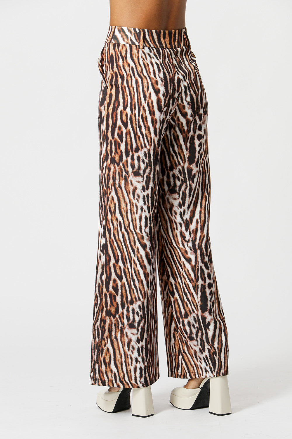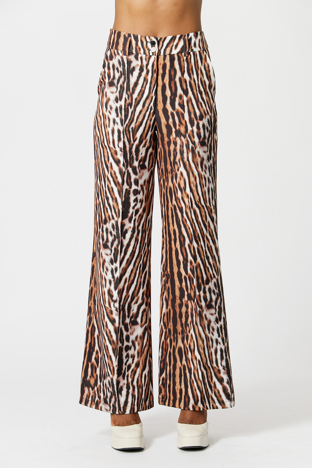 Pantalón con corte palazzo, bolsillos laterales abiertos y ribete en canalé a lo largo de la prenda. El pantalón protagonista en cualquier look, ideal para combinar con piezas más básicas para no perder protagonismo.