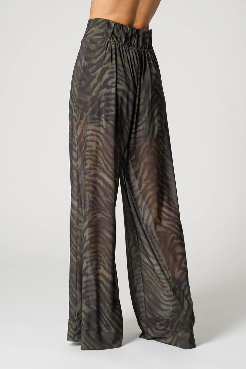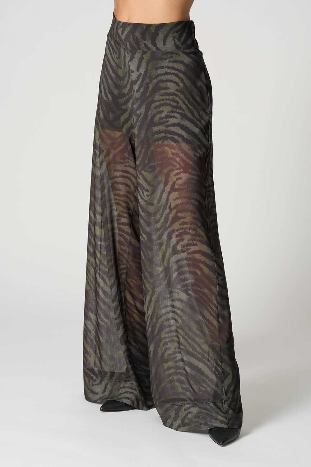 • Calça Pantalona Estampada Em Tule