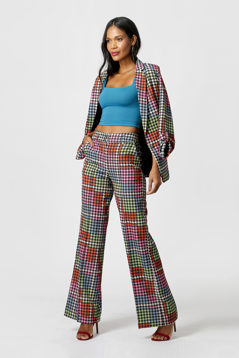 Pantalón con corte palazzo, bolsillos laterales abiertos y ribete en canalé a lo largo de la prenda. El pantalón protagonista en cualquier look, ideal para combinar con piezas más básicas para no perder protagonismo.