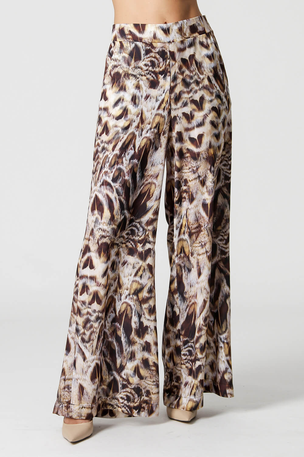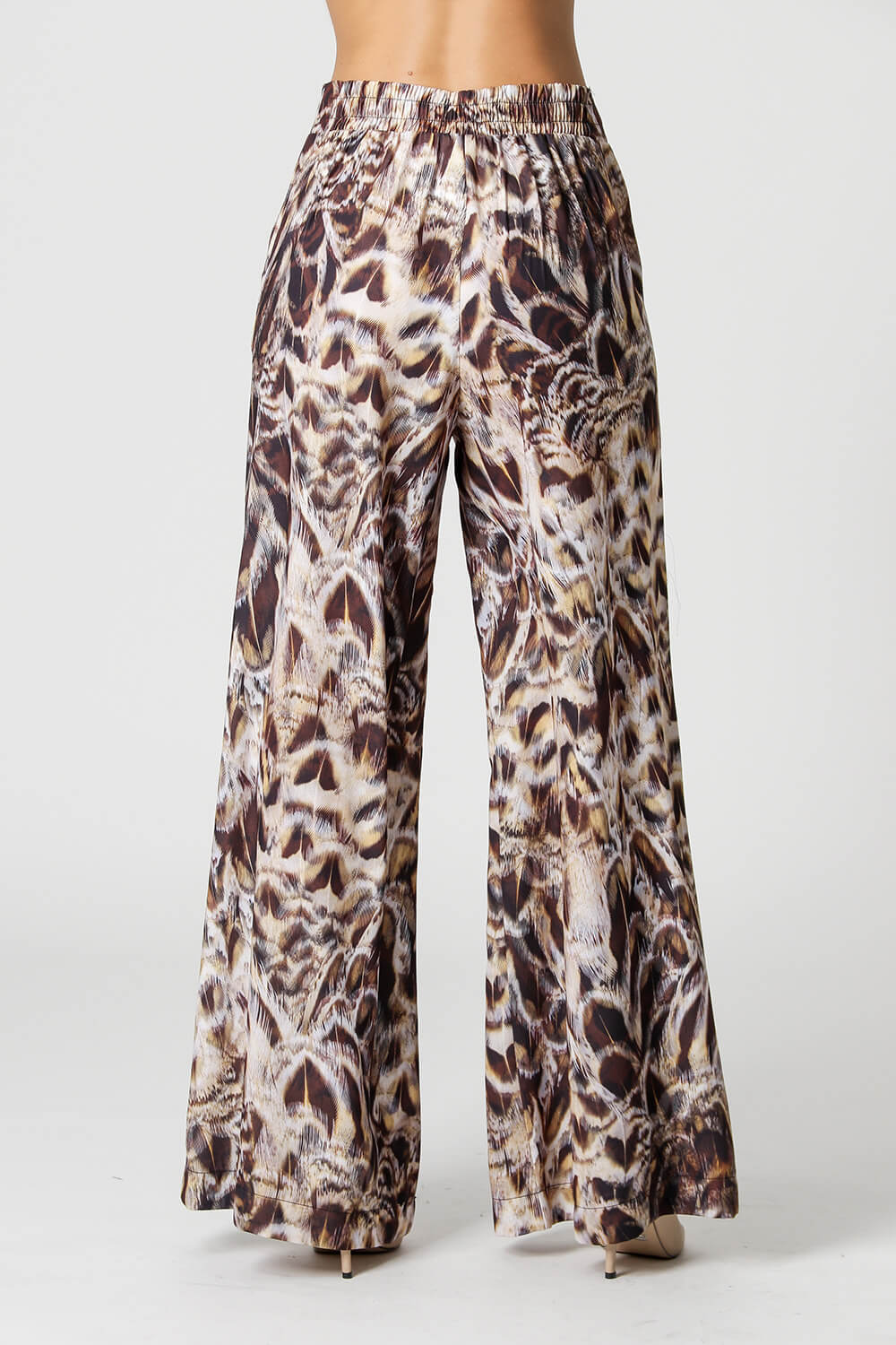 Pantalón palazzo con bolsillo y elástico en la espalda, un modelo confeccionado en tejido ligero con corte fluido estampado, perfecto para looks elegantes y casual, apuesta por esta pieza.