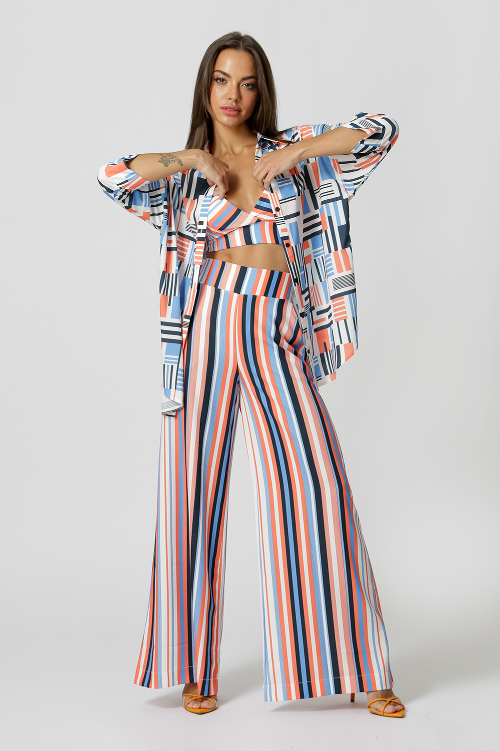 Pantalón palazzo confeccionado en crepe estampado de sastrería. Tiene un bolsillo para cuchillo y un ajuste fluido. Una pieza clásica para una variedad de looks versátiles.