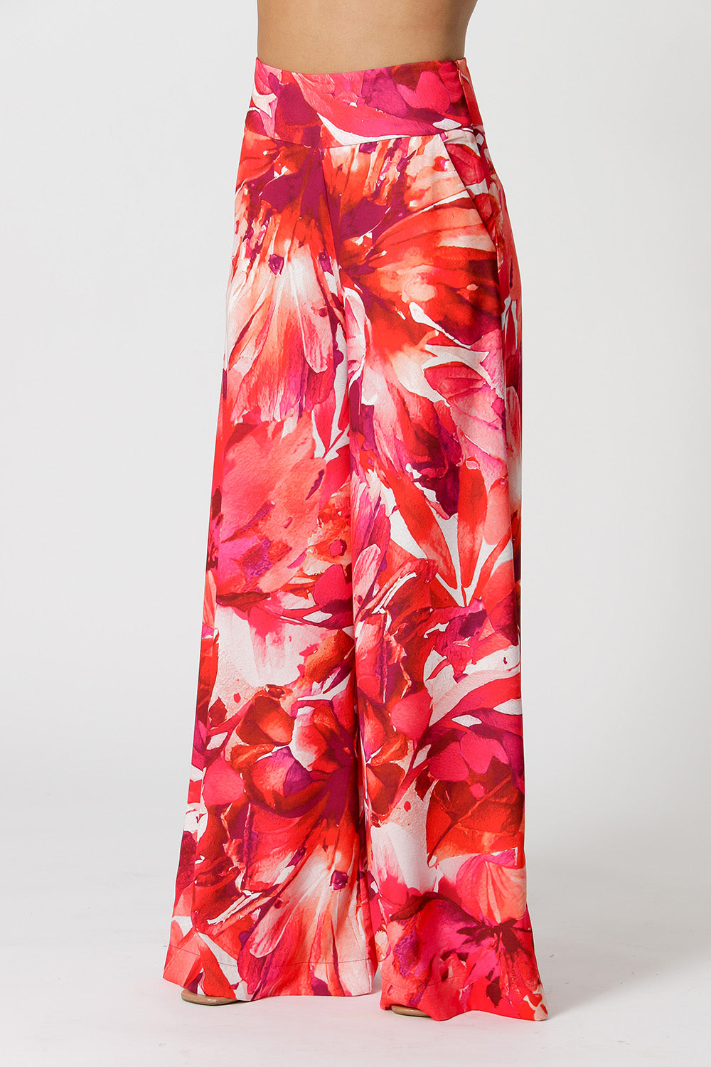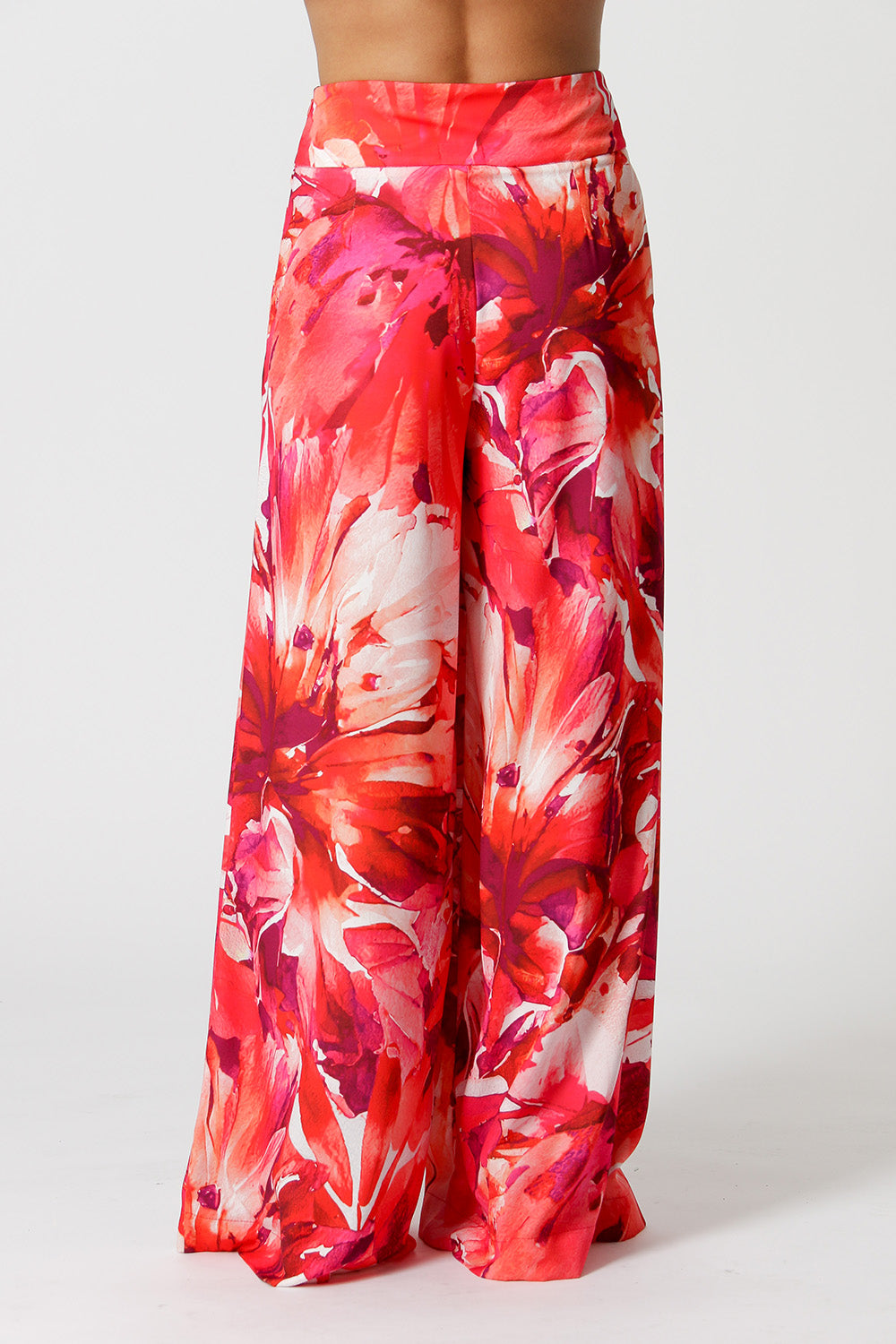 Pantalón confeccionado en gabardina ligera estampada, de estilo palazzo fluido, una pieza encantadora para un look casual.