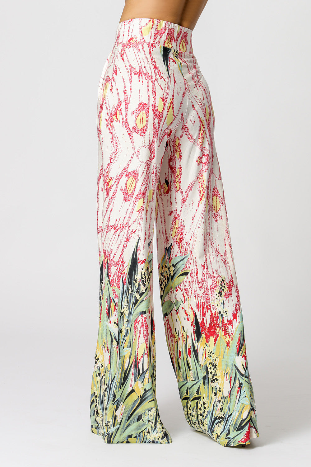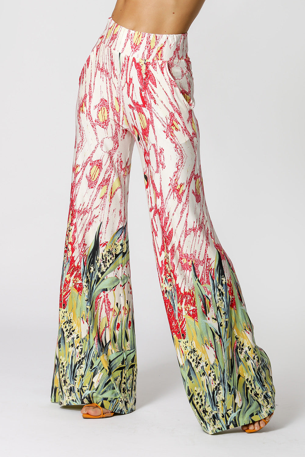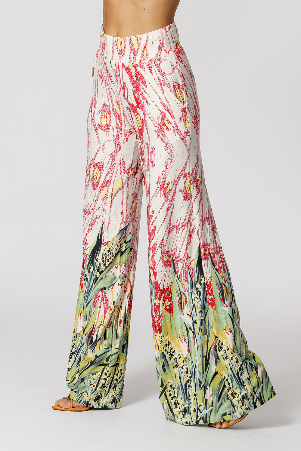 Pantalón palazzo con bolsillo delantero. Modelo realizado en tejido de punto estampado. Un modelo de forma suelta y cómoda para un look casual.