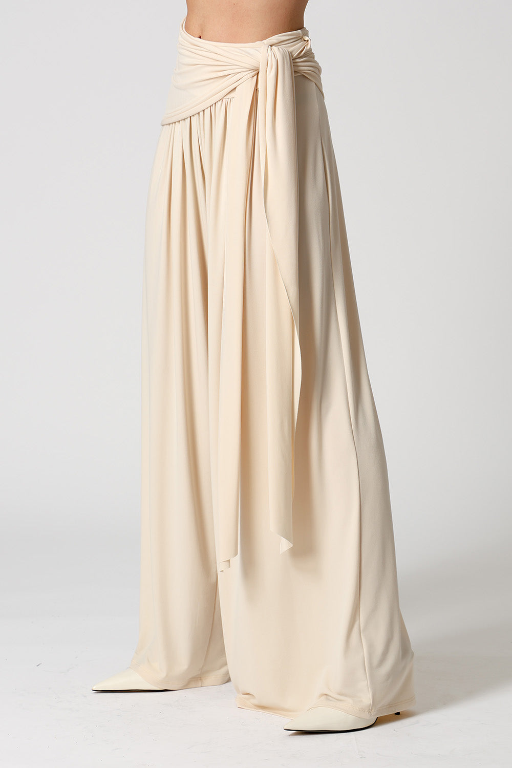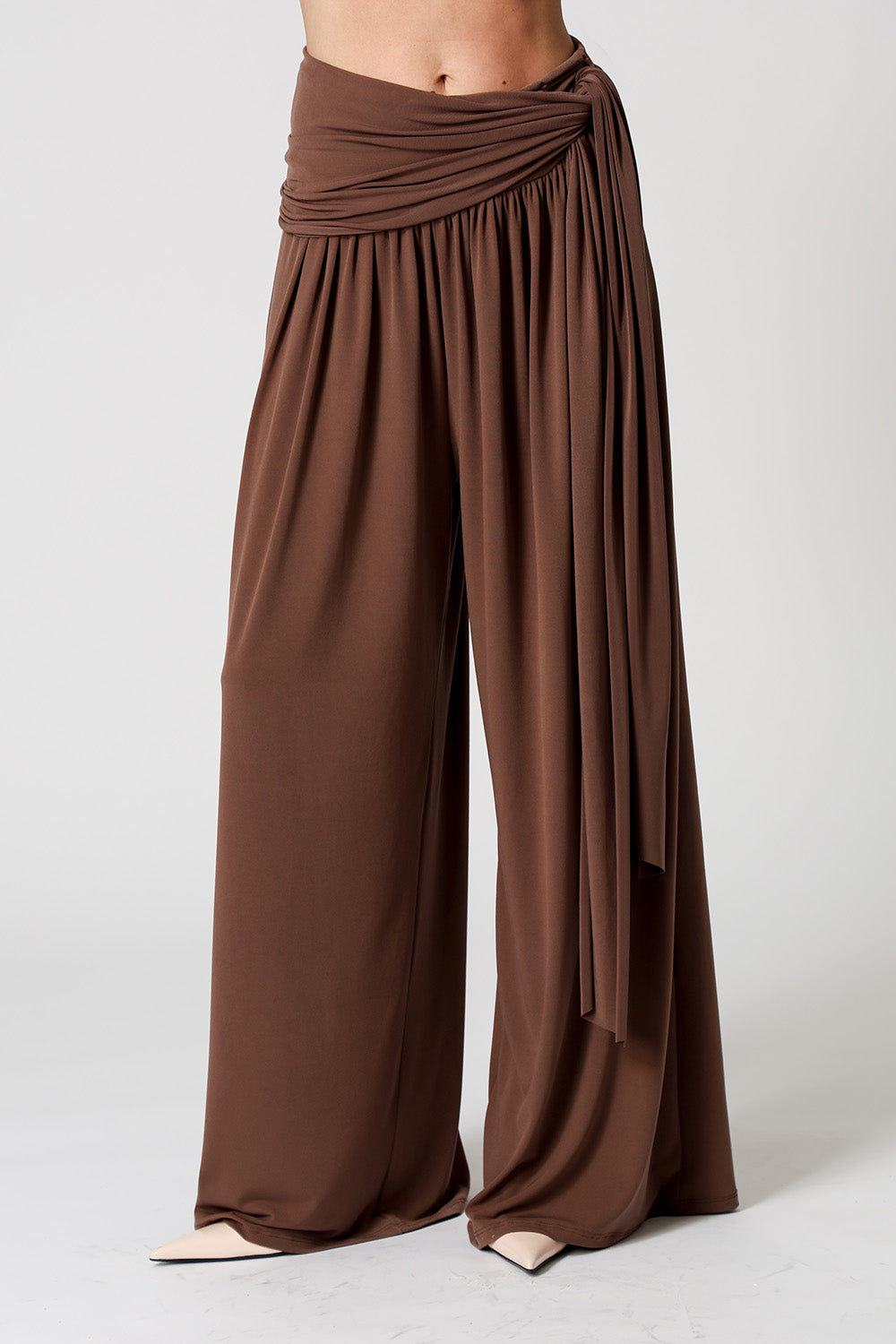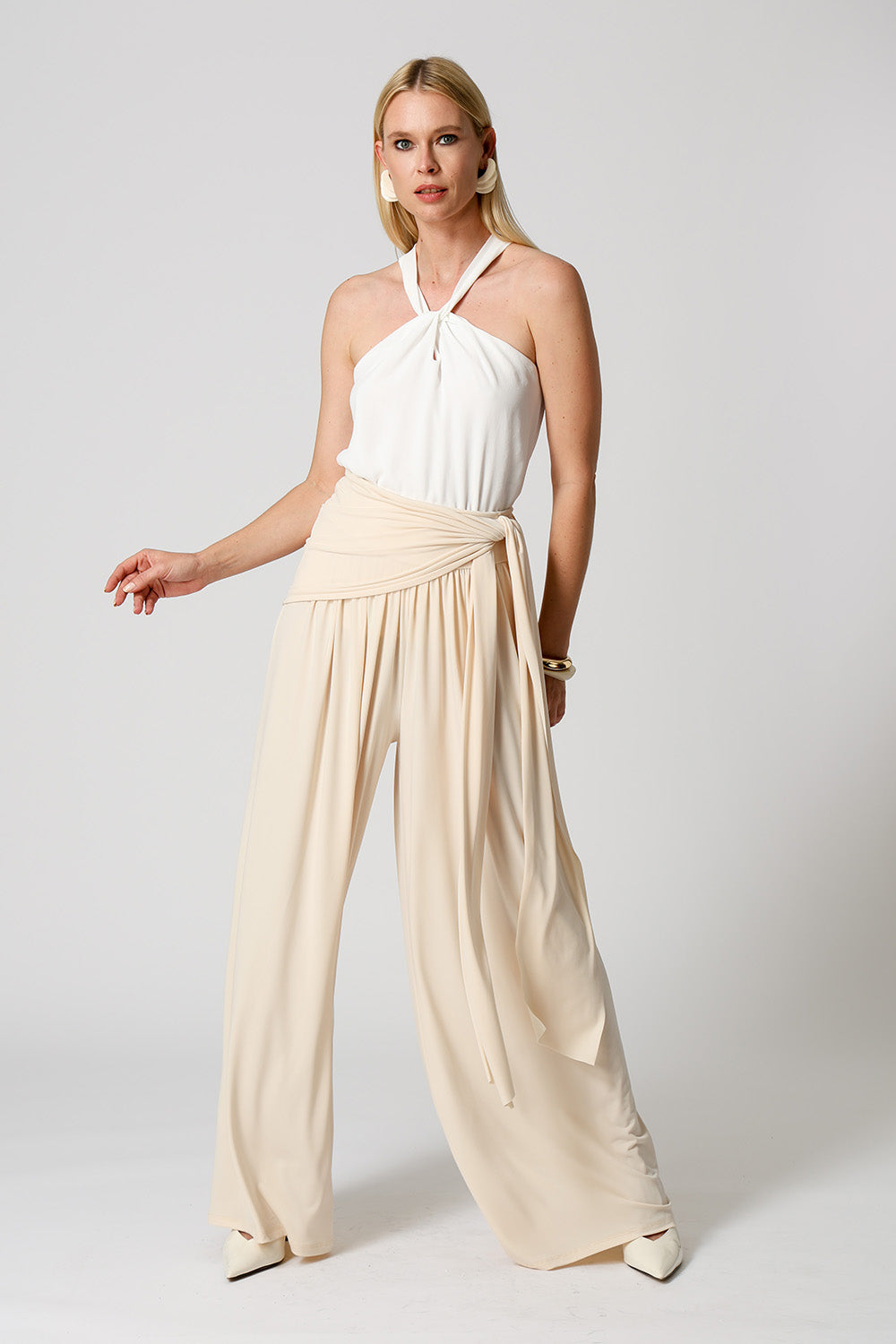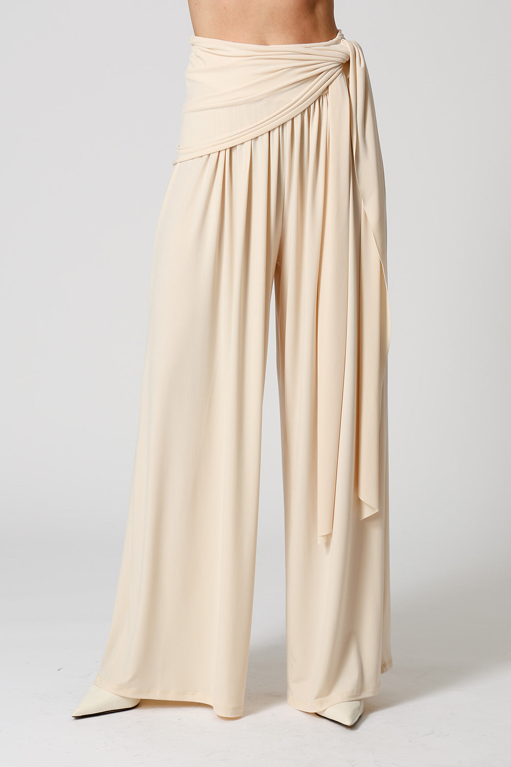Versátil e elegante, essa pantalona em malha ITY oferece caimento impecável e conforto absoluto. Possui pala com faixa de amarração que permite diferentes formas de uso e valoriza a silhueta. Ideal para compor looks casuais ou sofisticados com praticidade.