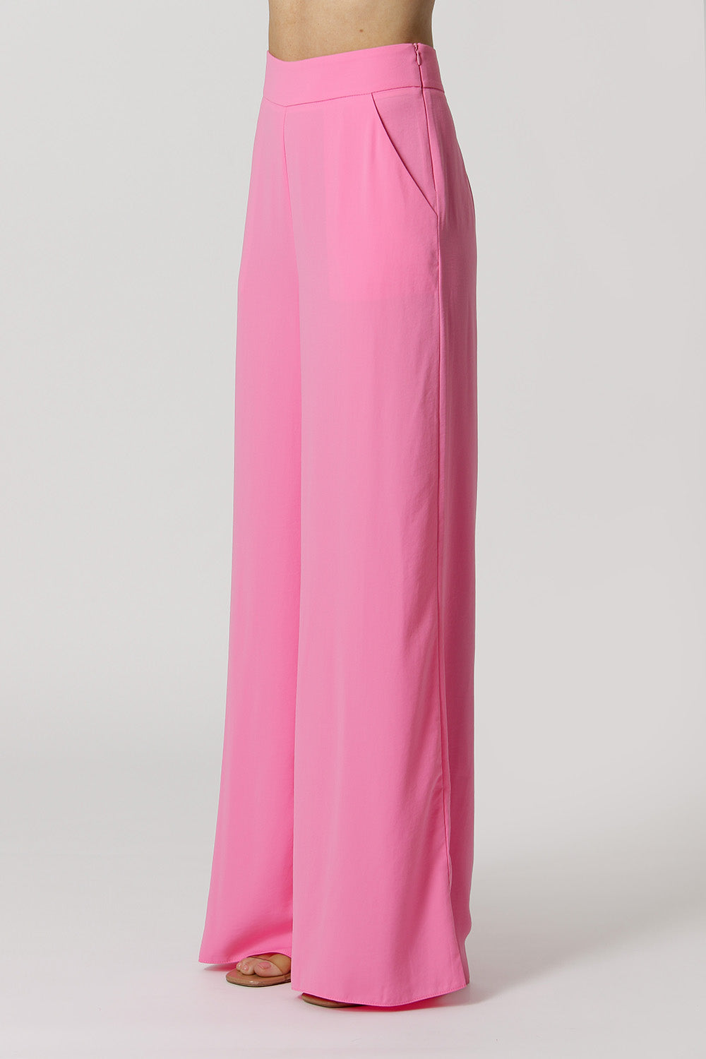 Pantalón palazzo confeccionado en tejido liso, con bolsillo francés, cremallera invisible en el lateral y pinzas en la espalda. Pieza casual que tiene ese estilo elegante que nos encanta.