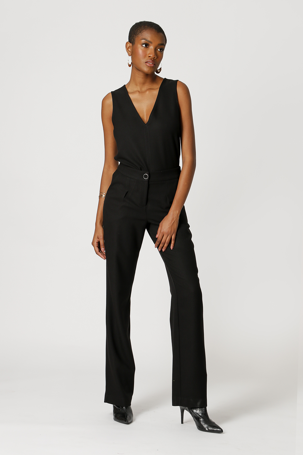 Pantalón palazzo con bolsillo y detalle de pinzas en la parte delantera. Una pieza realizada con una ligera caída y textura. Modelo elegante y cómodo para crear un ambiente de trabajo.
