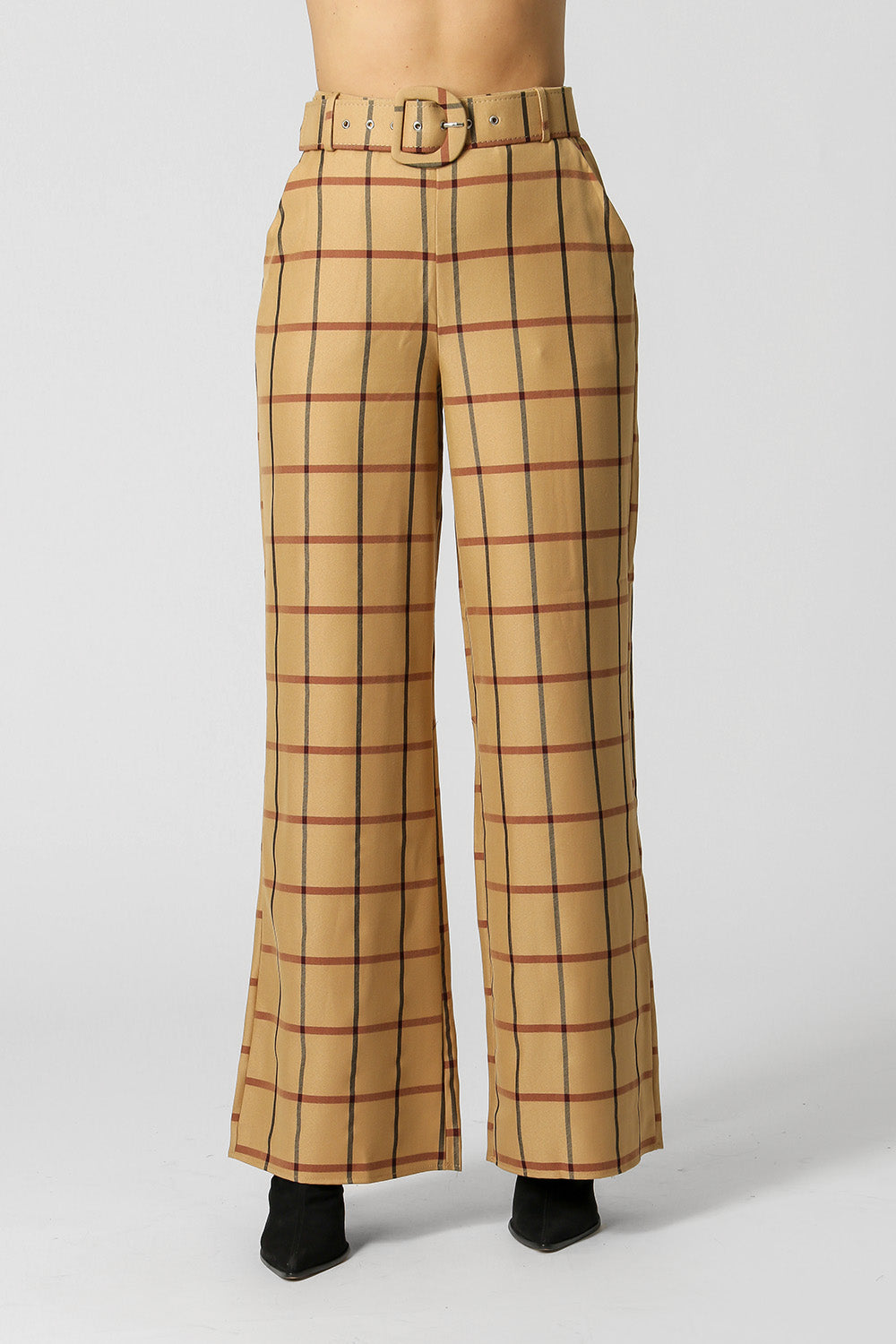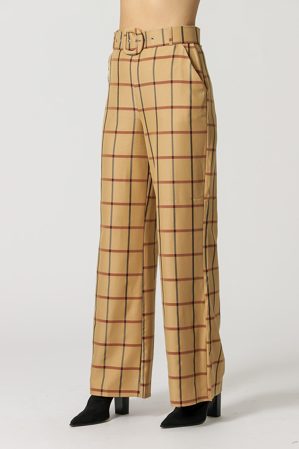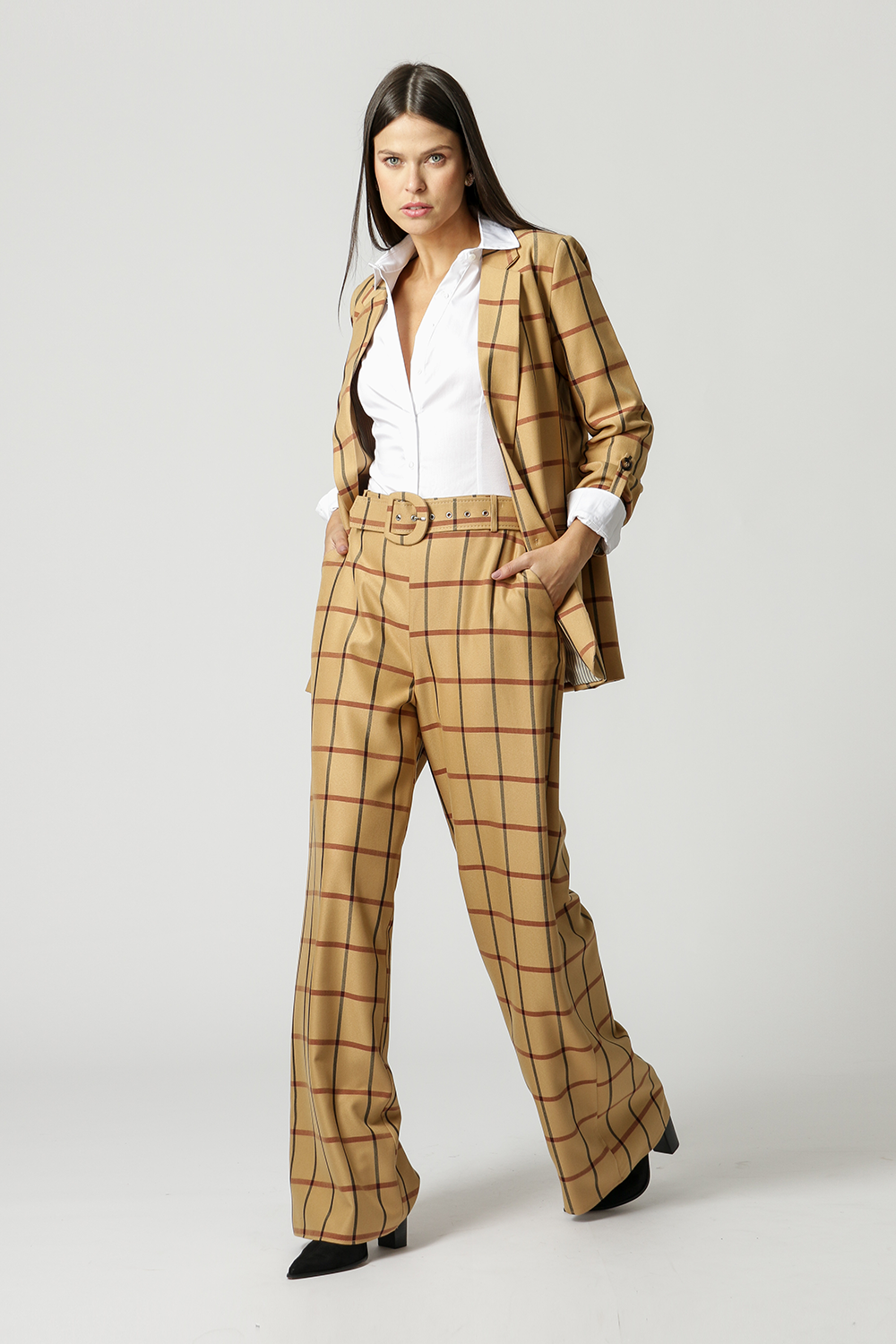 Pantalón palazzo confeccionado en sastrería de cuadros, con cinturón. ¡El clásico que debes tener!