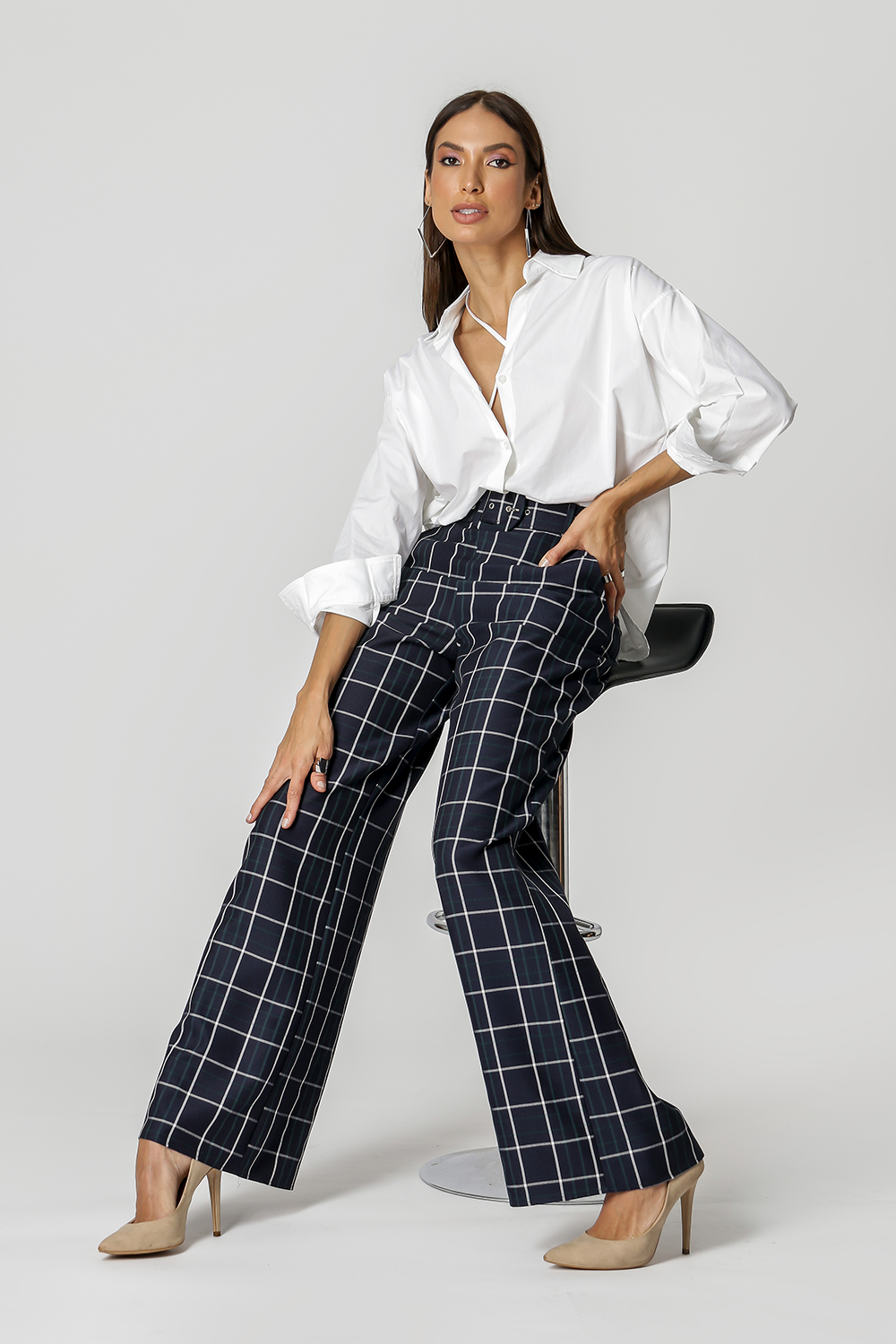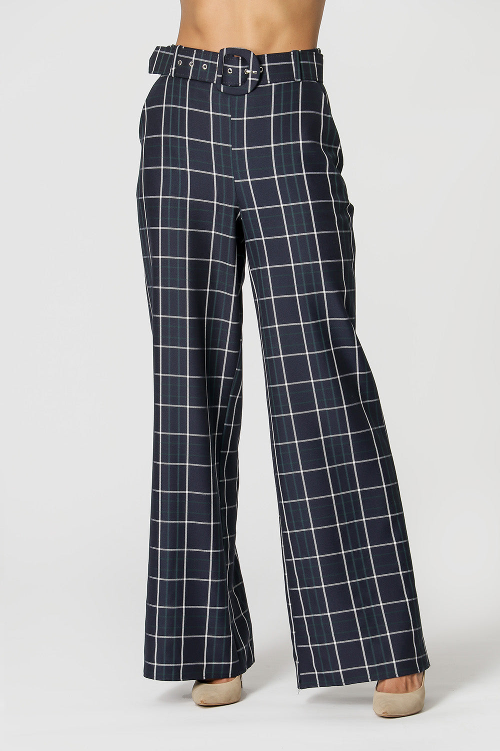 Pantalón palazzo confeccionado en sastrería de cuadros, con cinturón. ¡El clásico que debes tener!