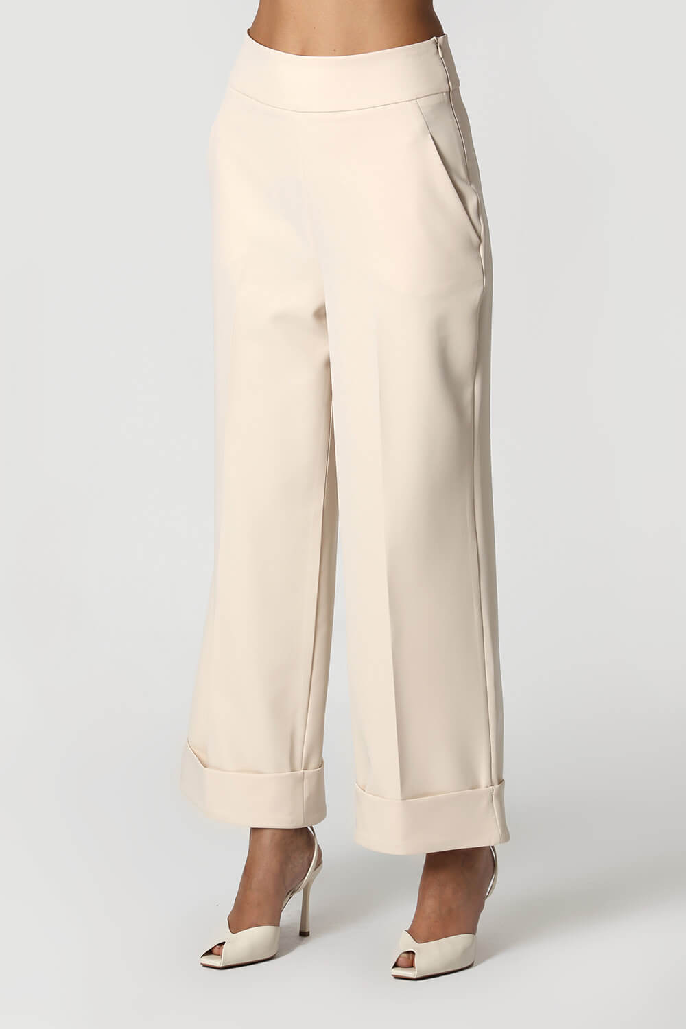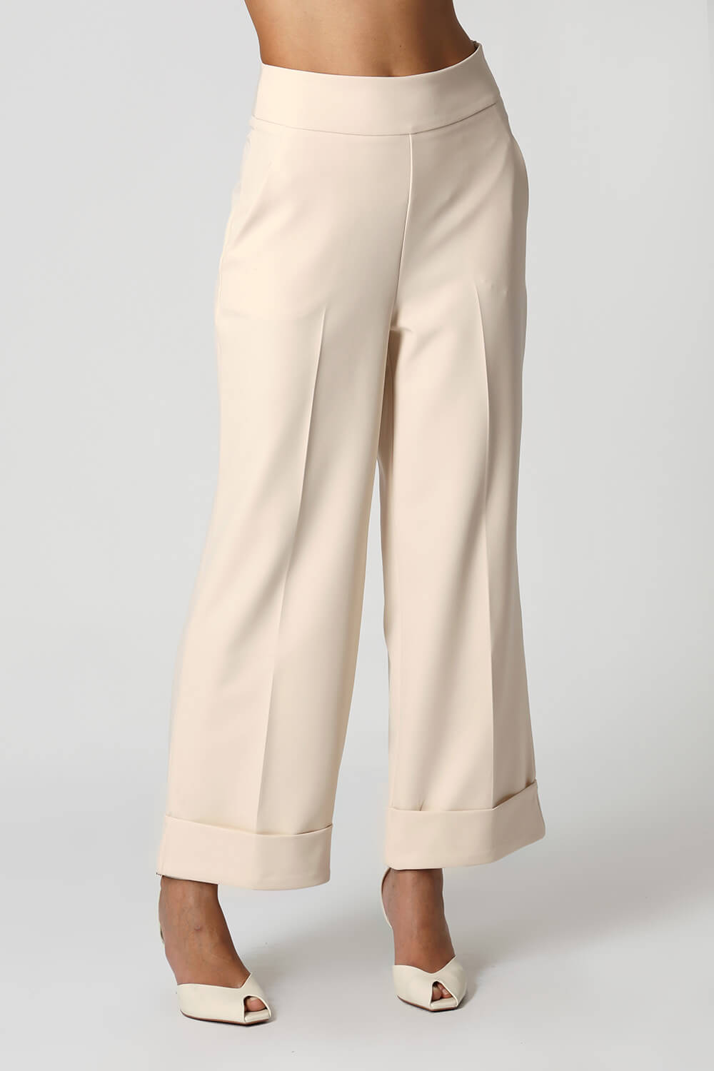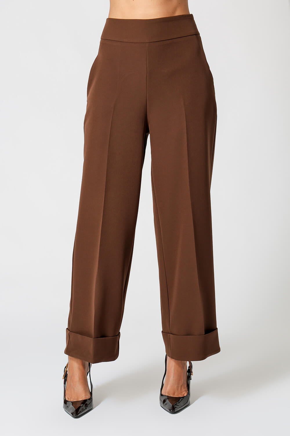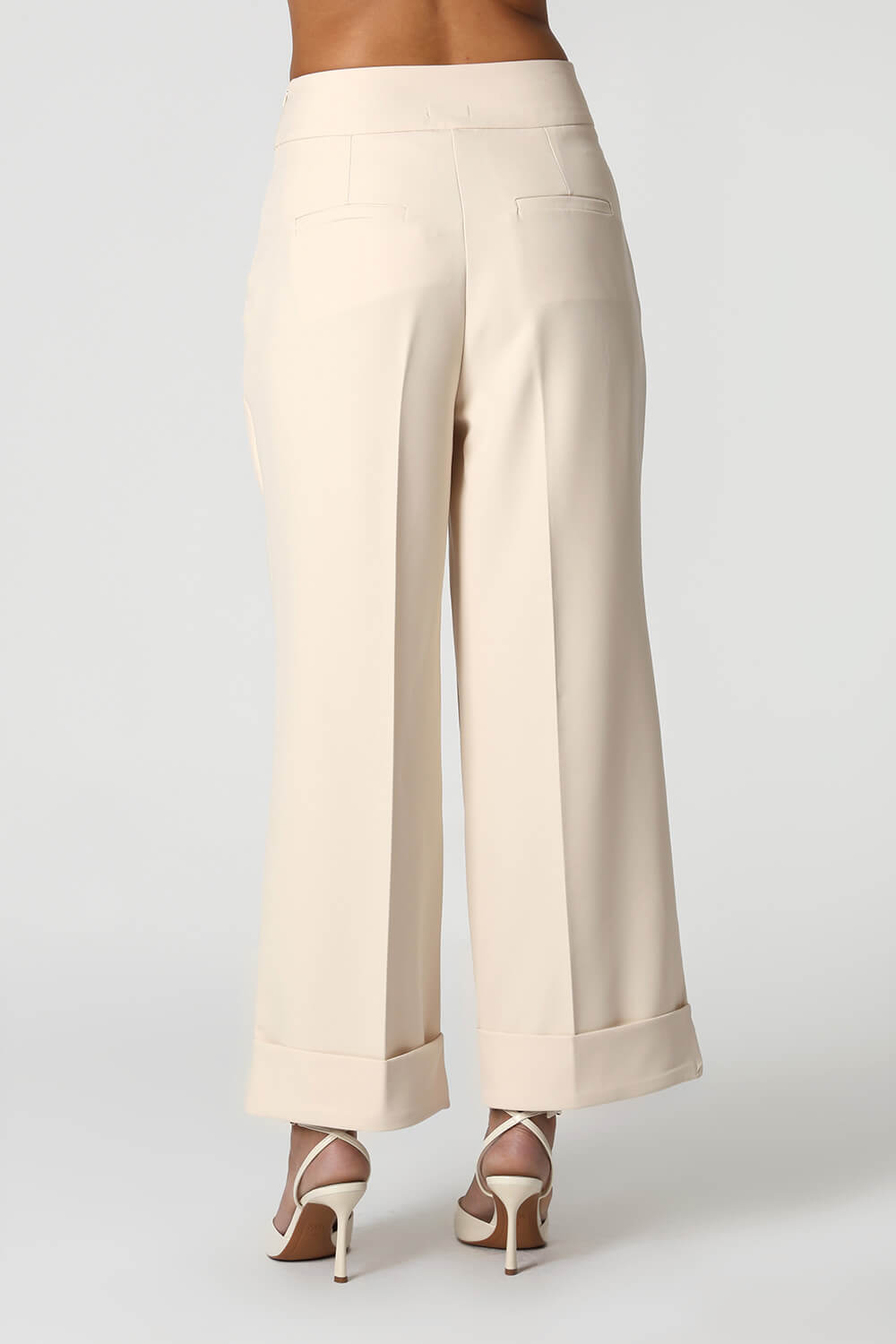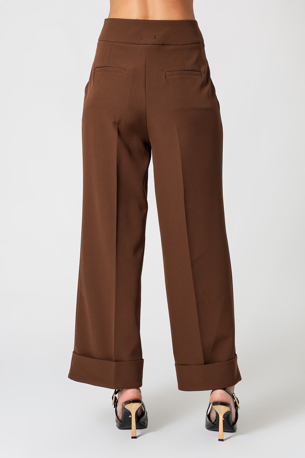 Calça reta em alfaiataria com cós limpo, barra larga e vinco frontal e traseiro. Elegante e versátil, ideal para looks sofisticados e atemporais.