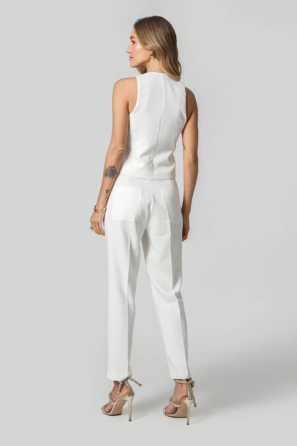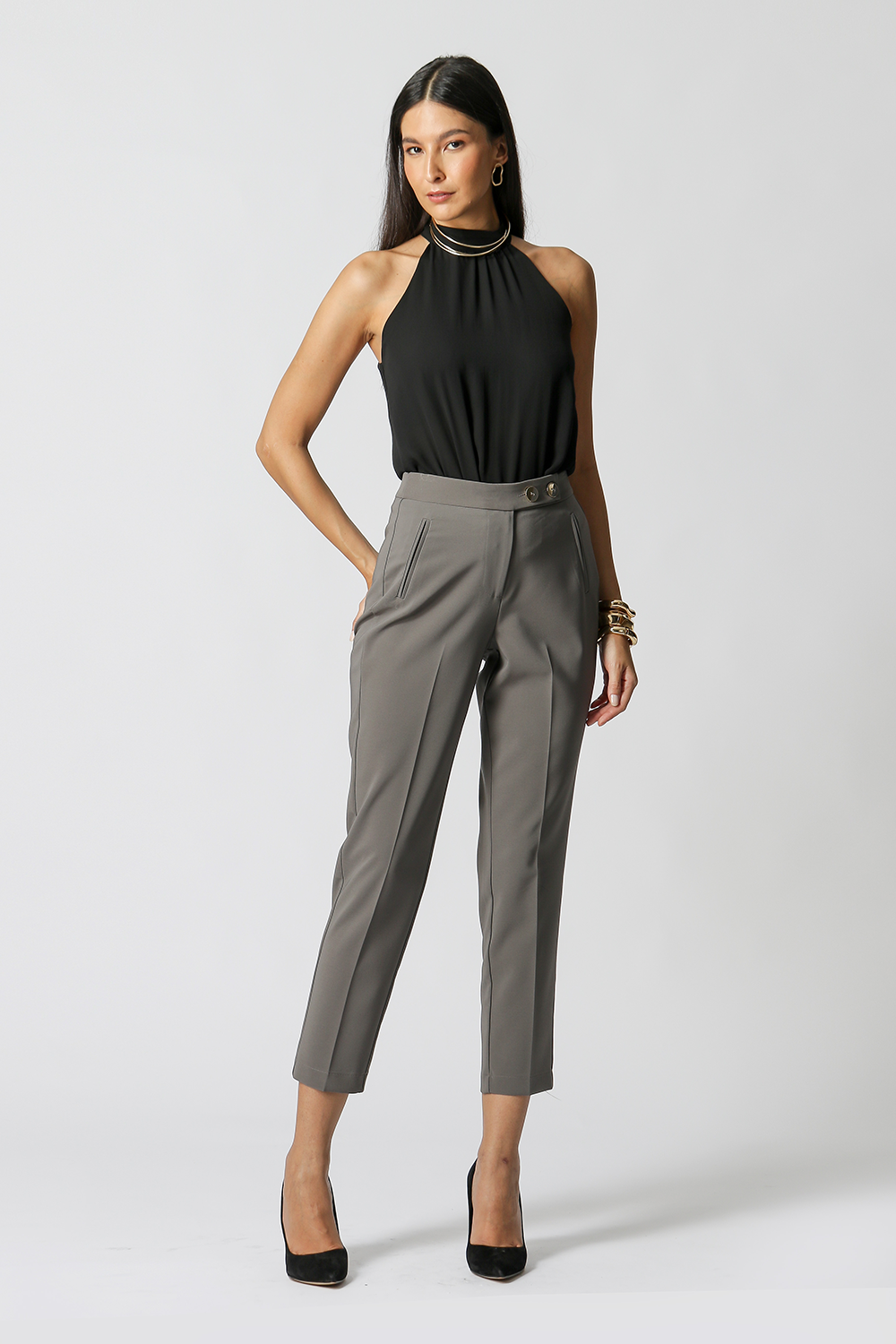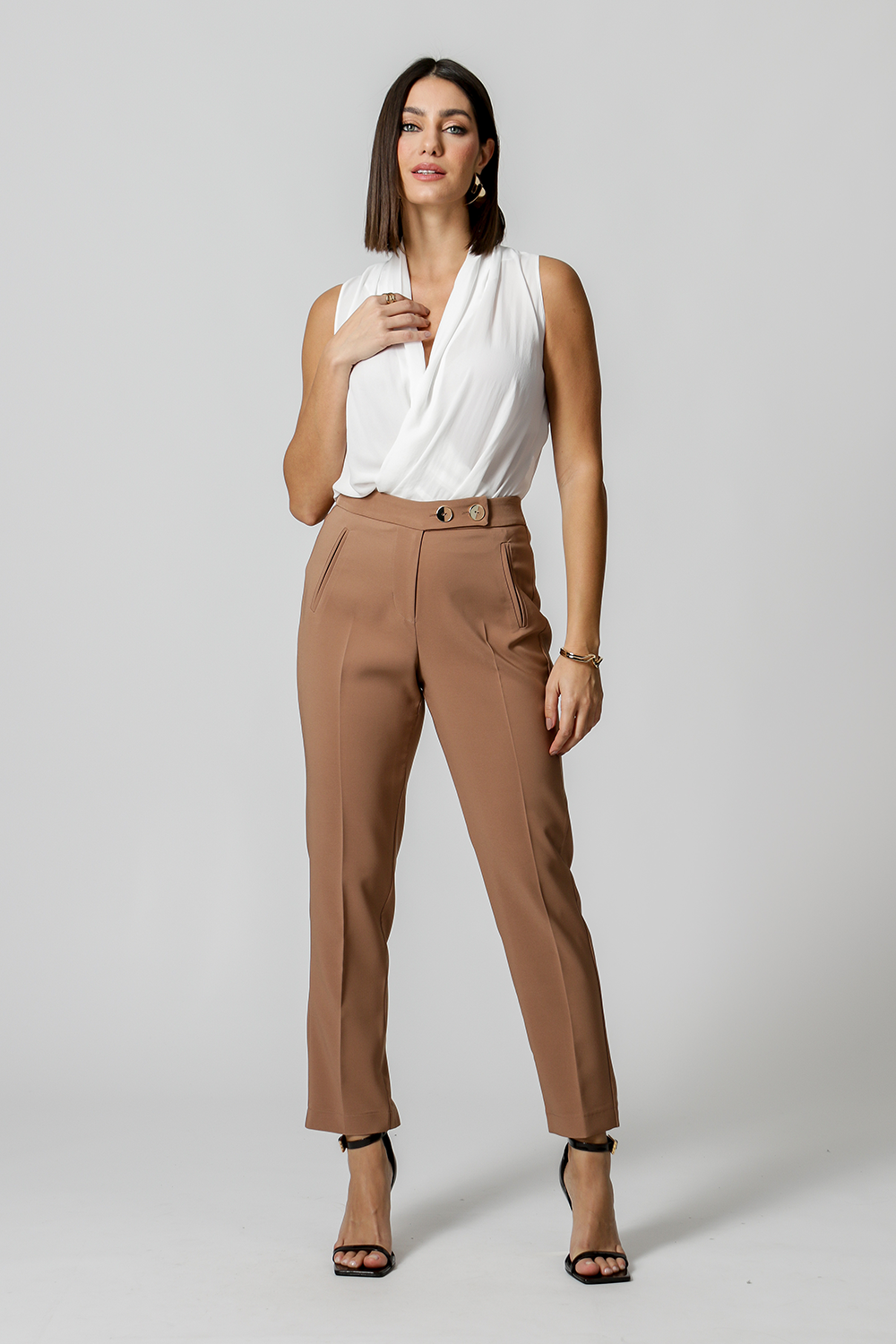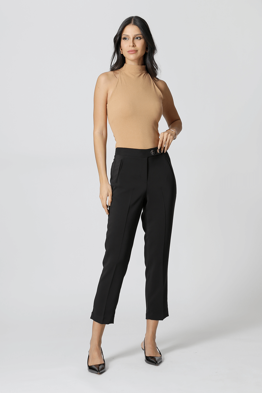 Calça reta com detalhe de bolso frontal. Confeccionada em tecido alfaiataria uma peça perfeita para compor looks work com elegância no seu dia-a-dia.