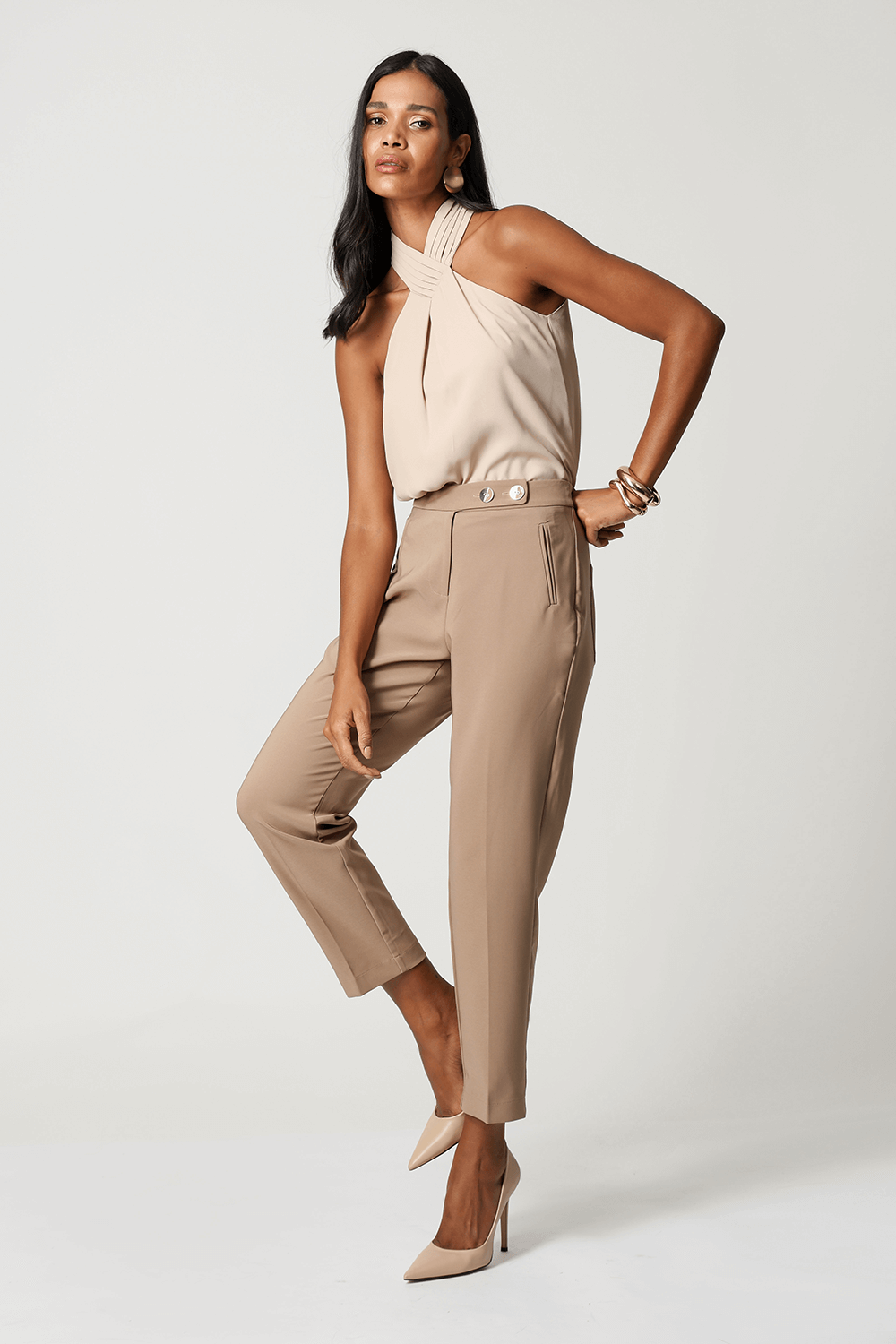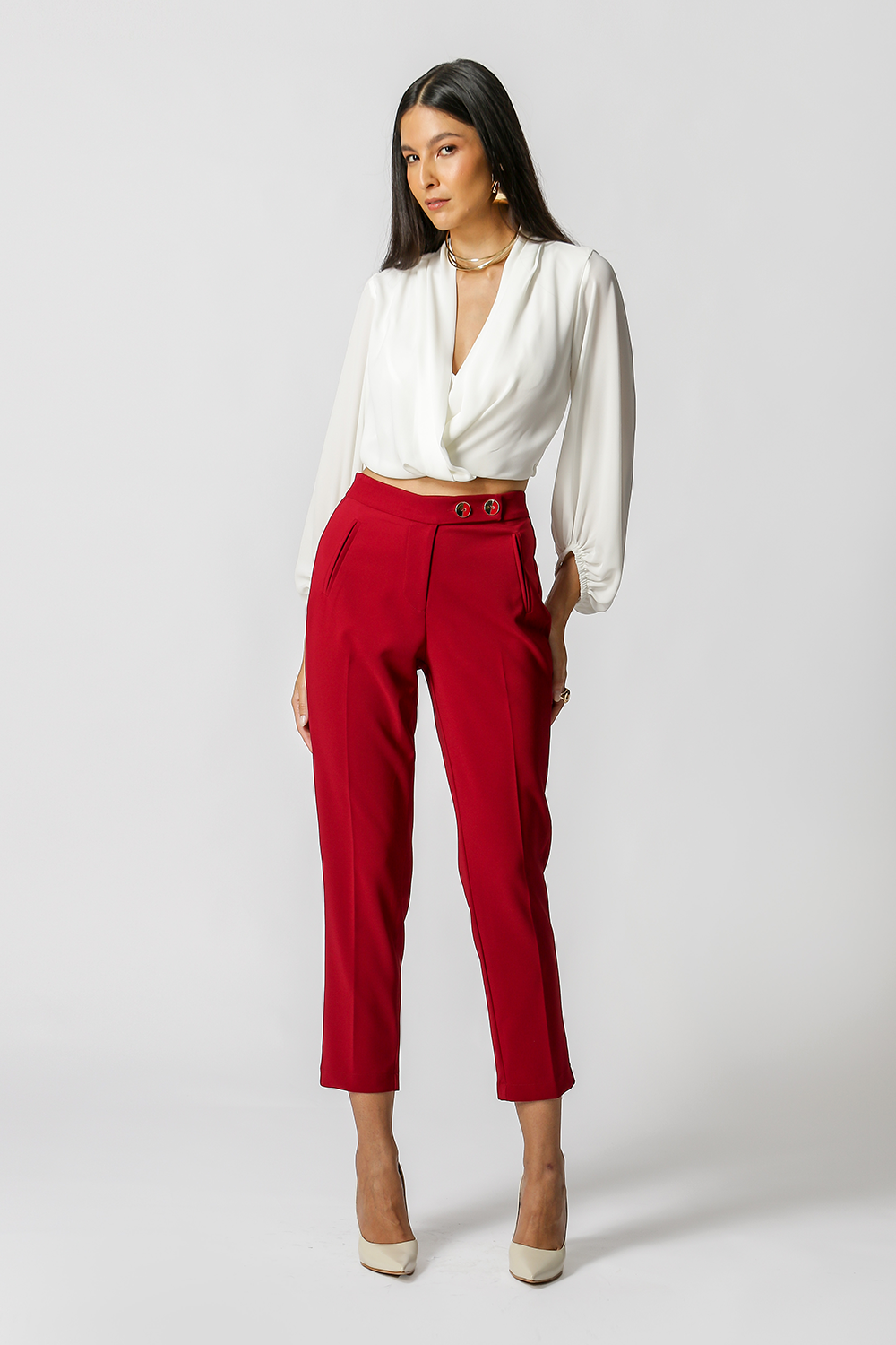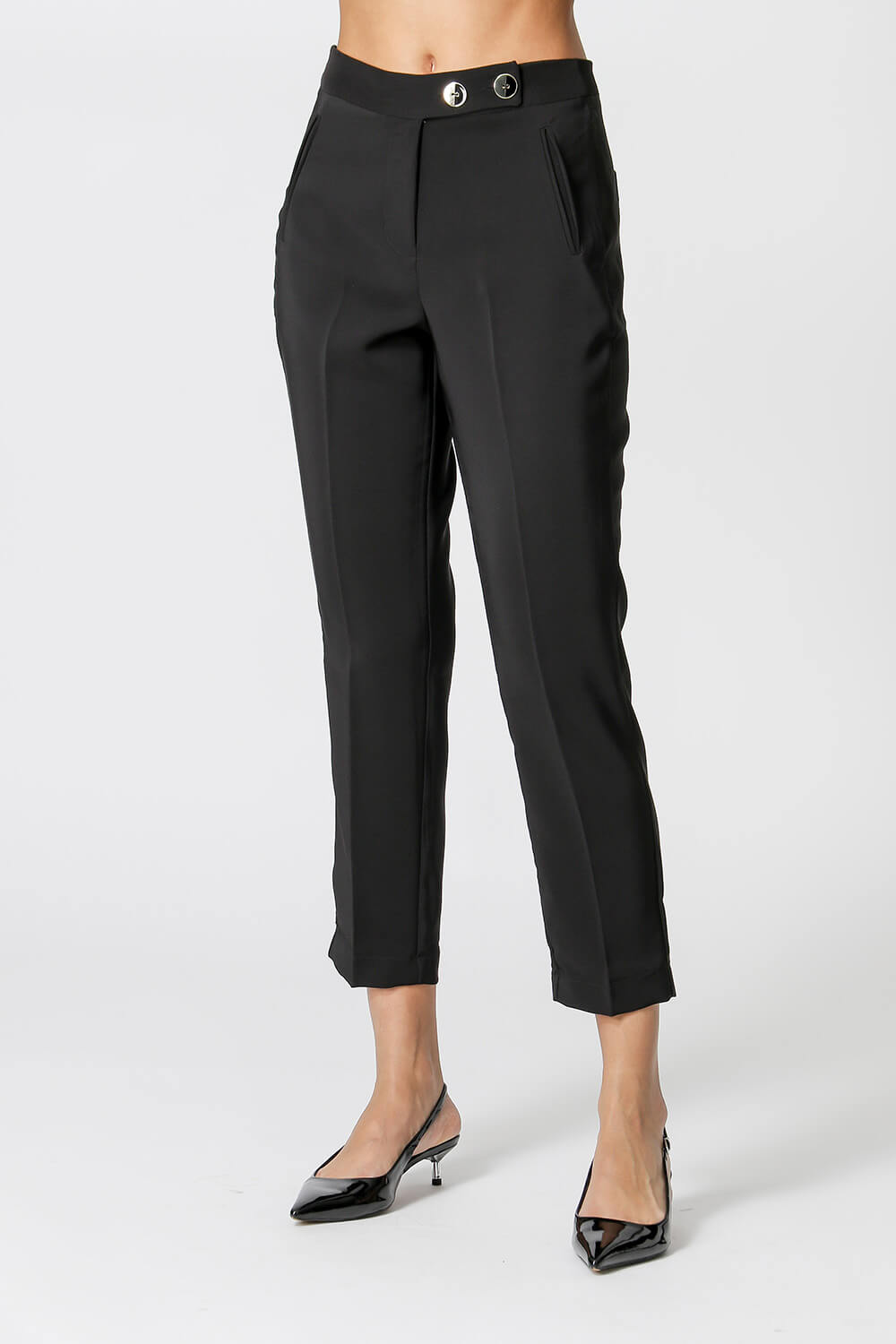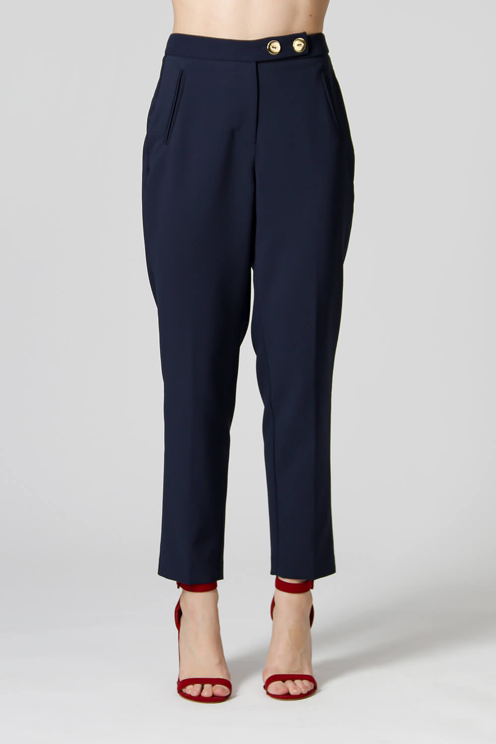 Calça reta com detalhe de bolso frontal. Confeccionada em tecido alfaiataria uma peça perfeita para compor looks work com elegância no seu dia-a-dia.