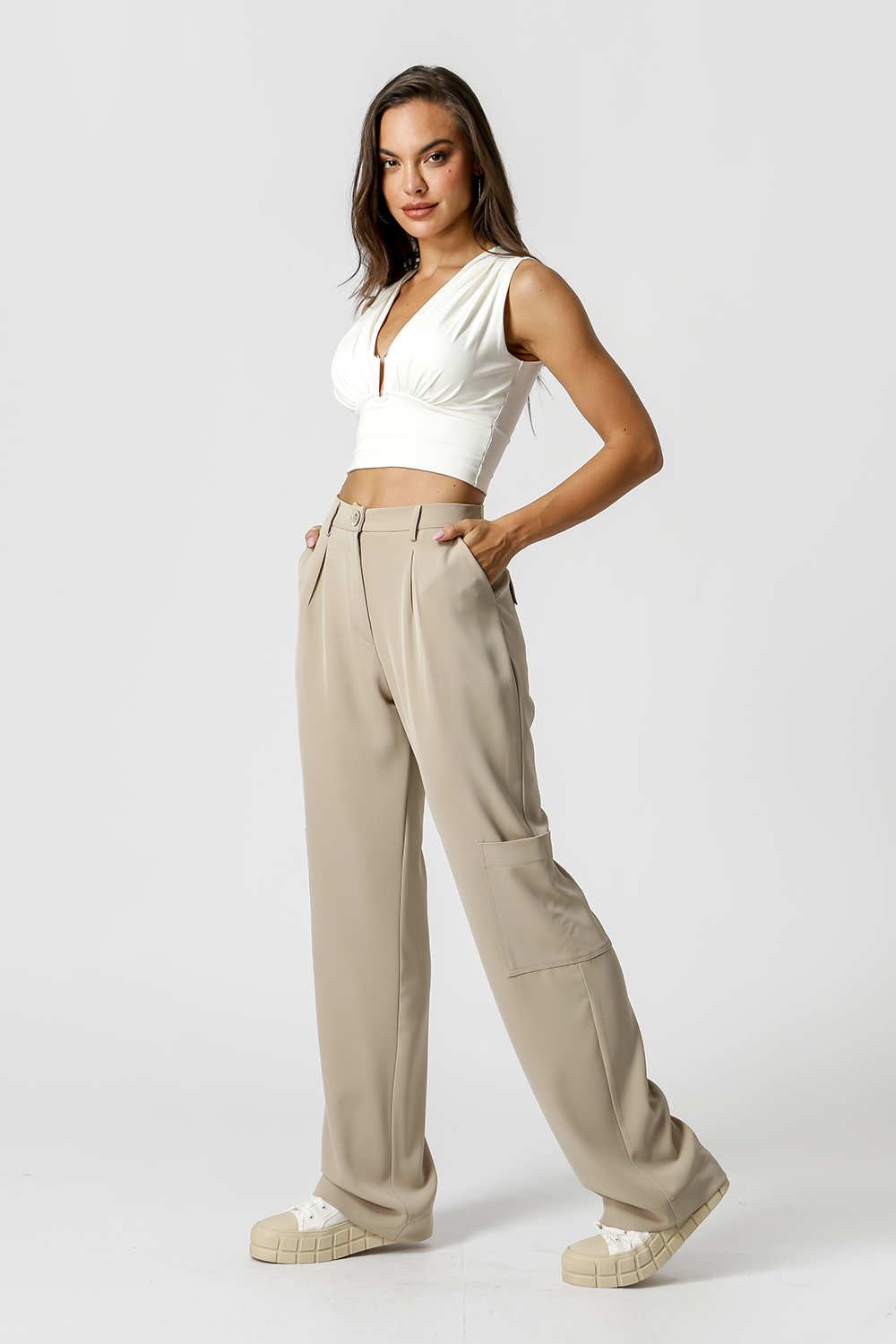 Calça de modelagem reta com bolsos faca e laterais. Peça com design atemporal, a queridinha que não pode faltar no look do trabalho.