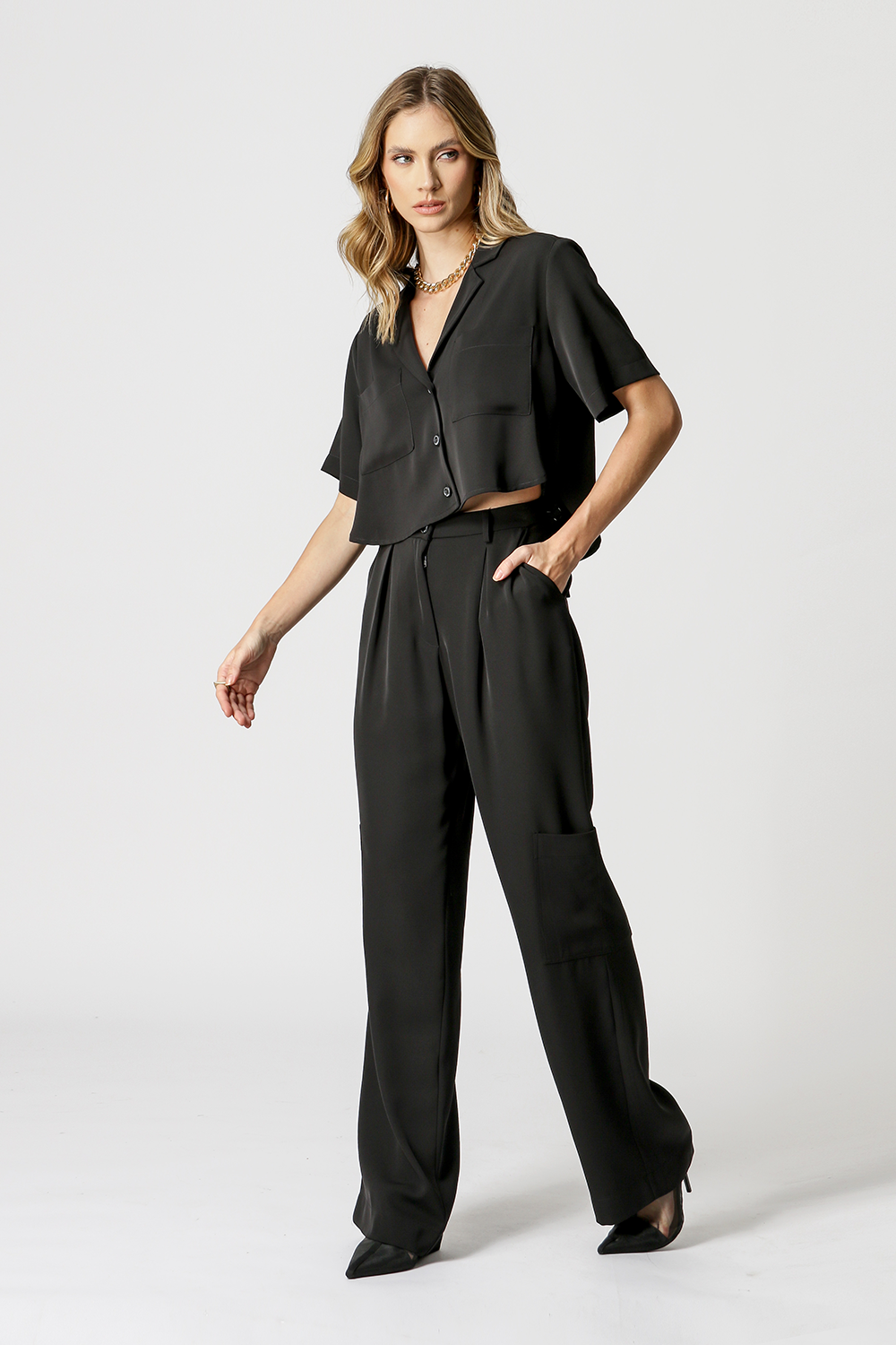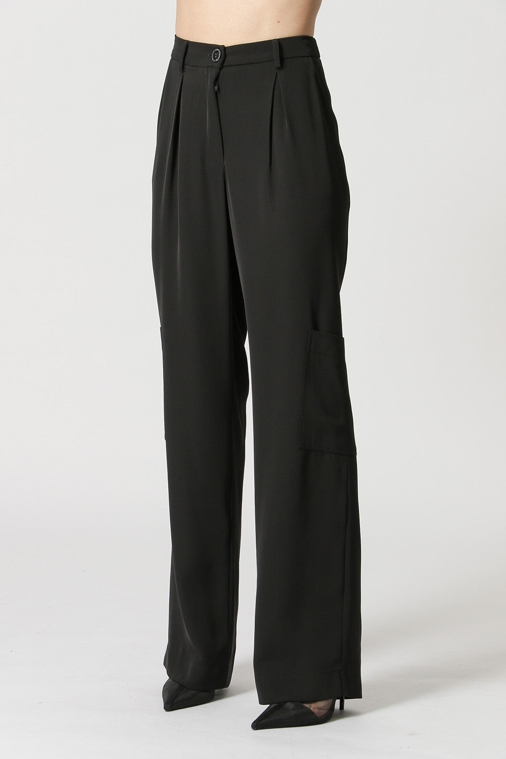 Pantalón de corte recto con bolsillos abiertos y laterales. Una pieza de diseño atemporal, imprescindible para tu look de trabajo.