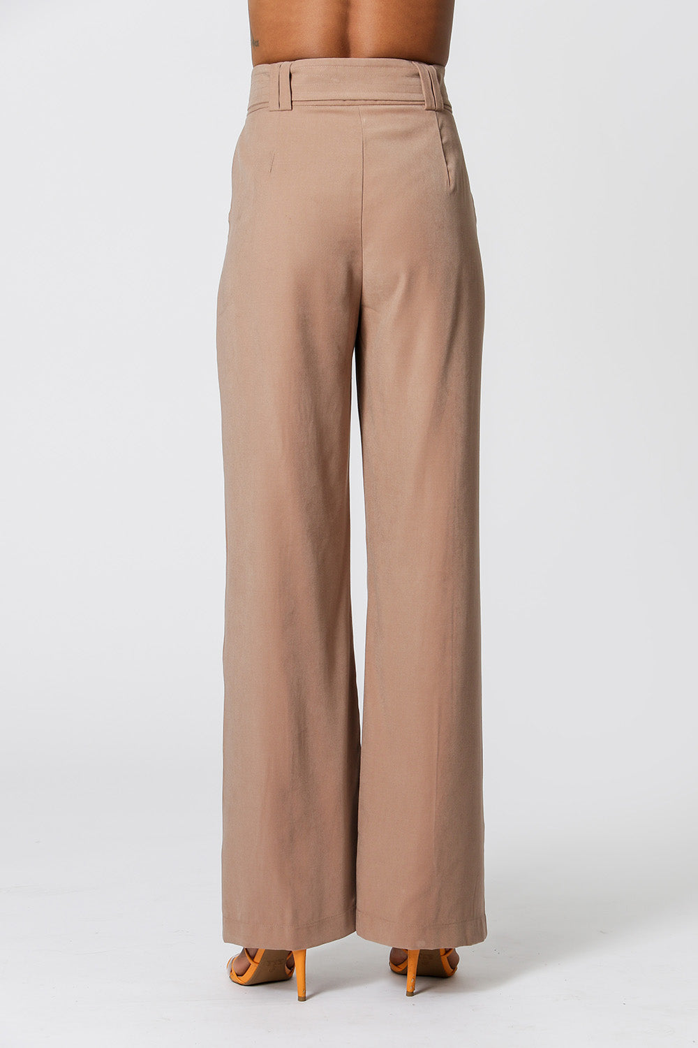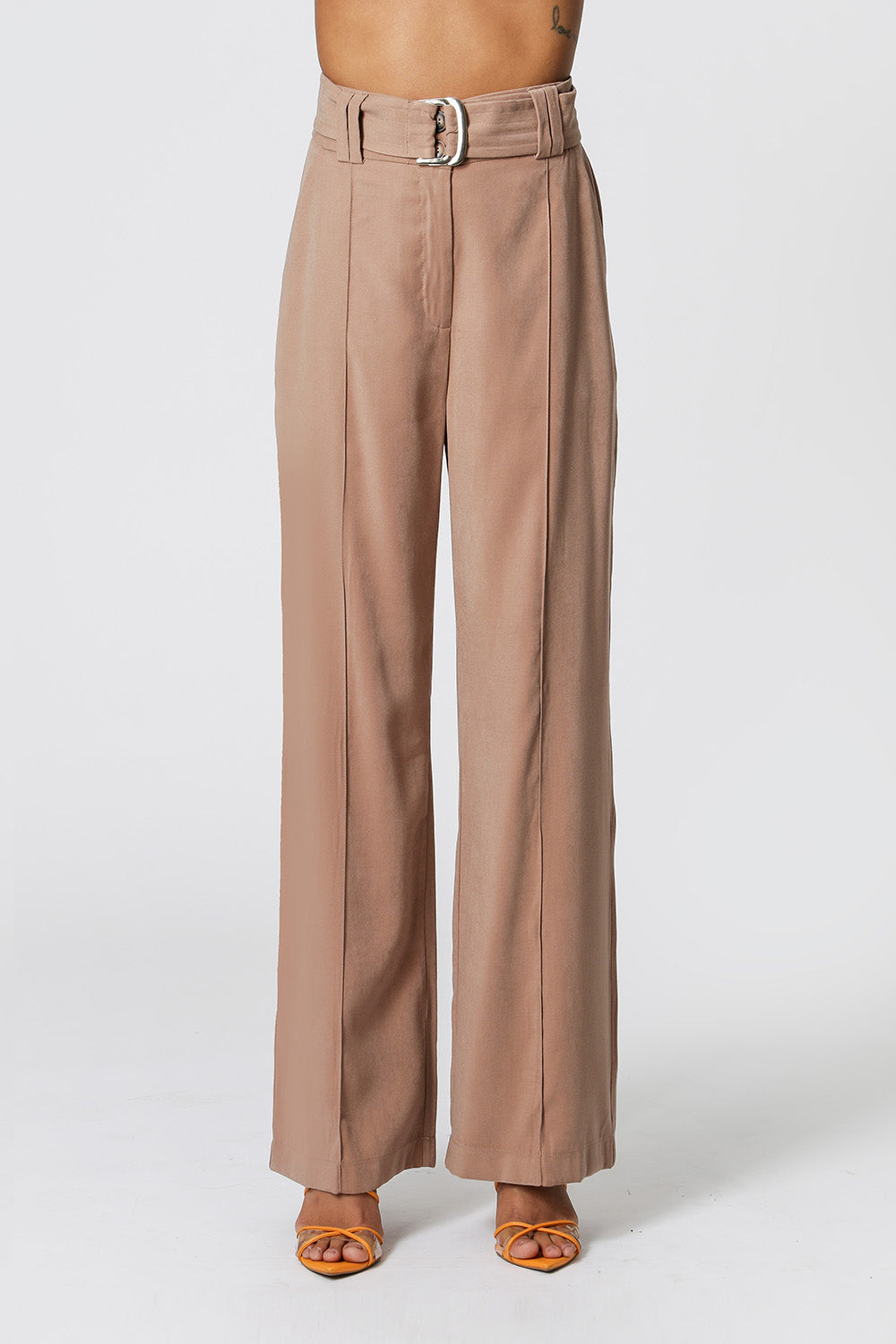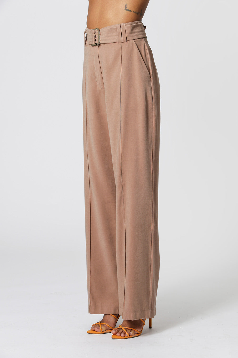 Pantalón recto confeccionado en viscosa, con detalle de canalé. Tiene una banda con hebilla de metal. Una pieza que le dará un aire casual chic a tu look.